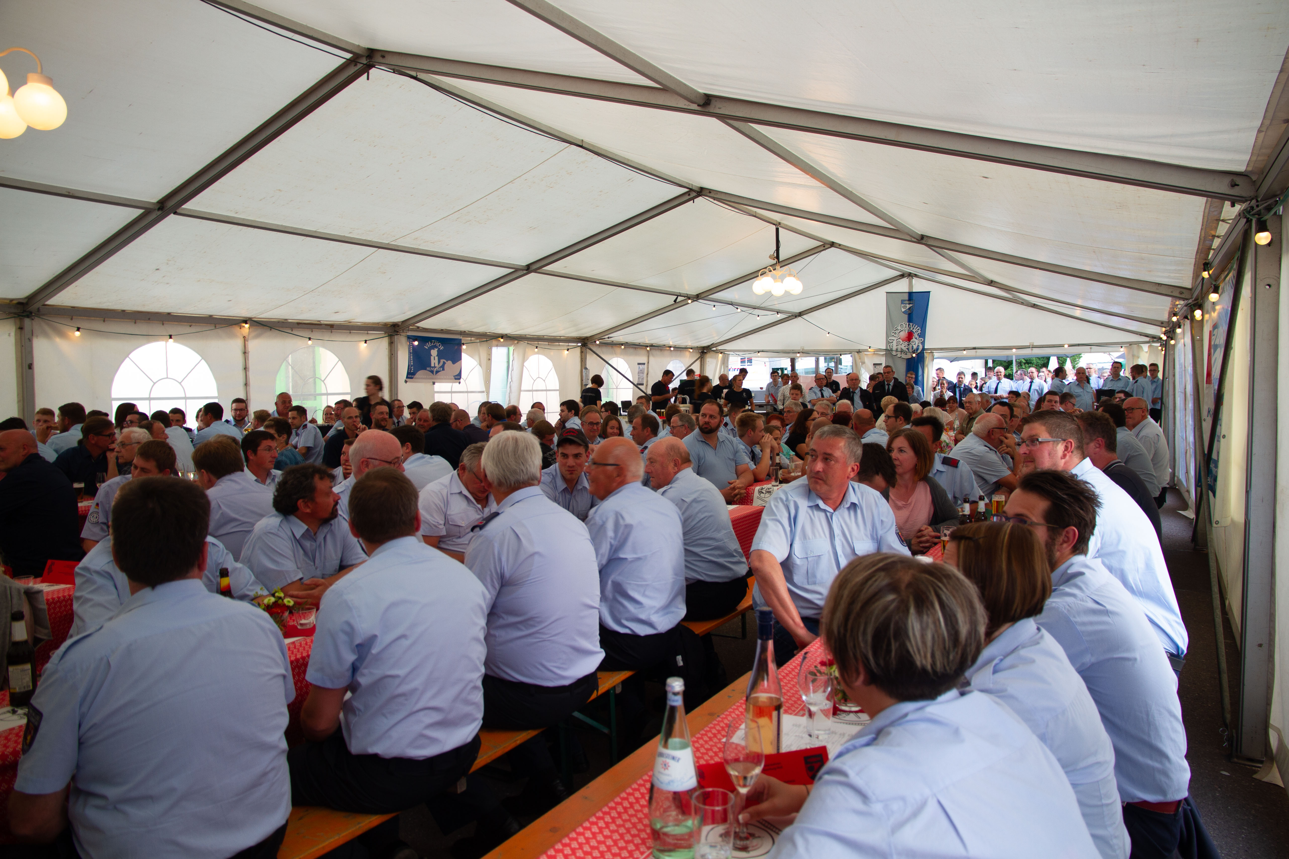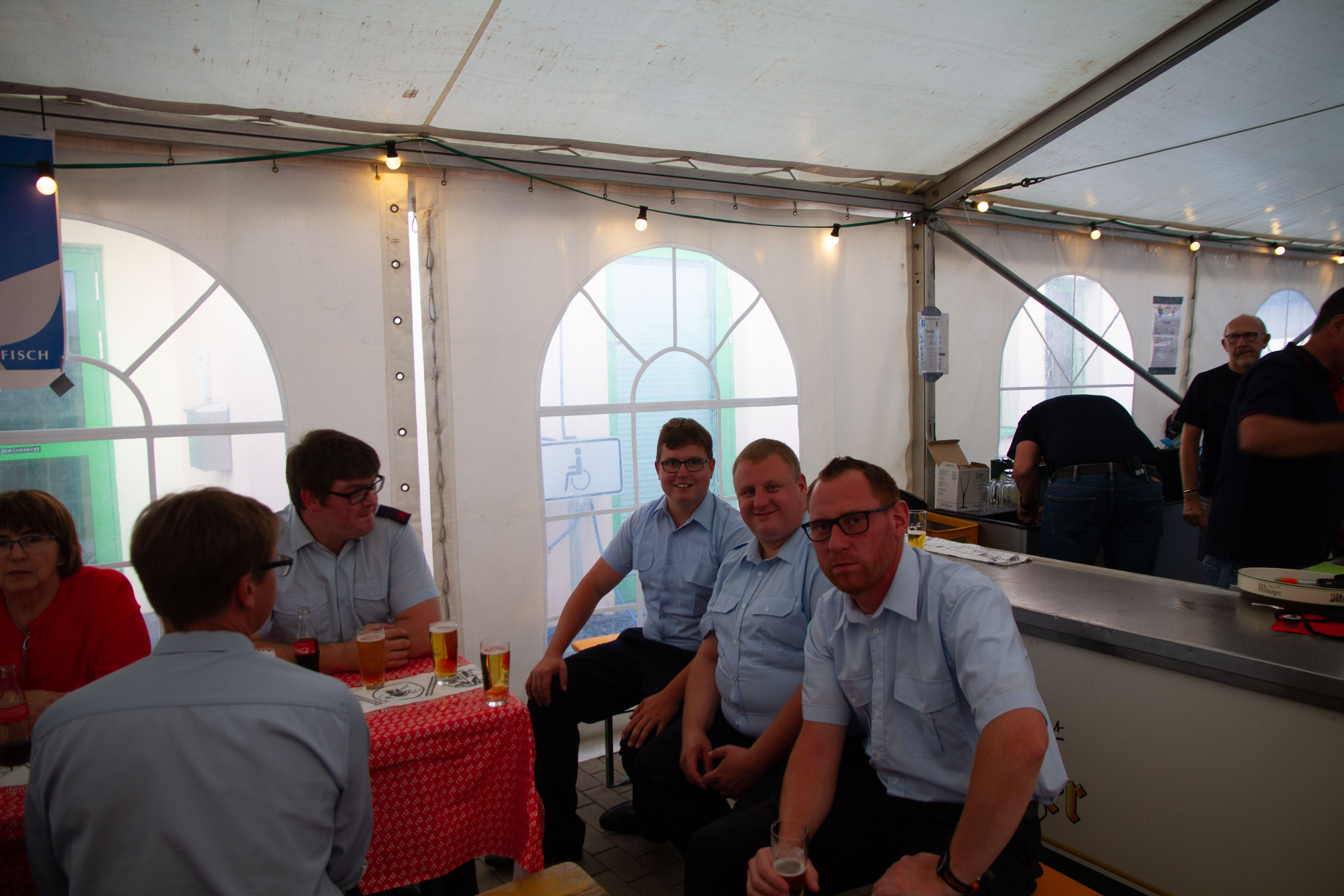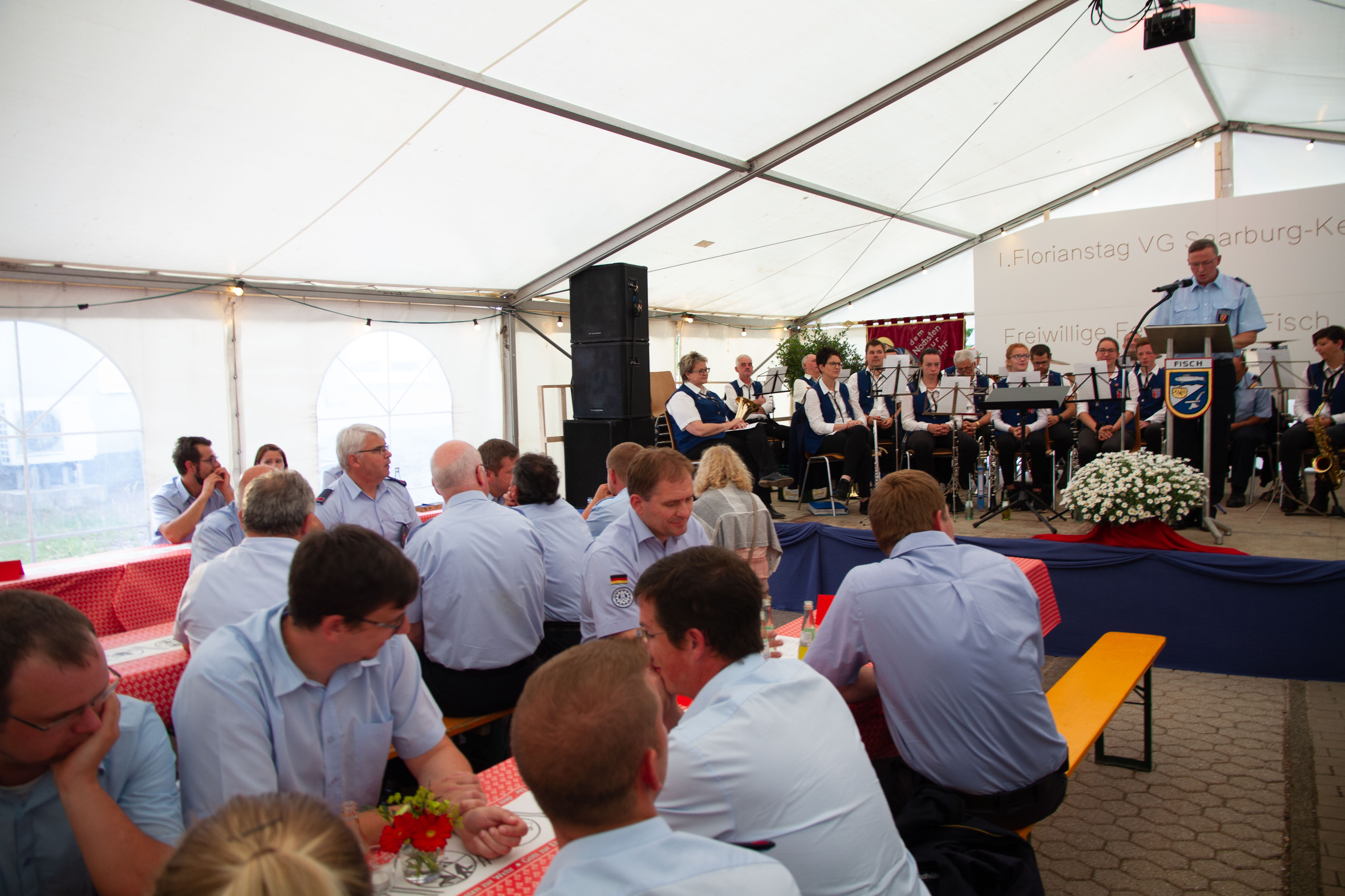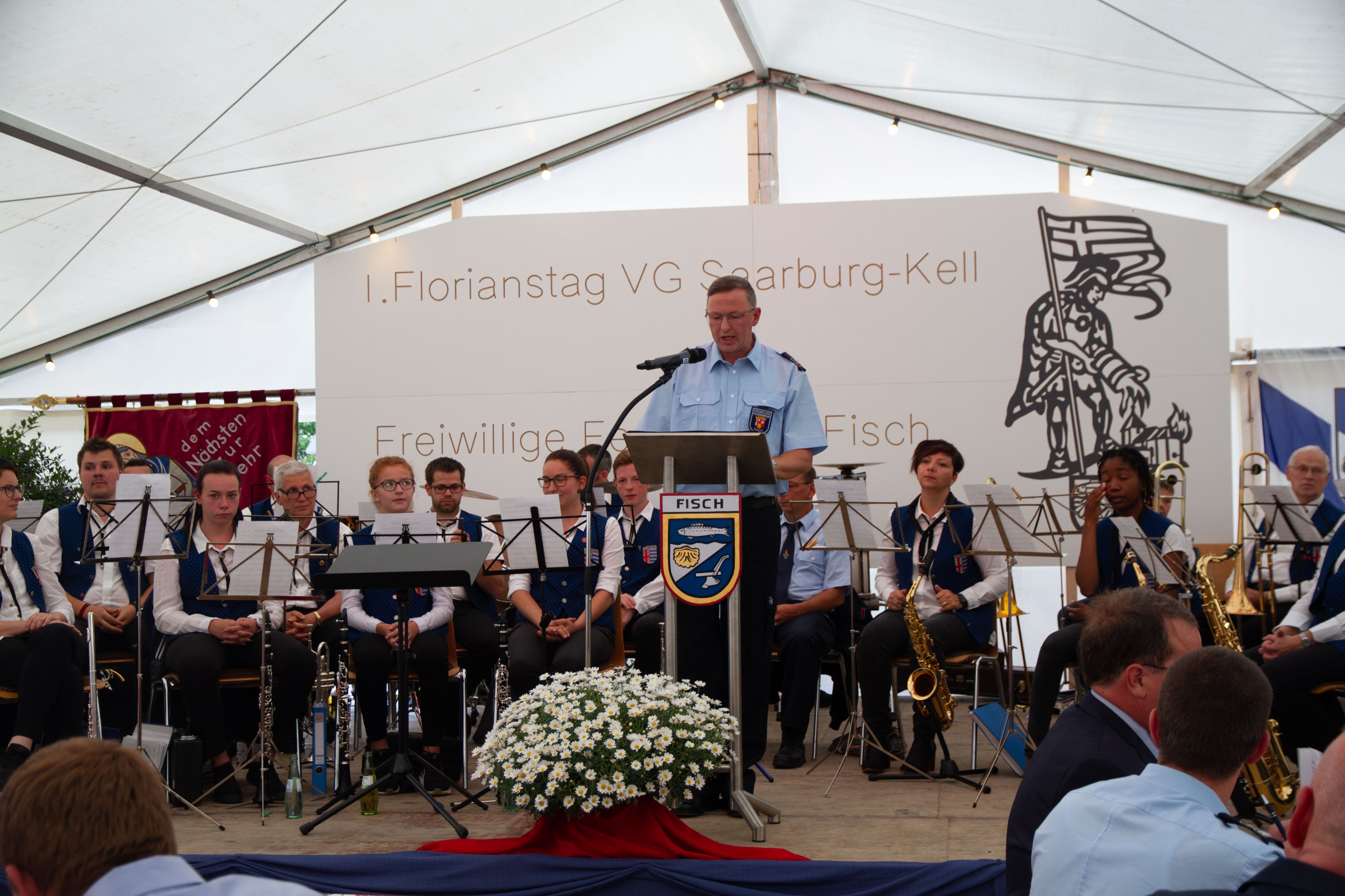 Herr Alten dankte allen Wehrangehörigen, Führungskräften, Jugend und Bambinileiter für ihrArrangement sich ehrenamtlich in den Feuerwehren zu arrangieren.Ortsbürgermeister Wacht erläuterte in seiner Ansprache was die Feuerwehr Fisch und die Dorfgemeinschaft bisher geleistet hat. So wurde nicht nur das Feuerwehrgerätehaus erweitern und saniert, auch am Kindergarten und am Bürgerhaus wurde fleißig gearbeitet. Auf eine solche Dorfgemeinschaft kann man stolz sein und dankt allen Helfern für Ihre Unterstützung.Von der Wehrleitung sprach Bernhard Hein der Feuerwehr Fisch und allen Helfern seinen Dank aus für die Ausrichtung dieser Festveranstaltung. Weiterhin betonte er, wie wichtig es ist die Feuerwehren mit den erforderlichen Fahrzeugen und Gerätschaften auszustatten und Feuerwehrgerätehäuser vorzuhalten. Dass die Einsatzzahlen jährlich steigen zeigen die Statistiken. Besonders in 2018 wurden die Feuerwehren stark gefordert bei Gebäudebränden und Starkregenereignisse. Die Feuerwehren der Verbandsgemeinde sind gut ausgestattet und haben einen hohen Ausbildungsstand, dass gewährt den Bürgern in derVG eine große Sicherheit, verbunden mit einem herzlichen Dank der Bereitschaft. Nach der Ansprache von Wehrleiter Bernhard Hein erfolgten zahlreiche Ehrungen, Beförderungen und Bestellungen der Jugendwarte und Verabschiedungen im Beisein des 1. hauptamtlichen Beigeordneten Martin Alten in Vertretung für Verbandsbürgermeister Jürgen Dixius. Bei sommerlichen Temperaturen traf man sich zum Kennenlernen und guter Gespräche auf dem Festplatz