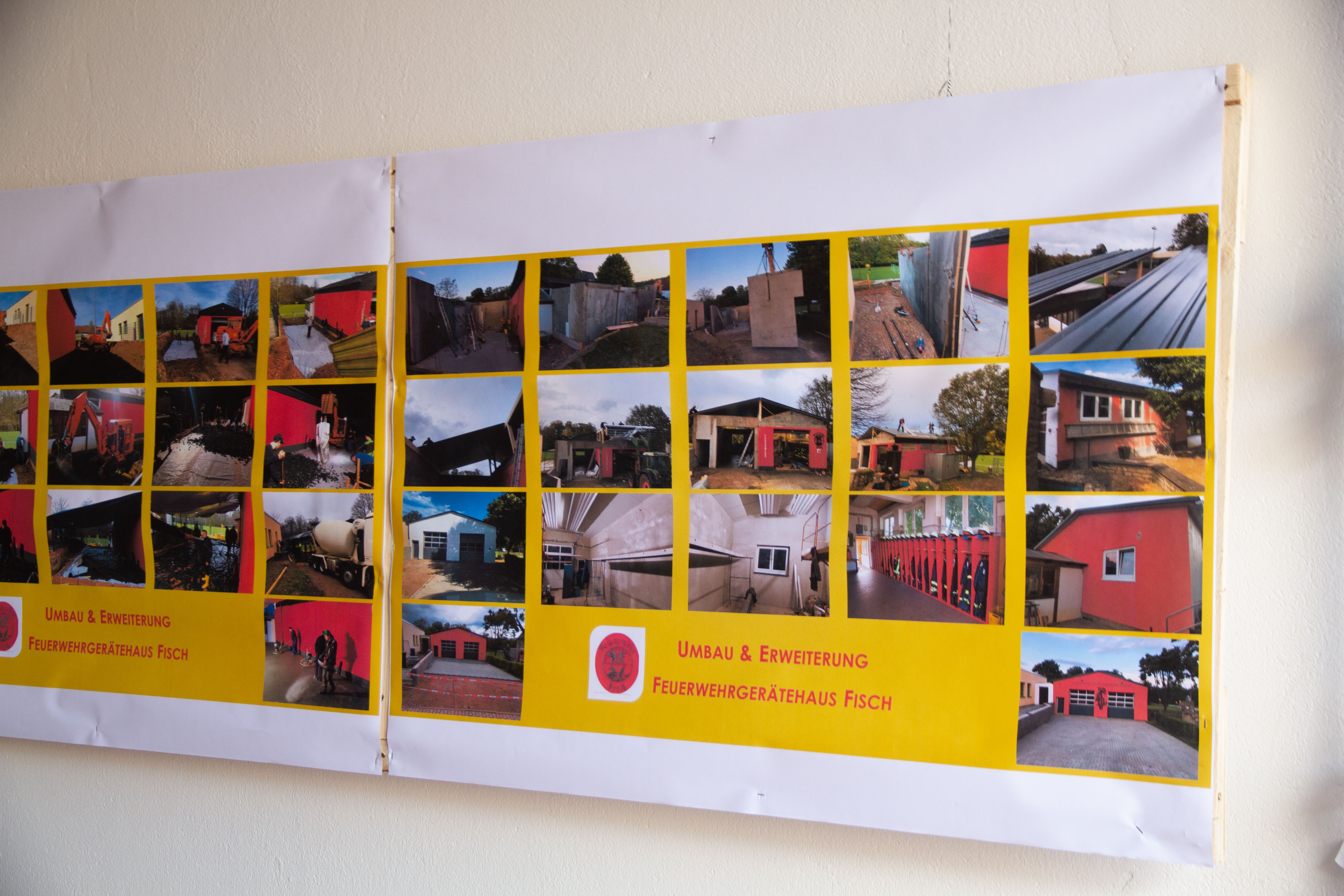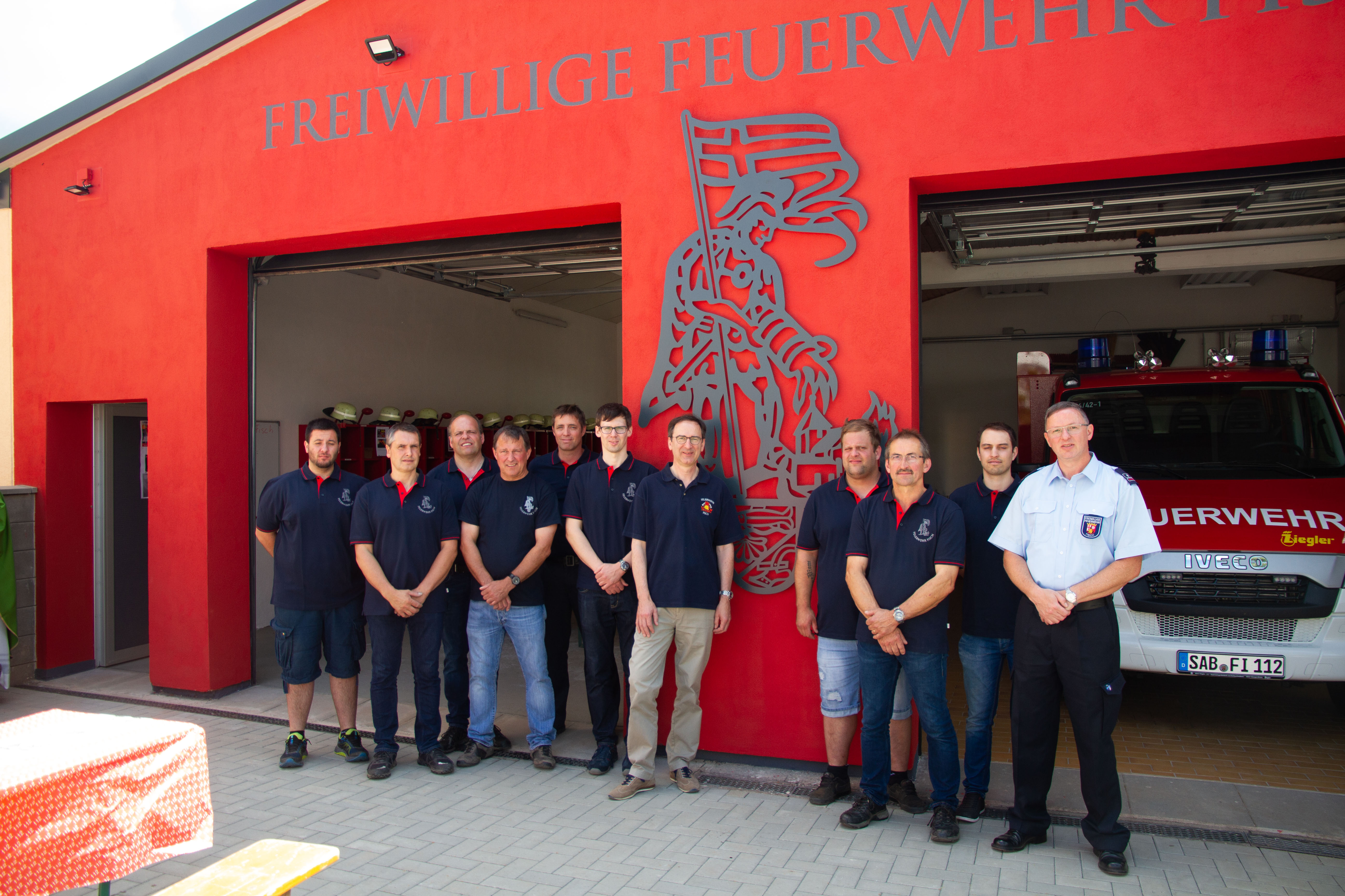 In den Ansprachen von Herrn Siegfried Büdinger, Landrat Schartz, Ortsbürgermeister Wacht und Wehrleiter Hein dankten sie der  Feuerwehr Fisch und allen Helfern für die besondere Leistung. Sie hätten ihr Feuerwehrgerätehaus mit eigenen Händen gebaut, und können stolz auf ihre Leistung sein. Hier in Fisch spürte man wie die Dorfgemeinschaften den Zusammenhalt der Bürger mit den Vereinen und der Feuerwehr gelebt und erlebt werden.Die Kameraden der Feuerwehr Fisch mit den Ehrengästen bei der Einweihung des Feuerwehrgerätehauses.