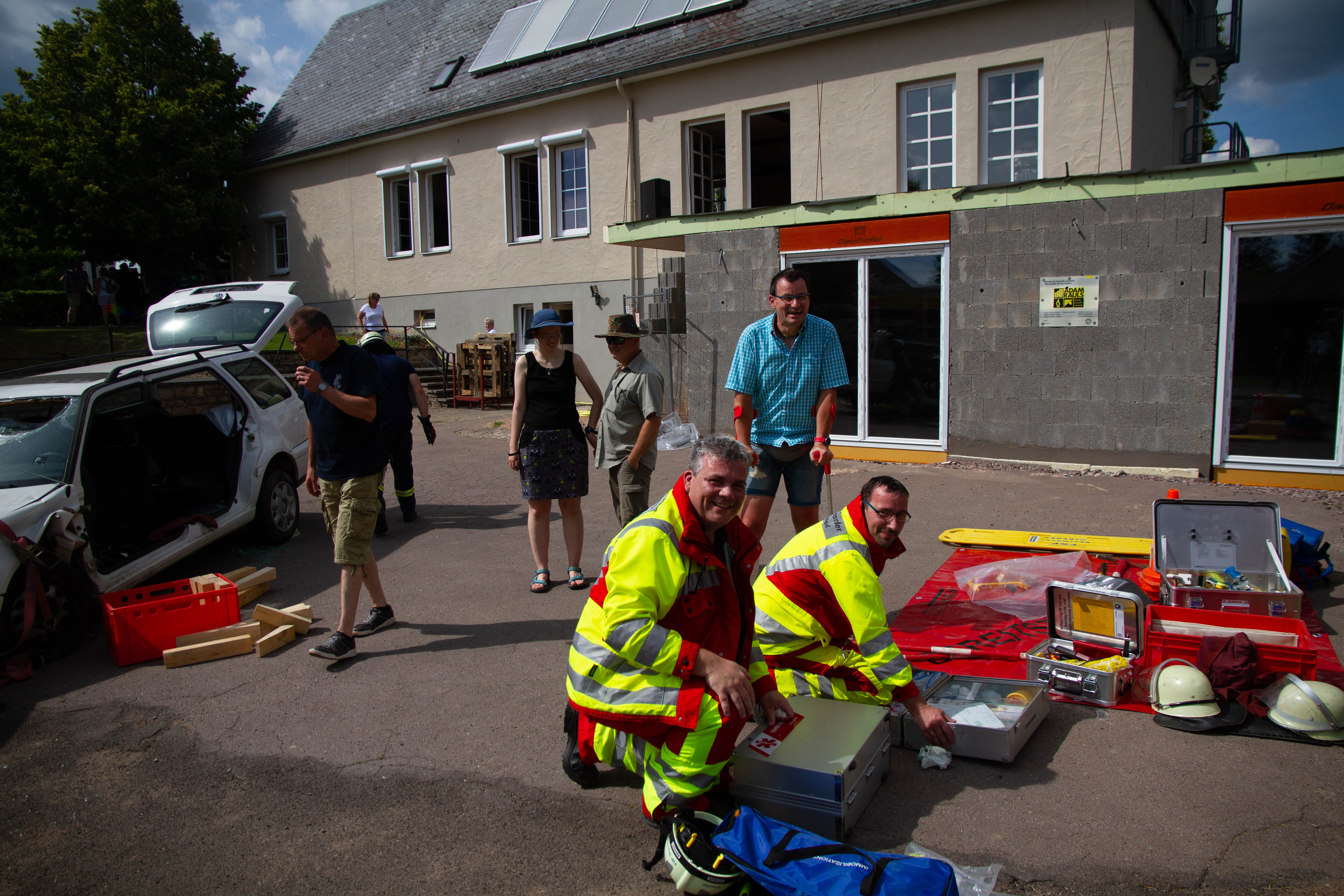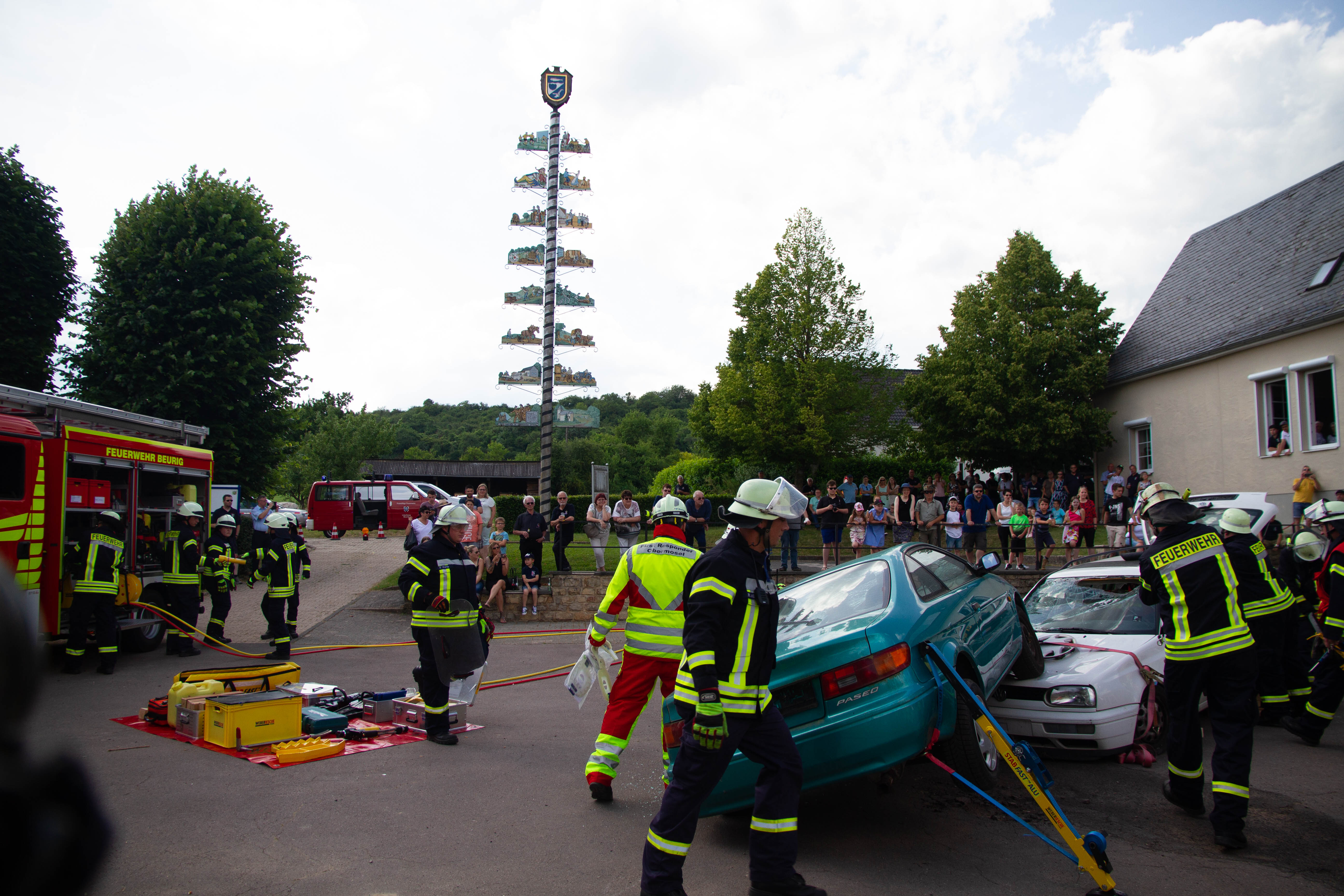 Am Nachmittag fand eine Schauübung am Festplatz statt, an der beteiligten sich die Feuerwehren aus Beurig und Wincheringen, sowie den First Responder Obermosel. Zahlreiche Zuschauer konnten hautnah dabei sein, wie ein Verkehrsunfall mit zwei Fahrzeugen und vier Verletzten bei realen Einsatzbedingungen abgearbeitet wird.Die Übung wurde den Zuschauern vom stellv. Wehrleiter Thorsten Petry im Detail erklärt.