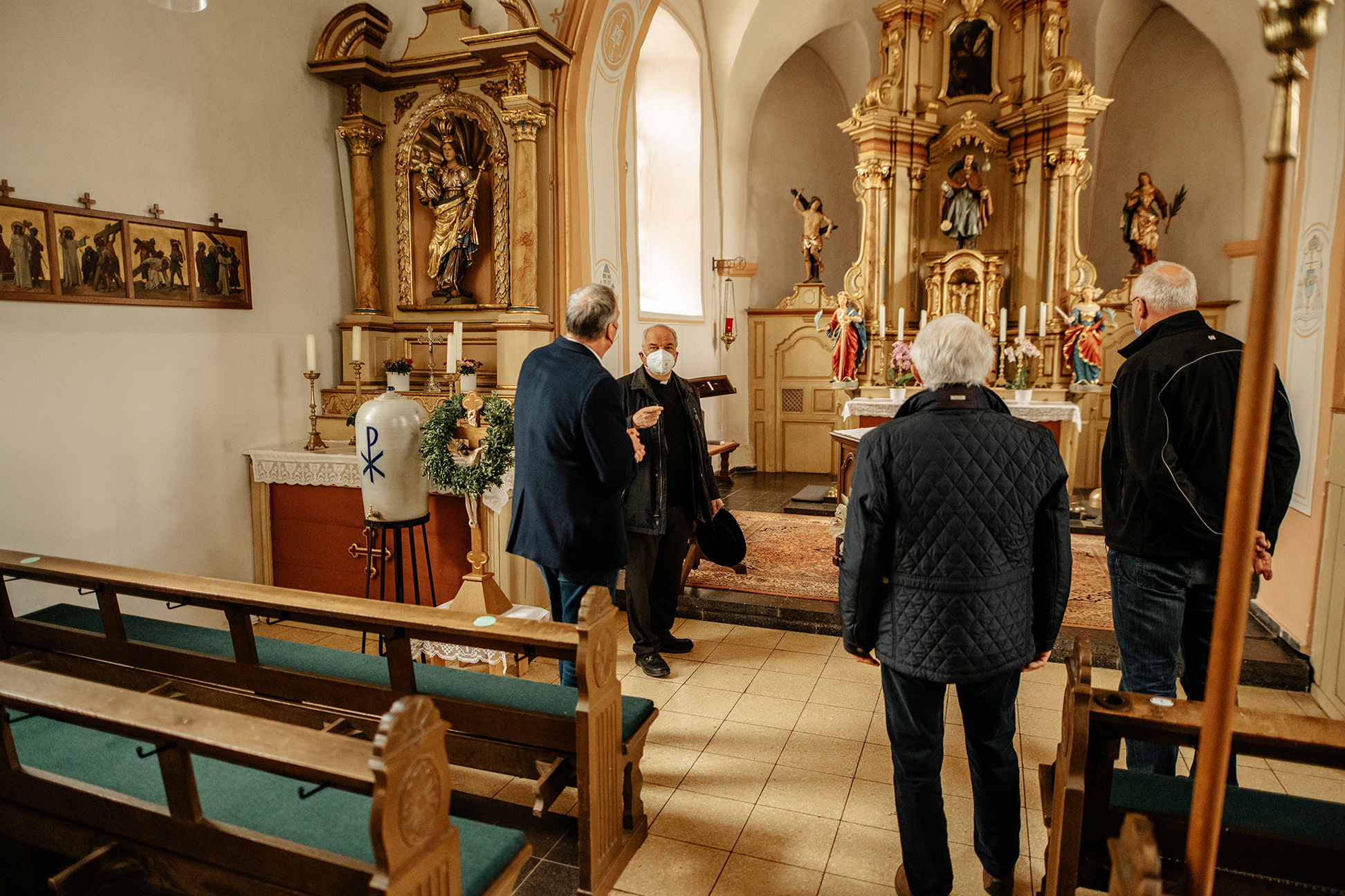 Auf den Fotos (kostenfreie Nutzung im redaktionellen Kontext unter Angabe des Fotografen): Andreas Steier MdB (CDU-Bundestagsabgeordneter im Wahlkreis Trier), Dieter Schmitt (CDU, ehemaliger MdL und ehemaliger Ortsbürgermeister der Gemeinde Fisch), Otmar Wacht (amtierender Ortsbürgermeister der Gemeinde Fisch), Georg Goeres (Pastor)