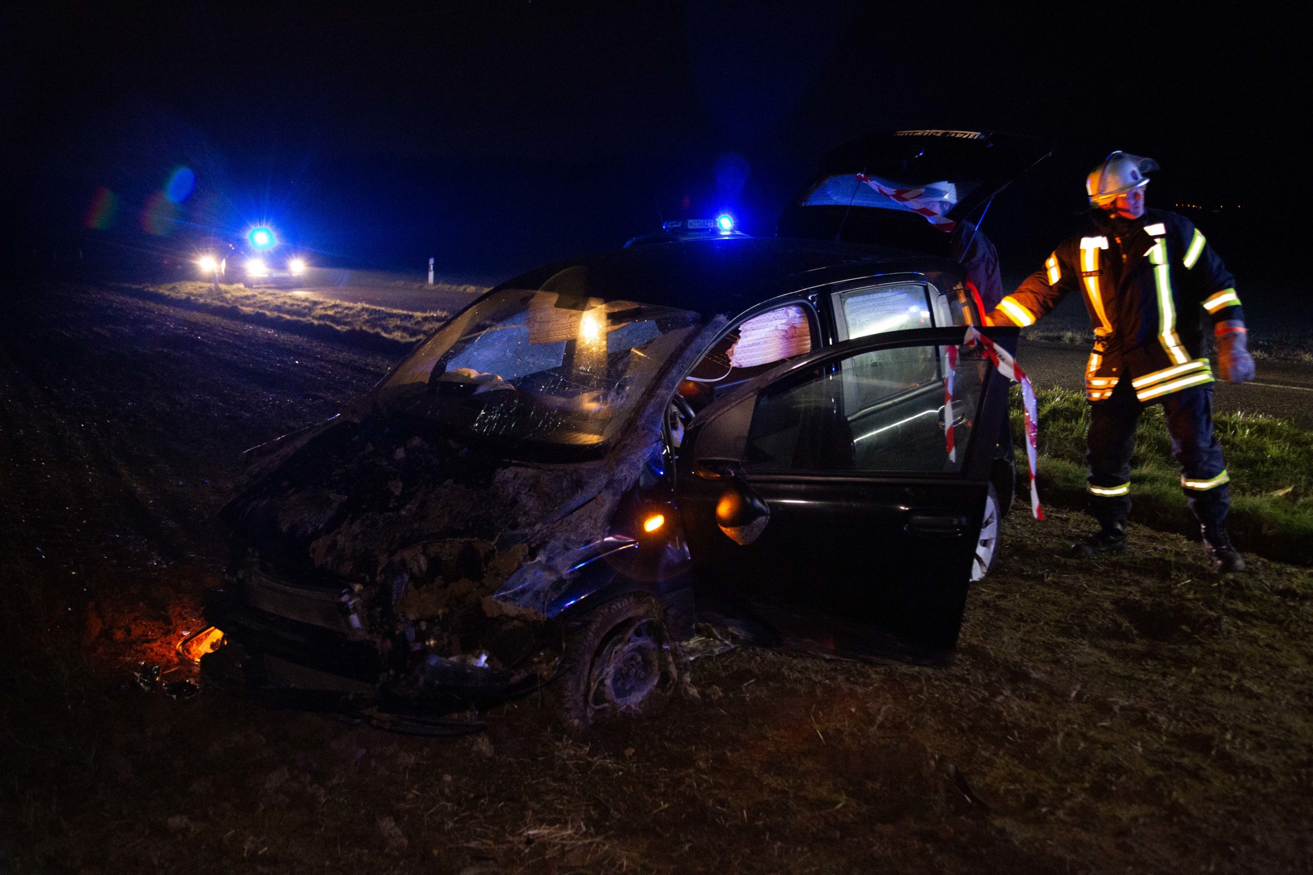 Ein 21-jähriger Fahrer verlor in einer leichten Linkskurve die Kontrolle über sein Fahrzeug und überschlug sich im Straßengraben.