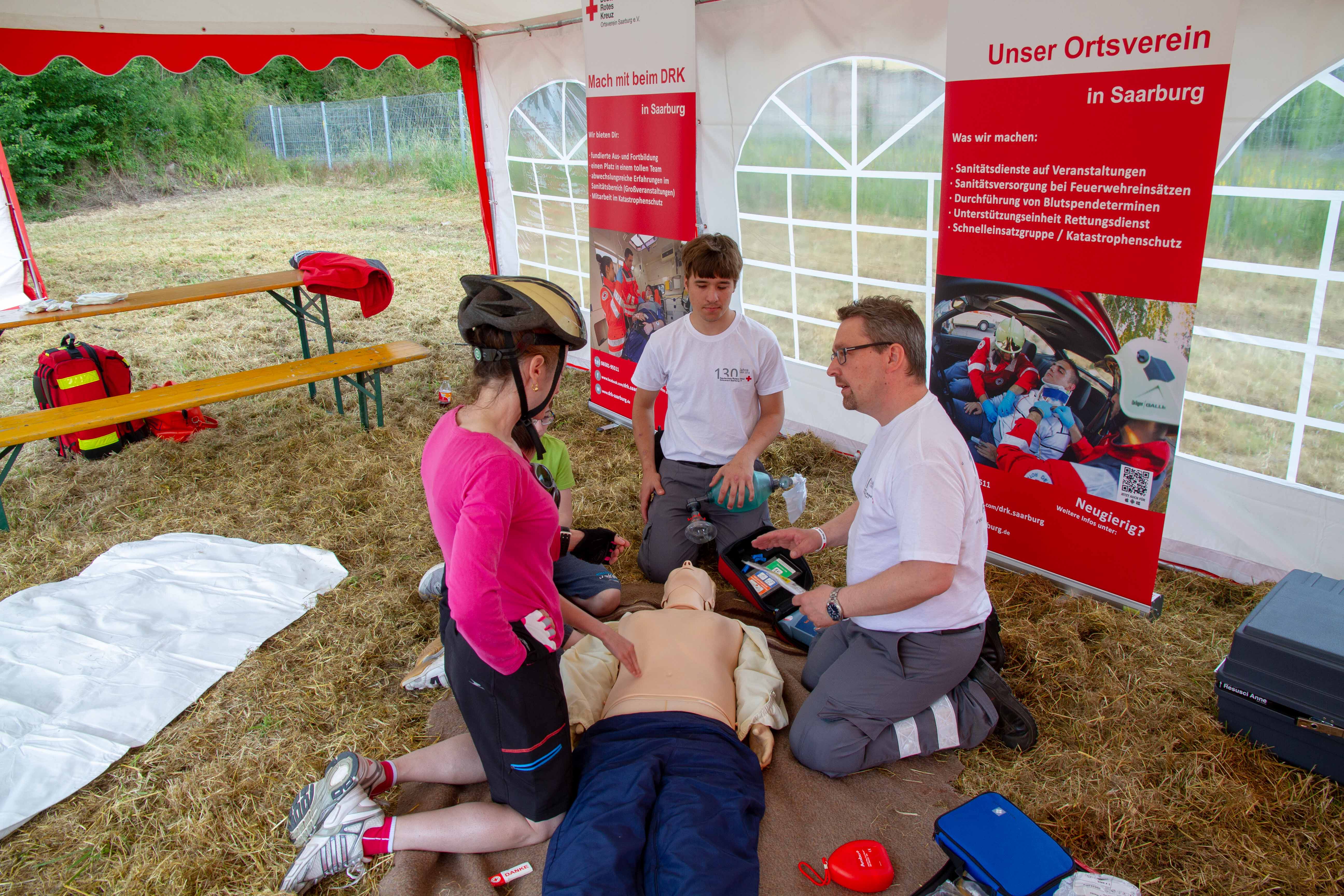 Der DRK Ortsverein Saarburg feiert in diesem Jahr sein 130-jähriges Jubiläum. Extra dafür errichtete man in Saarburg eine große Aktionsfläche mit einer Ausstellung der Fahrzeuge und einer Fotostation.