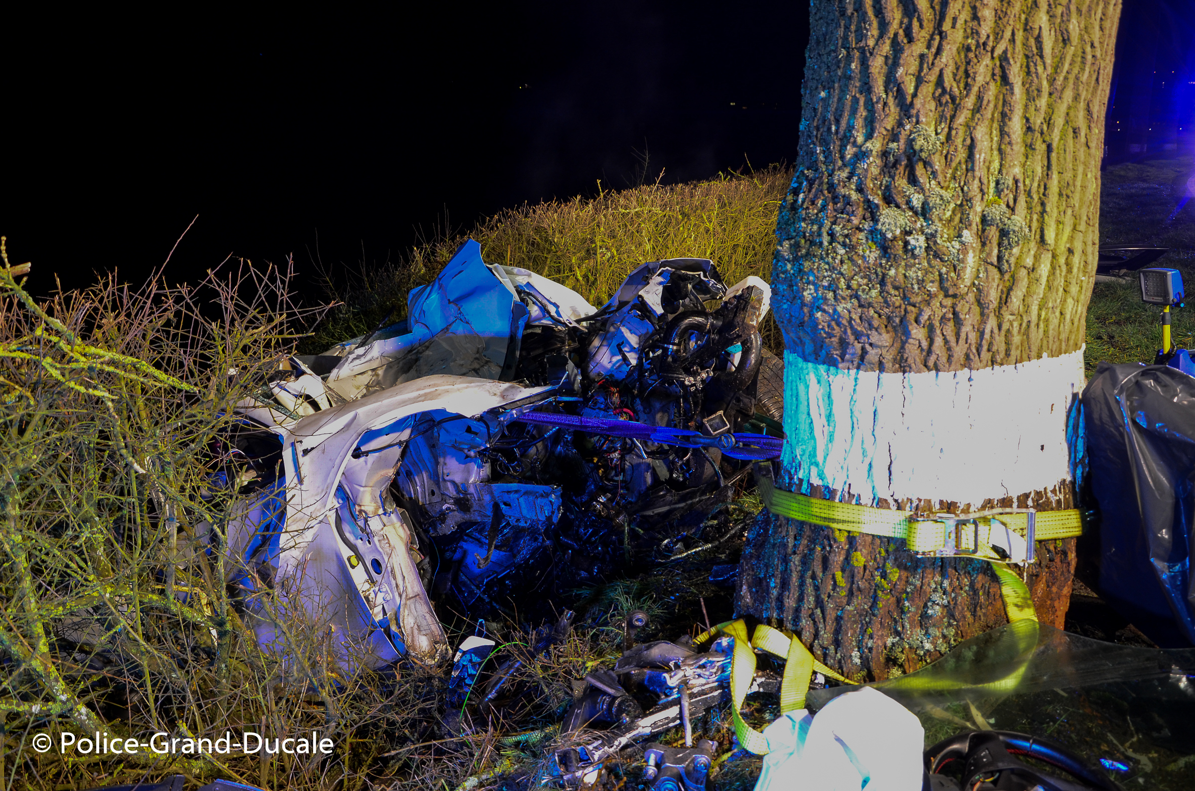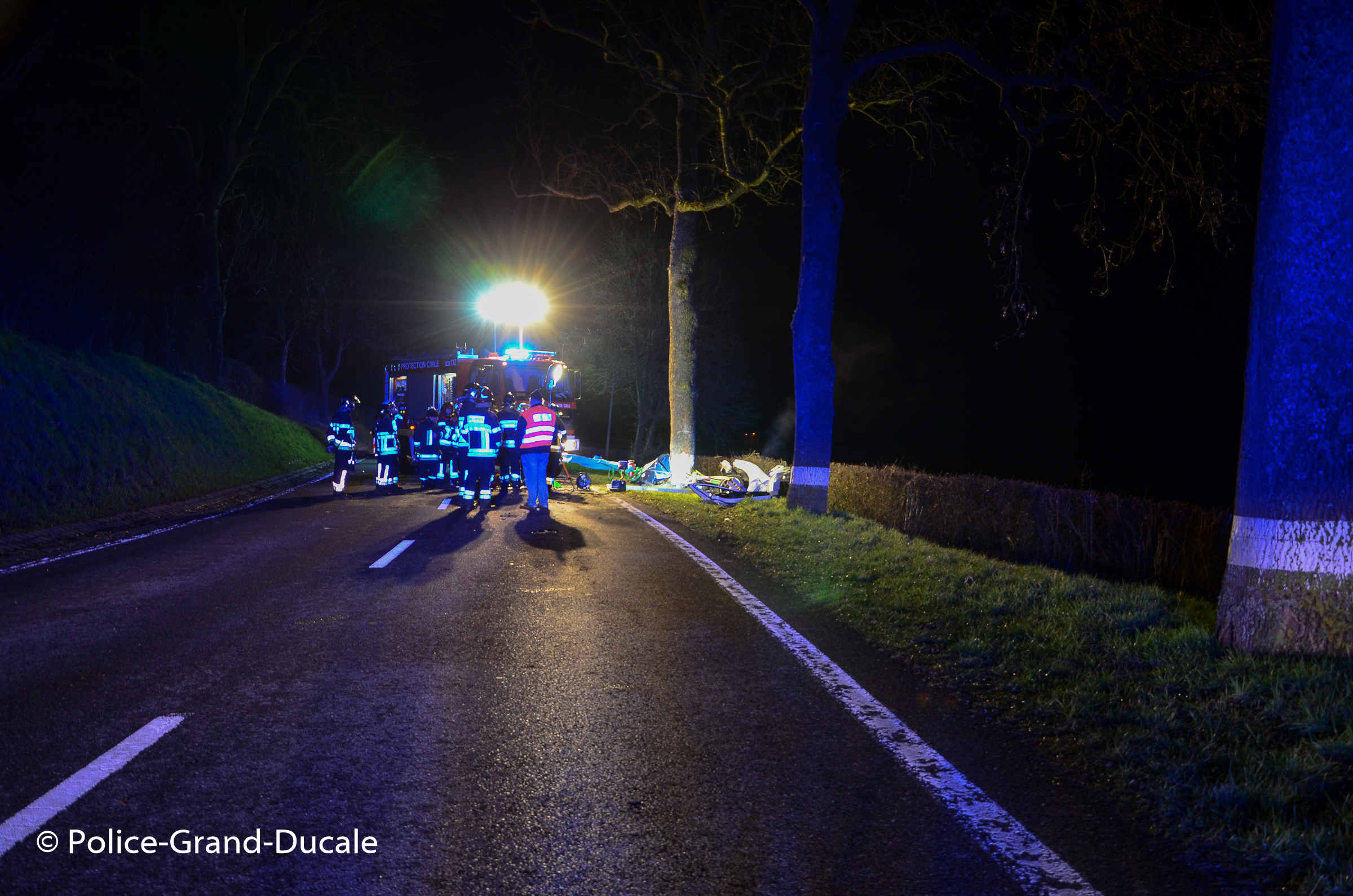 Ein Einwohner aus Angelsberg starb bei einem Verkehrsunfall auf der CR118 zwischen Mersch und Angelsberg. Der Mann überholte mehrere Fahrzeuge aus Richtung Mersch, verlor die Kontrolle über seinen Wagen, geriet in den Sommerweg und prallte frontal gegen einen Baum.