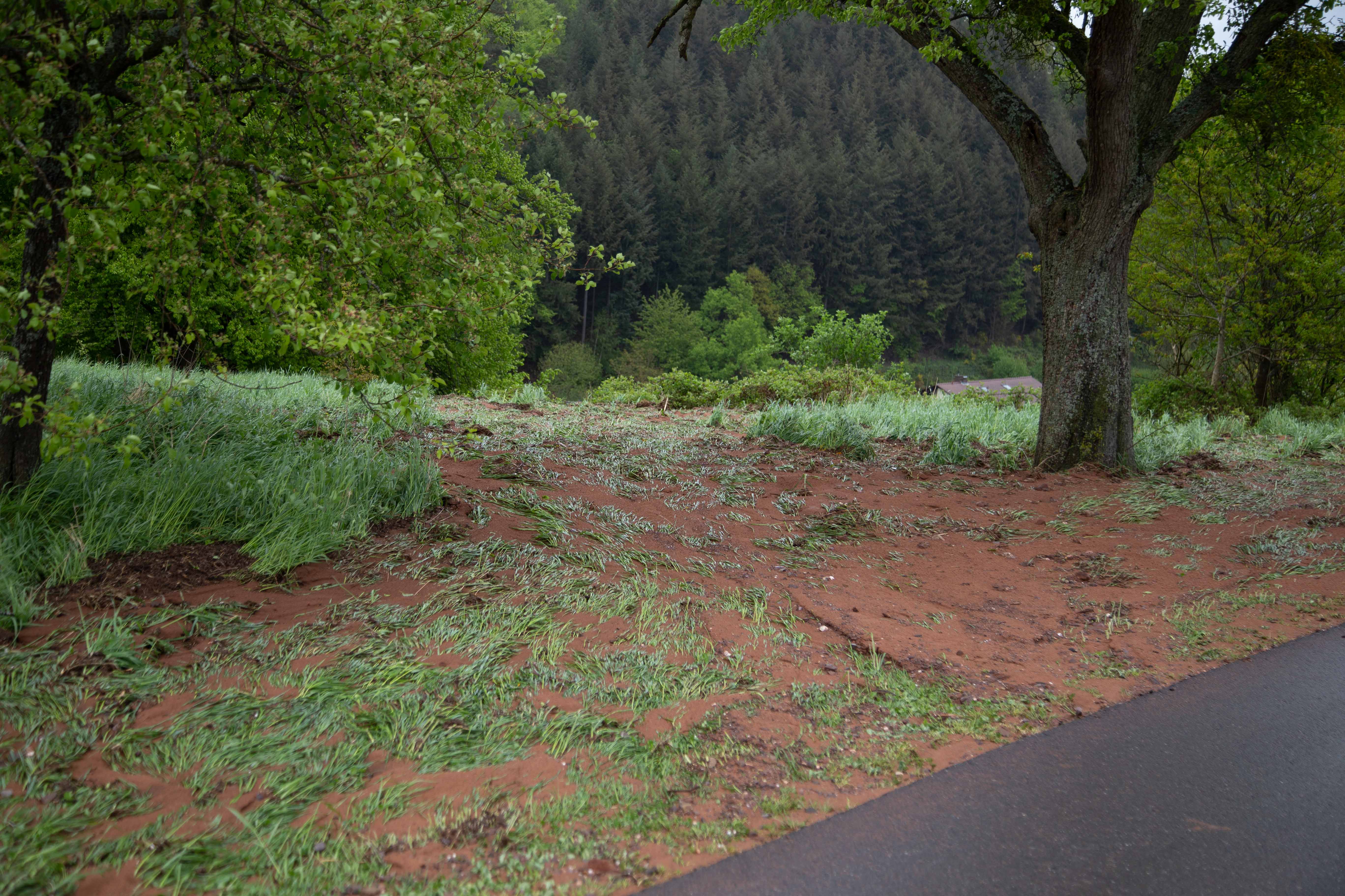 Wie die Bilder zeigen haben sich die Wassermassen auf den nach Osten geneigten Zufahrtsweg zum Walderlebniszentrum von den dort bewirtschafteten Ackerflächen gebildet und sind dann flutartig den Hang heruntergestürzt. Die Verbandsgemeinde Saarburg beteiligt sich auch an der vom Land Rheinland Pfalz gestarteten Initiative des Hochwasserschutzkonzeptes von 2016