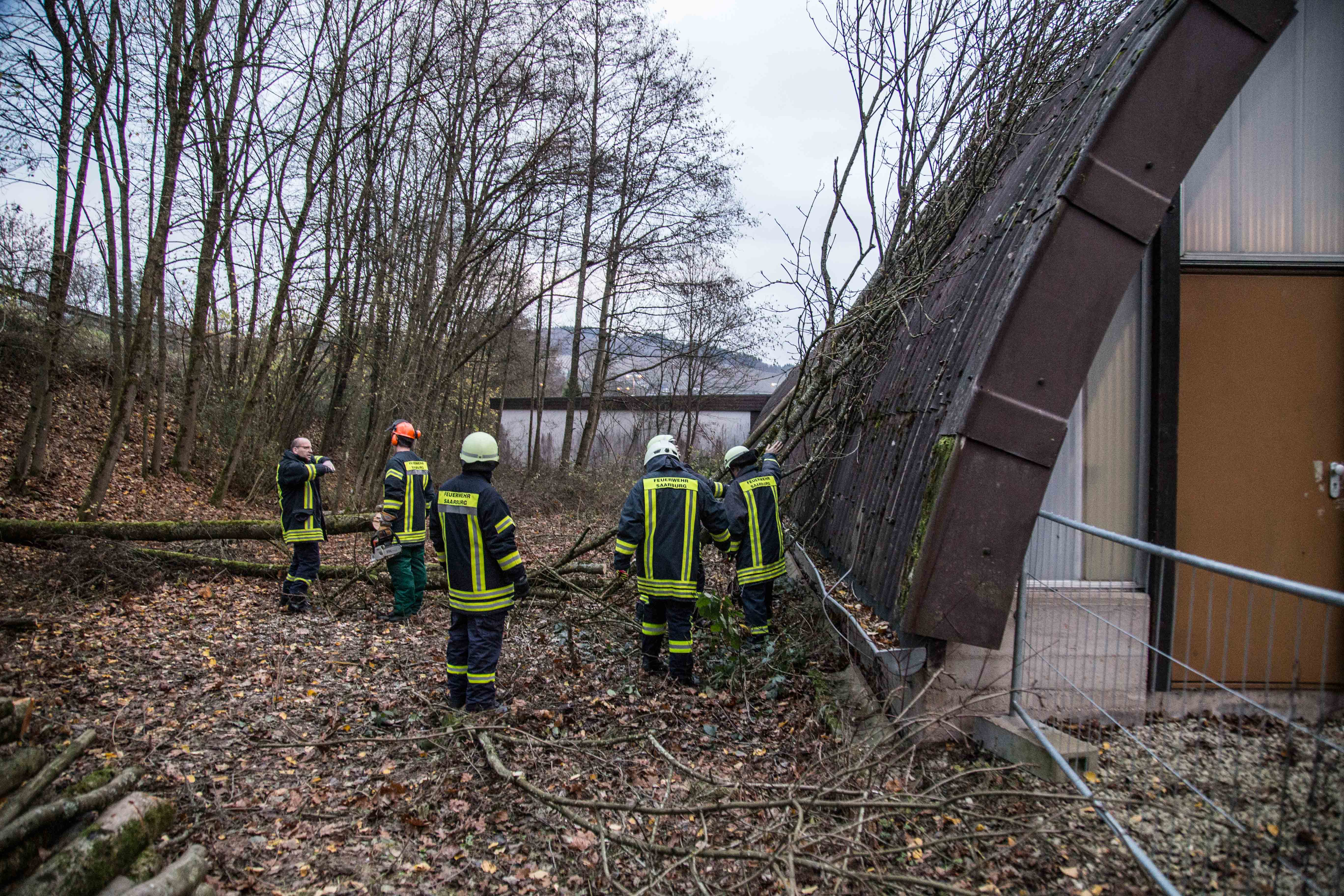 Saarburg. Gegen 16.00 Uhr am Freitagmittag wurde der Feuerwehr ein umgestürzter Baum an der Agility-Halle am Leukbach gemeldet. Die Feuerwehr Saarburg rückte darauf hin mit zwei Fahrzeugen aus.