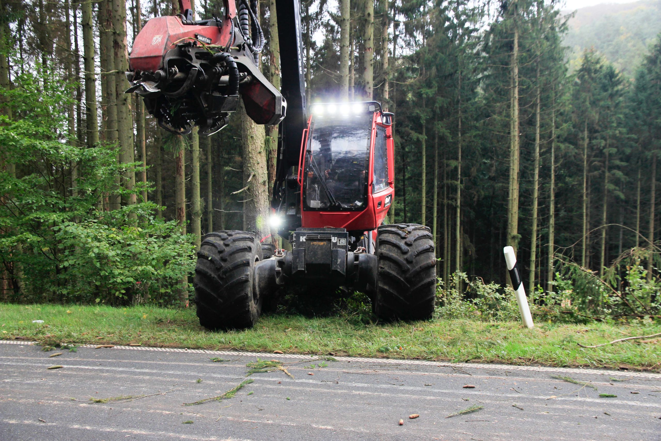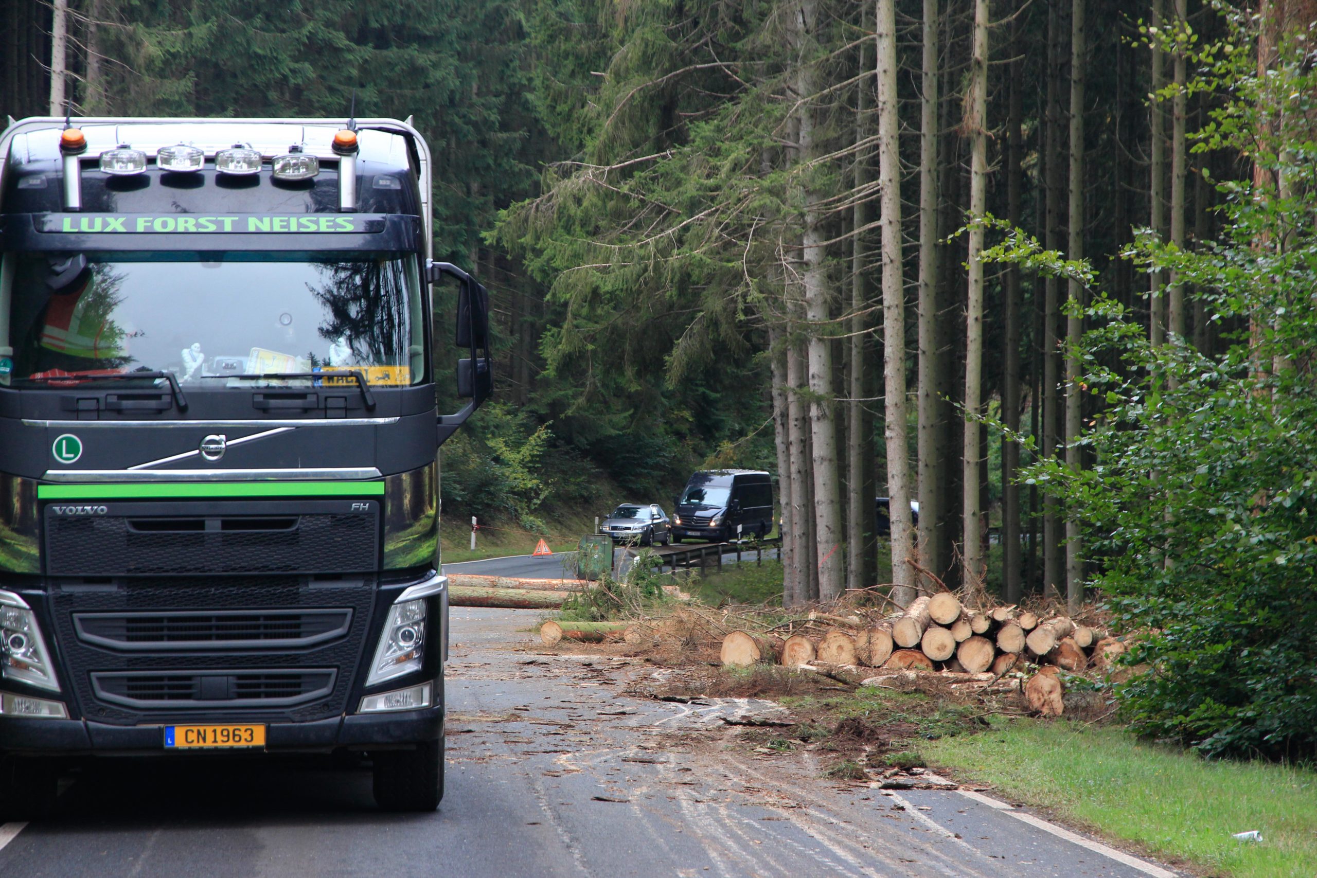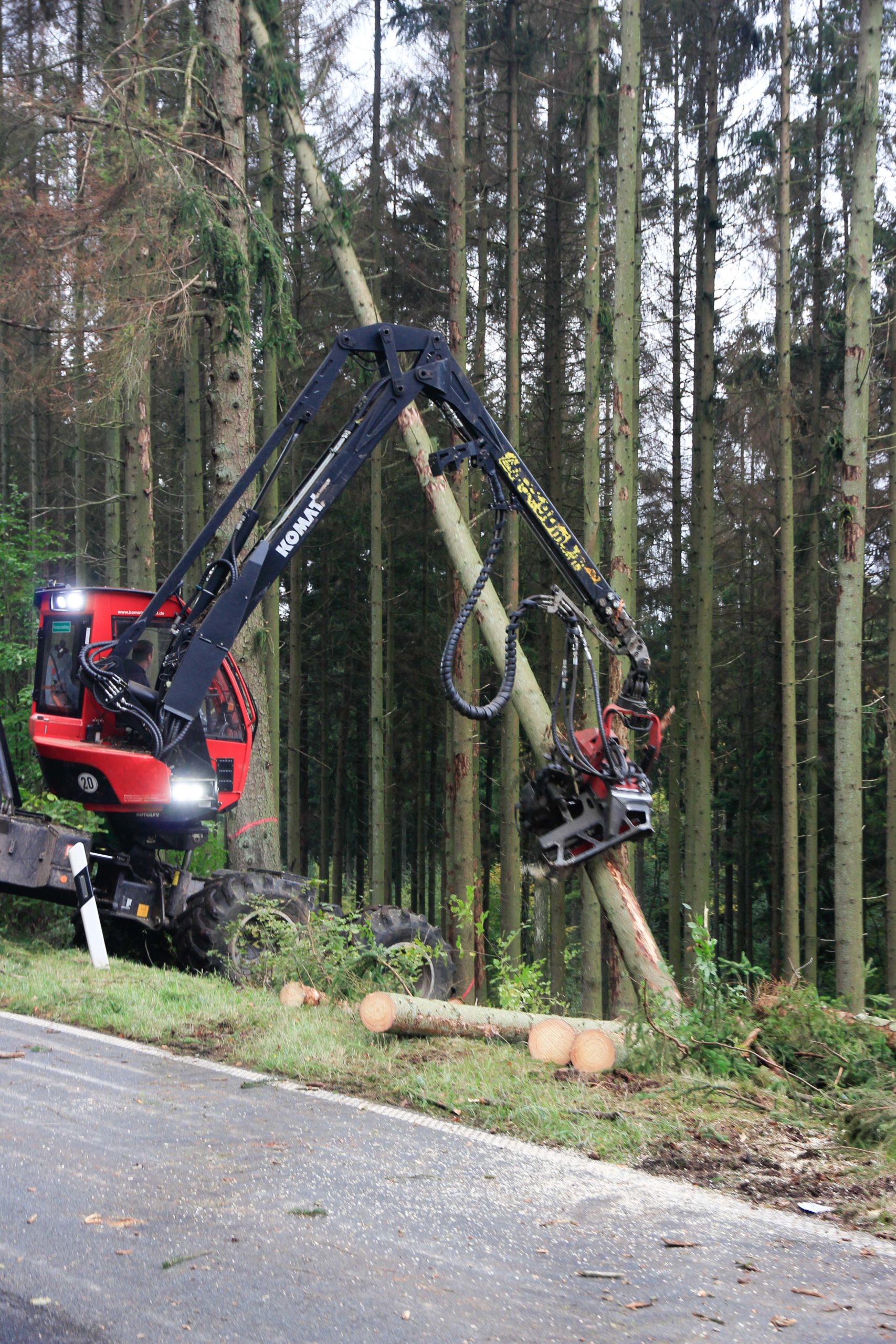 Die Vollsperrung ermöglicht es konzentriert mit schweren Maschinen einsetzen zu können und es damit schneller geht. Für den Verkehrsteilnehmer wirken zwei Wochen sehr lange, aber ca. 750 Bäume zu fällen und zu ernten, an die Straße zu bringen und vor allem abzufahren, bedarf halt entsprechende Zeit und die Witterung tut Ihres dazu.