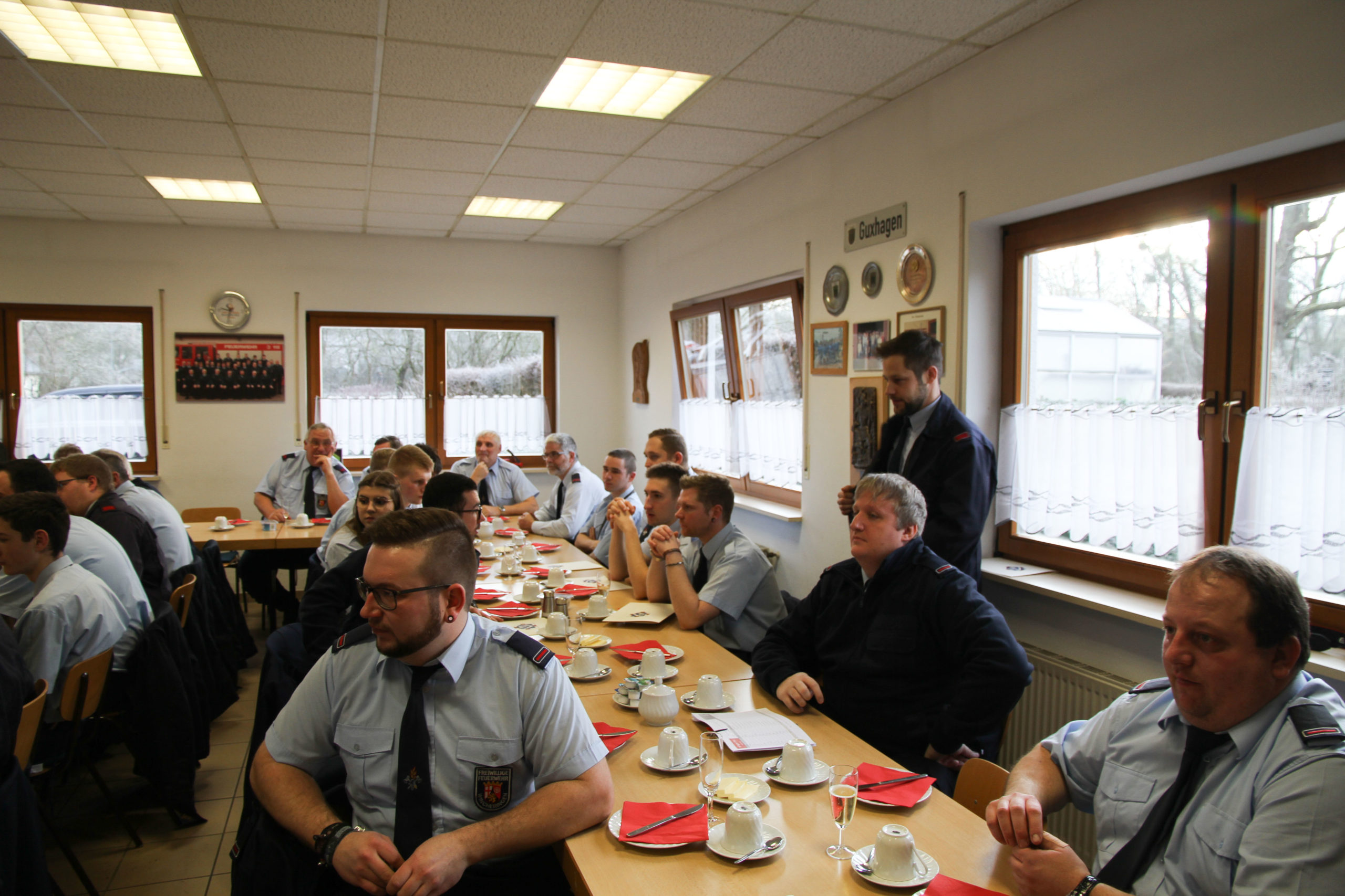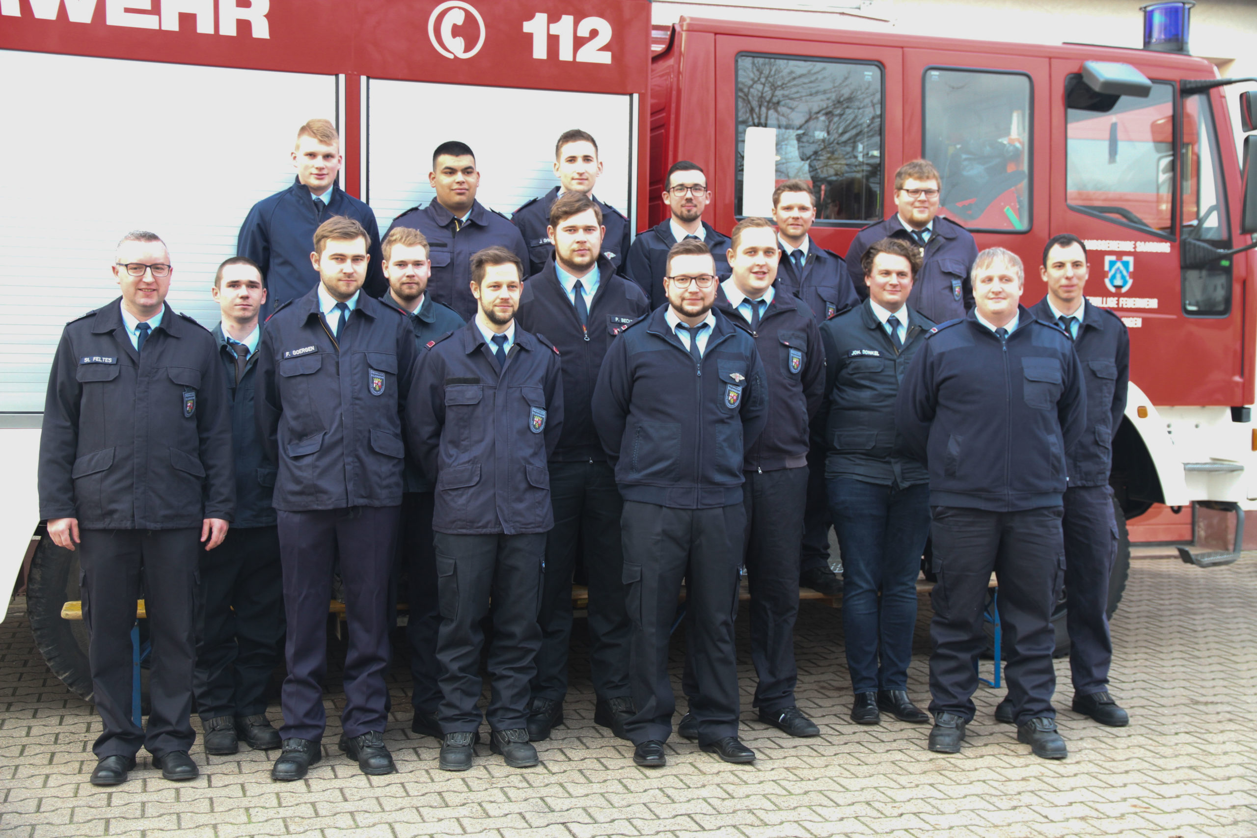 Nach Übergabe der Urkunde und Austausch der Schulterklappen traf man sich zu einem Gruppenbild vor dem Gerätehaus und anschließend das gemeinsame Frühstück.