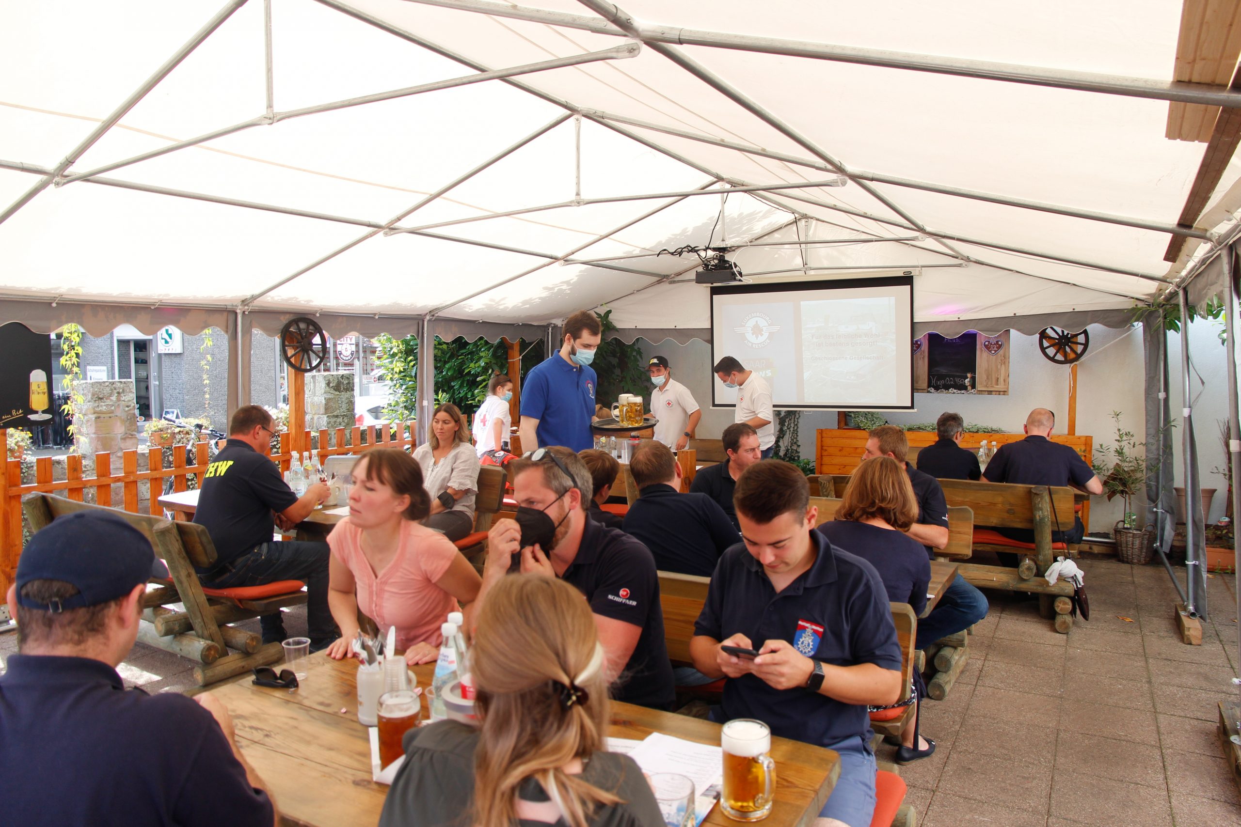 Saarburg. Vergangenen Sonntag (5.9.2021) lud die Interessengemeinschaft „Dankesaktion Katastropheneinsätze“ an die sechzig Einsatzkräfte der Feuerwehr Saarburg und umliegende Ortswehren, dem DRK Ortsverein Saarburg e.V. sowie dem THW Ortsverband Saarburg die aktiv in den Einsatzgebieten tätig waren, mit Partner in den Biergarten den Gasthauses „Wirtshaus mit Herz“ zu einer geschlossenen Veranstaltung nach Saarburg ein.