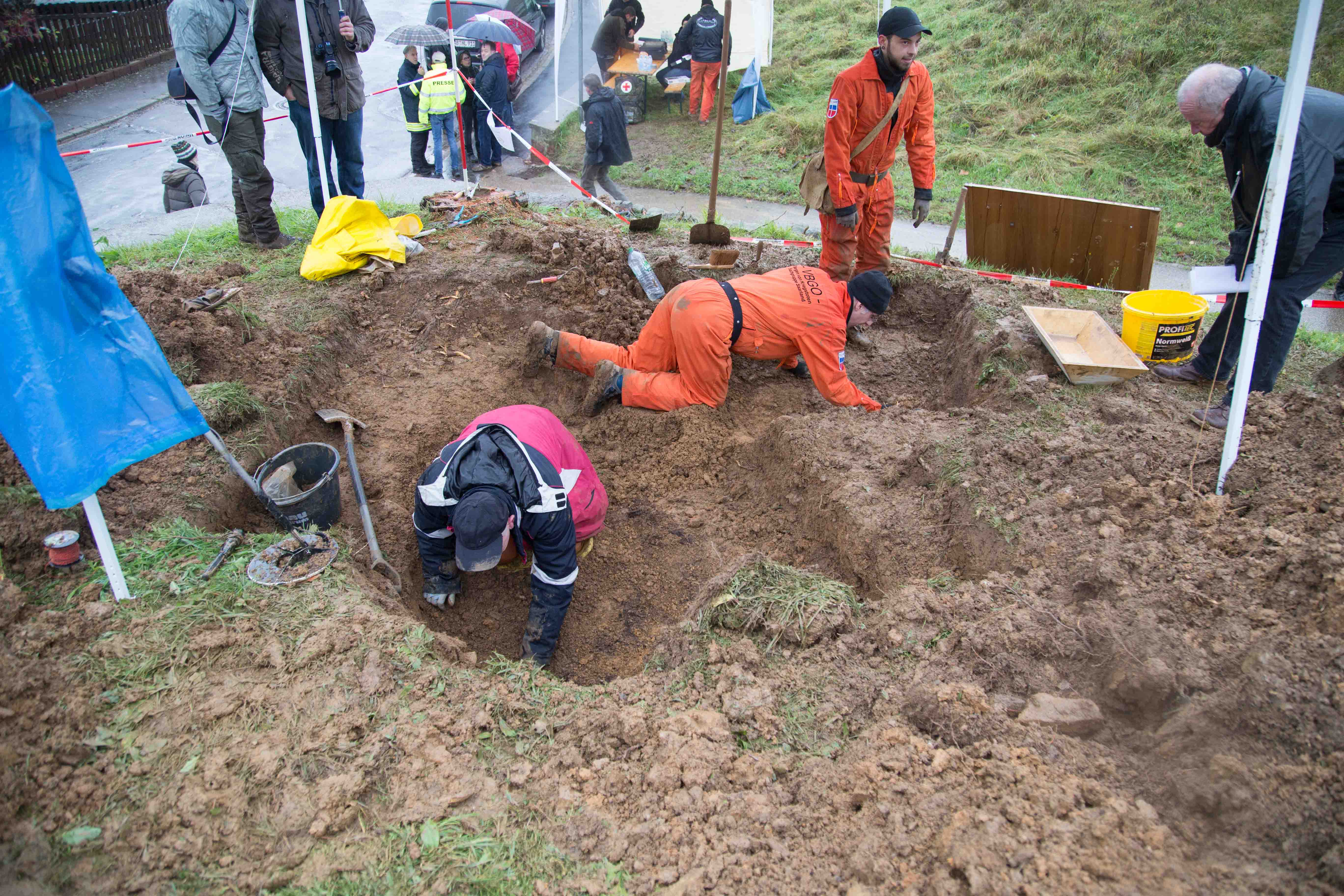 Die ehrenamtlichen Archäologen kommen aus Deutschland, Niederlanden und der Schweiz. Auch ein amerikanischer General, der weltweit zuständig ist, für die gefallenen und vermissten Soldaten aus den beiden Weltkriegen. Er wird im Laufe des Nachmittag sich an der Grabungsstätte einfinden.