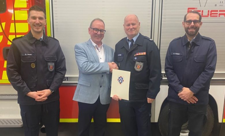 Bürgermeister Jürgen Dixius überreichte vergangene Woche die Ernennungsurkunde und würdigte damit das langjährige und verdienstvolle Engagement, die vielen geleisteten Stunden sowie die stete Hilfs- und Einsatzbereitschaft Heins für die Feuerwehren der Verbandsgemeinde.