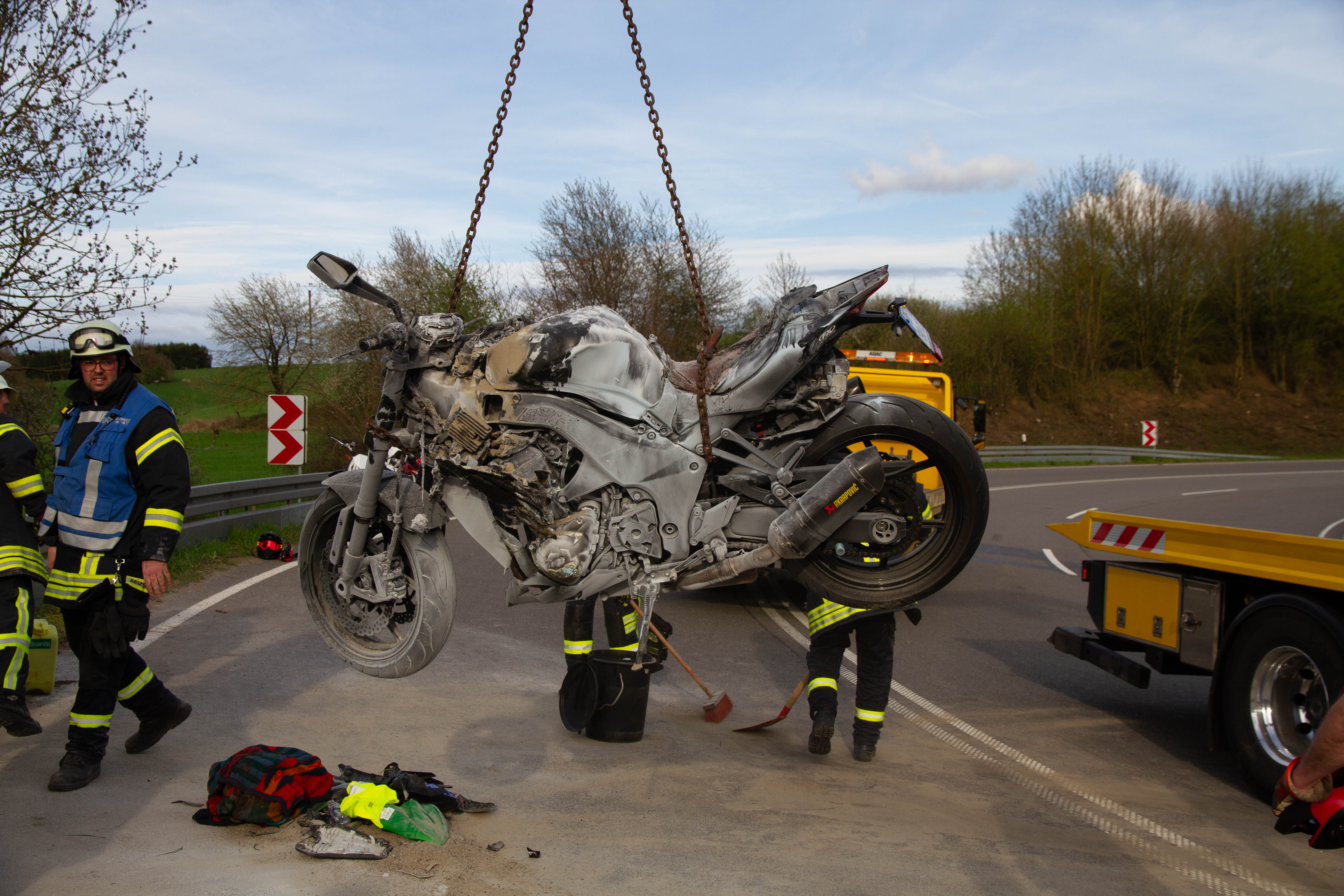 Beide Motorräder gerieten nach der Kollision in Brand. Der 46- jähriger Unfallverursacher wurde lebensgefährlich verletzt und mit dem Rettungshubschrauber Air Rescue 3 aus Luxemburg in die Winterbergklinik nach Saarbrücken geflogen. Der 25 jährige wurde schwer verletzt und in ein Krankenhaus gebracht.