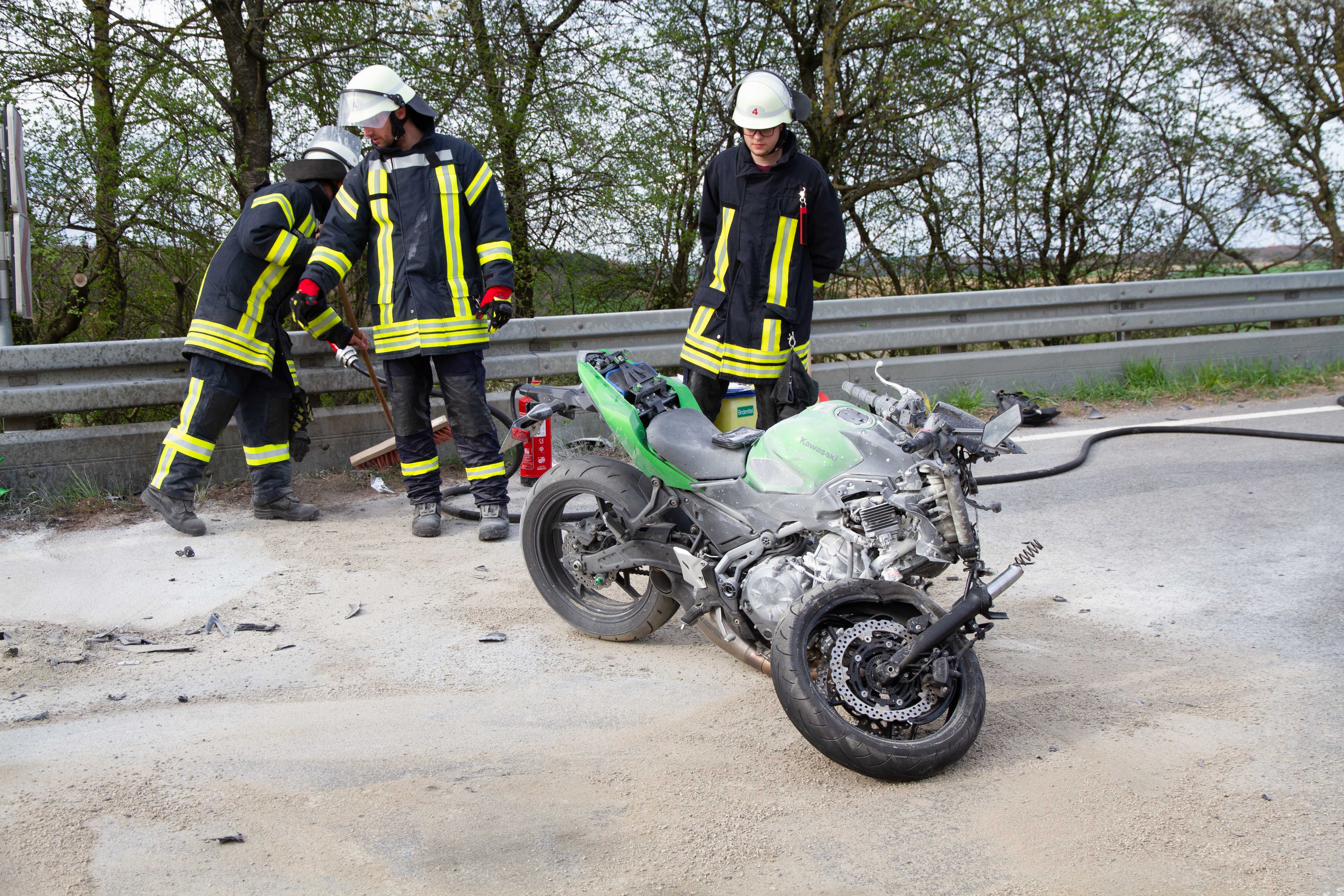 Ein 25- jähriger kam auf der einspurigen Fahrbahn bergab entgegen. Im Kurvenbereich stießen beide Motorräder zusammen.