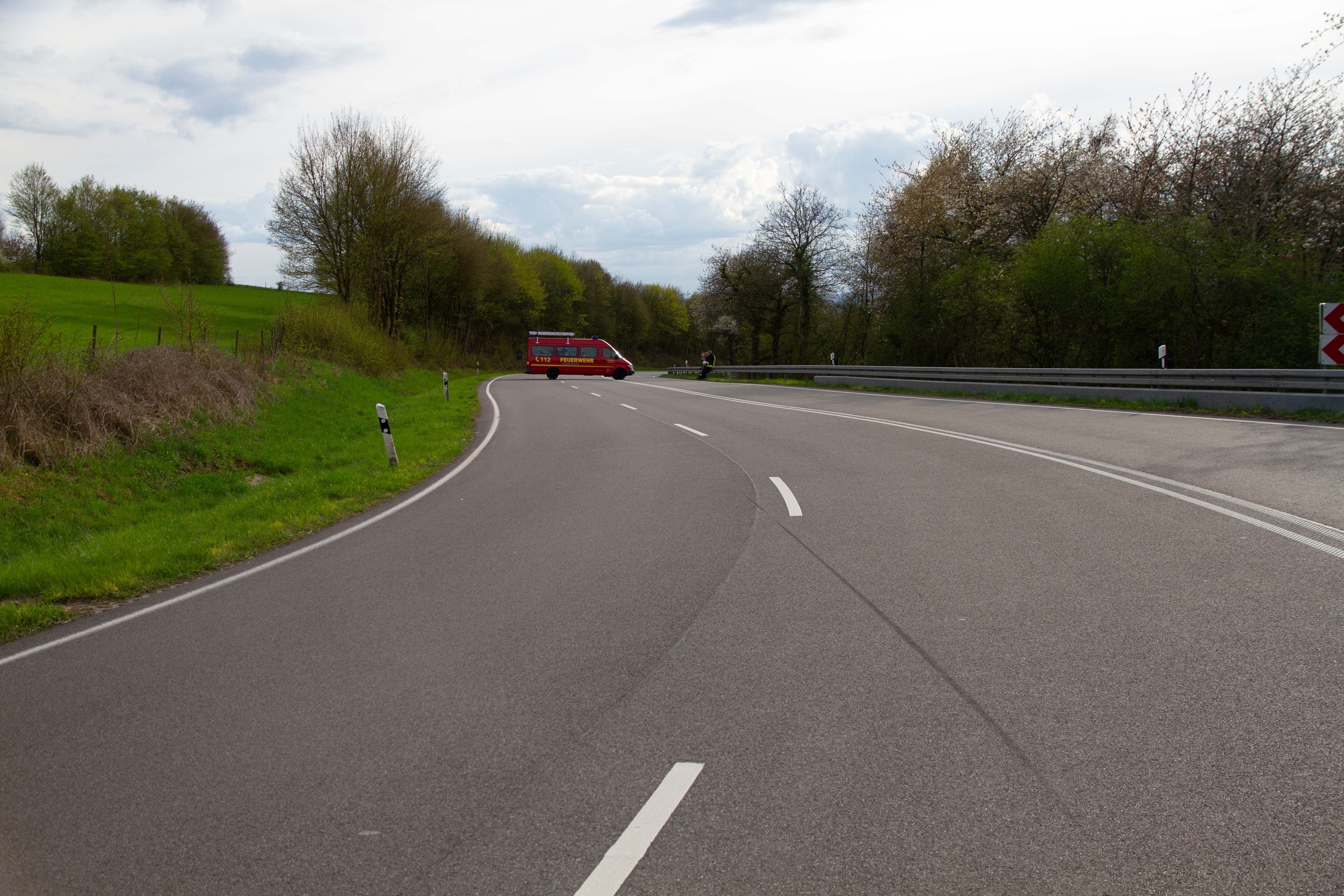 Ein 46- jähriger befuhr die zweispurige B406 von Sinz Richtung Potsdamer Platz, nach Angaben der Polizei war der Unfallverursacher in der 70er Zone zu schnell und konnte vor der Rechtskurve seine Maschine trotz eines Bremsmanövers nicht mehr unter Kontrolle bringen.