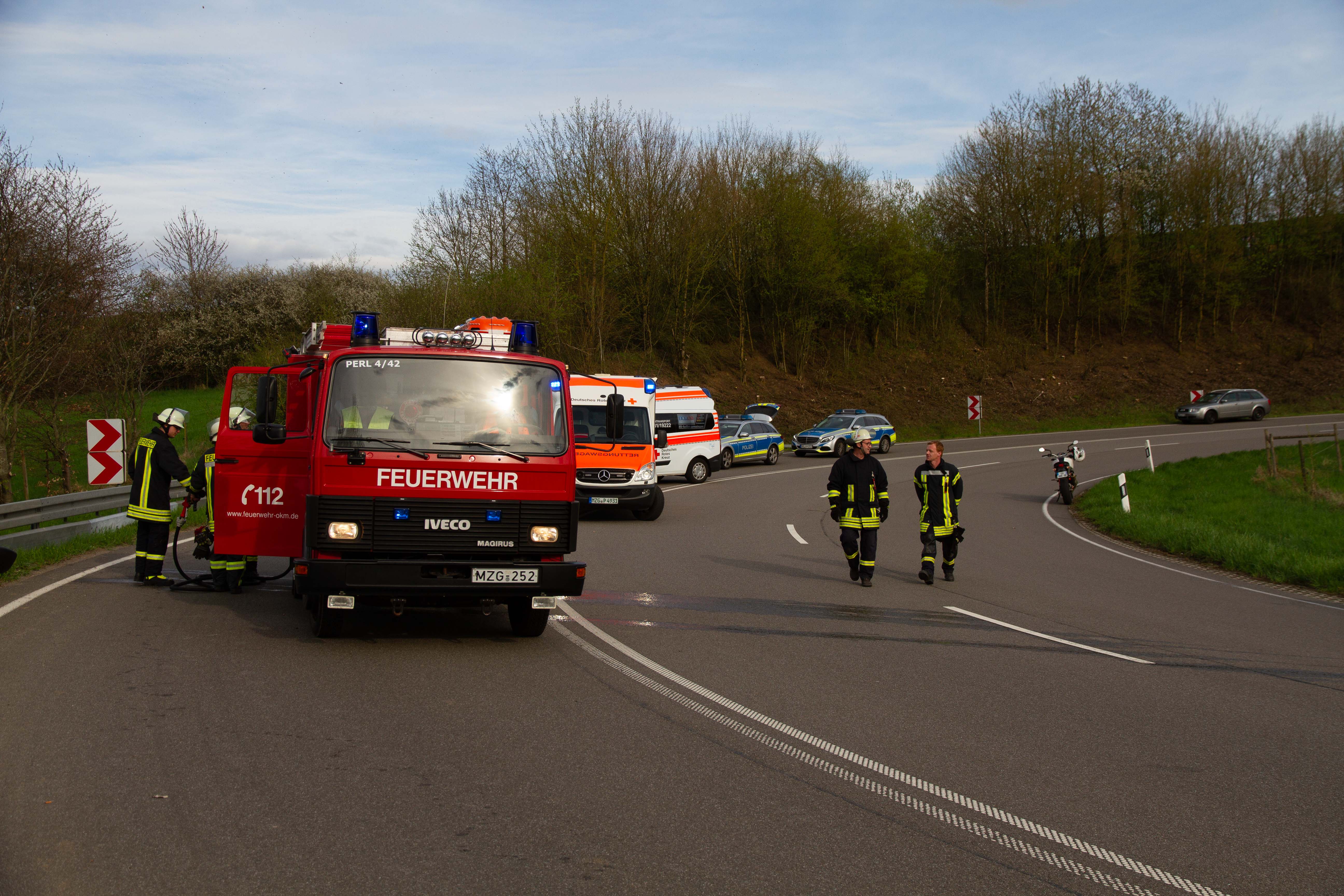 Der Rettungswagen aus Perl und Mettlach, der Notarzt und ein KTW aus Merzig , Air Resuce 3 und die Polizeiinspektion Merzig mit zwei Fahrzeugen.