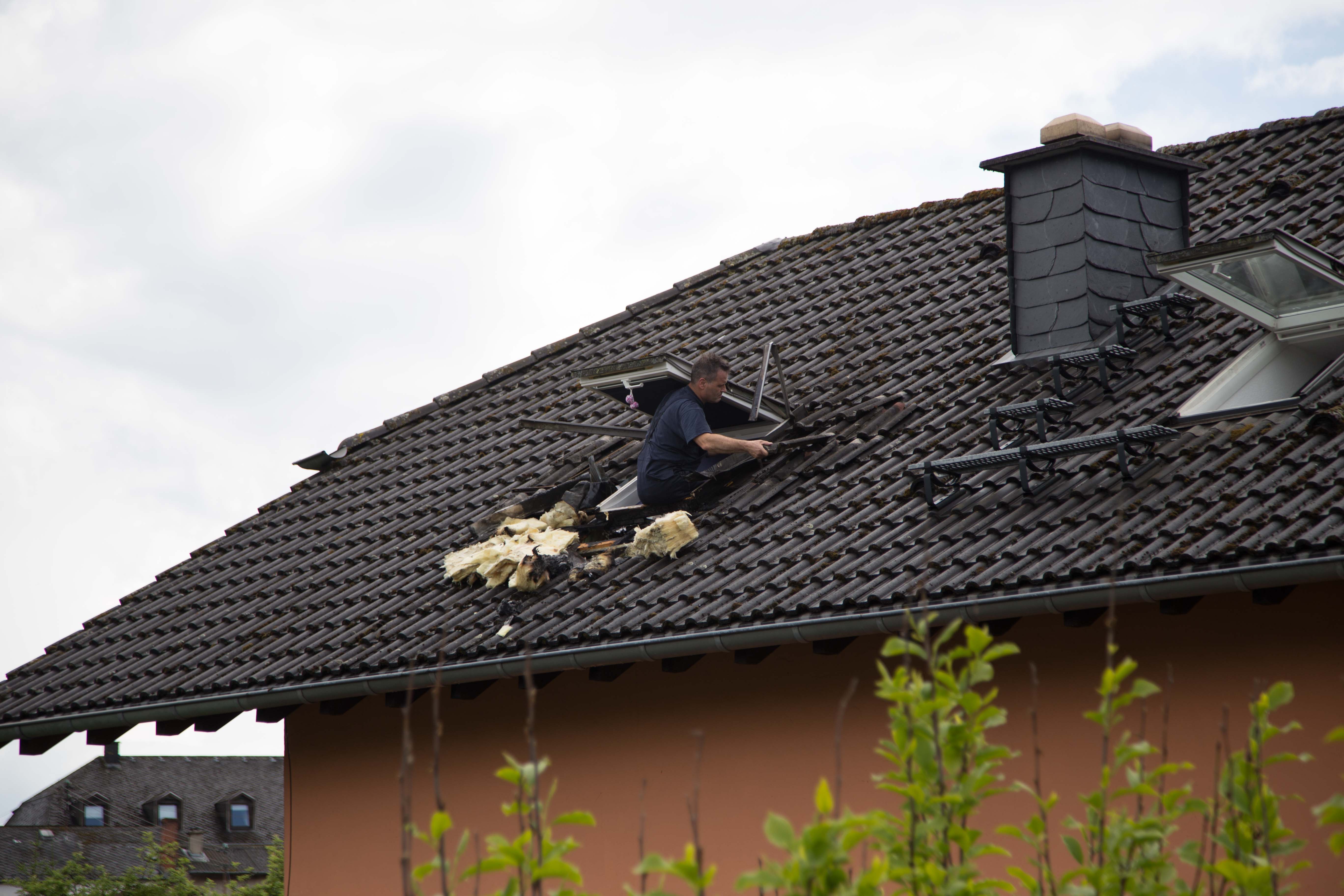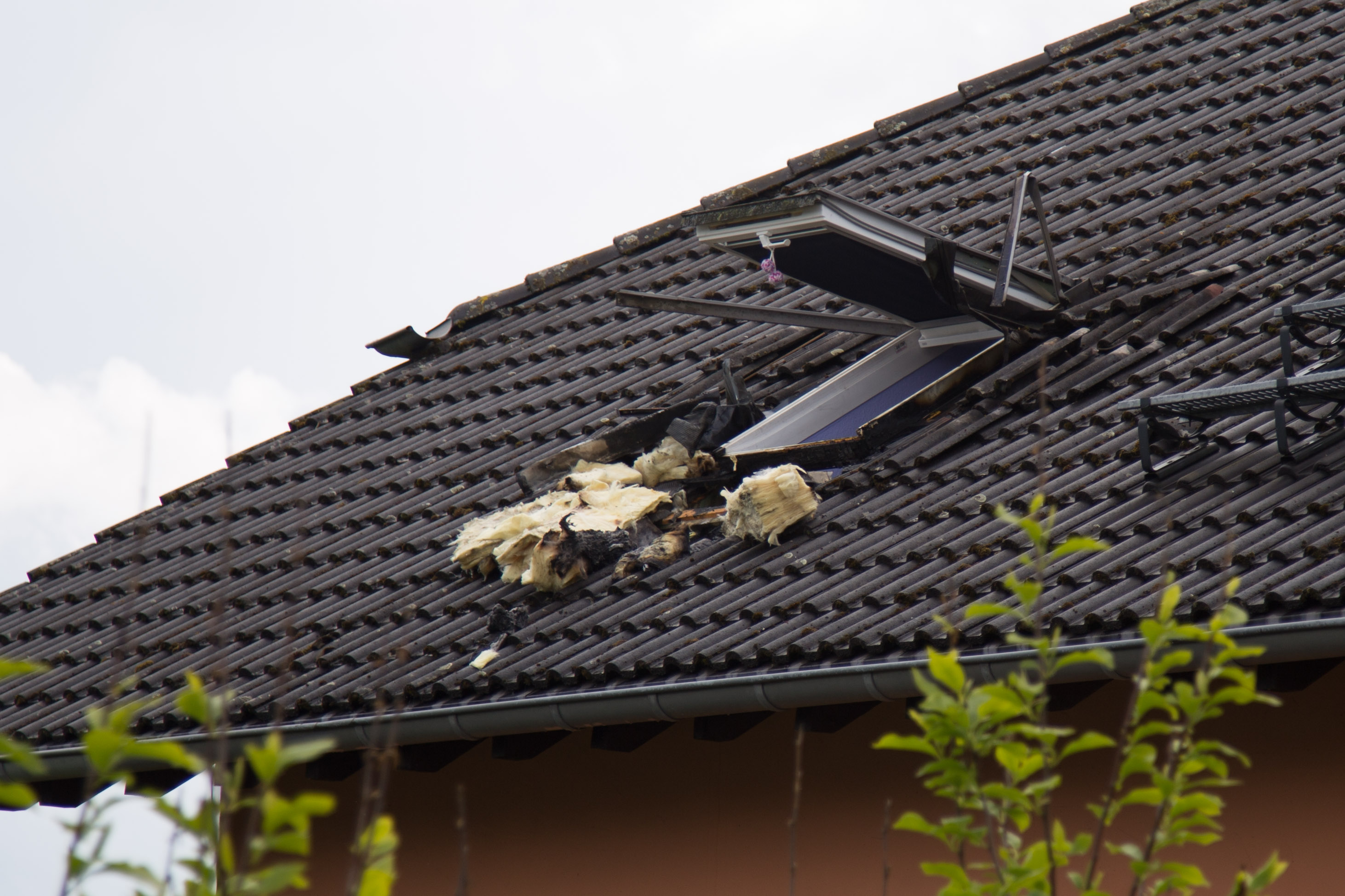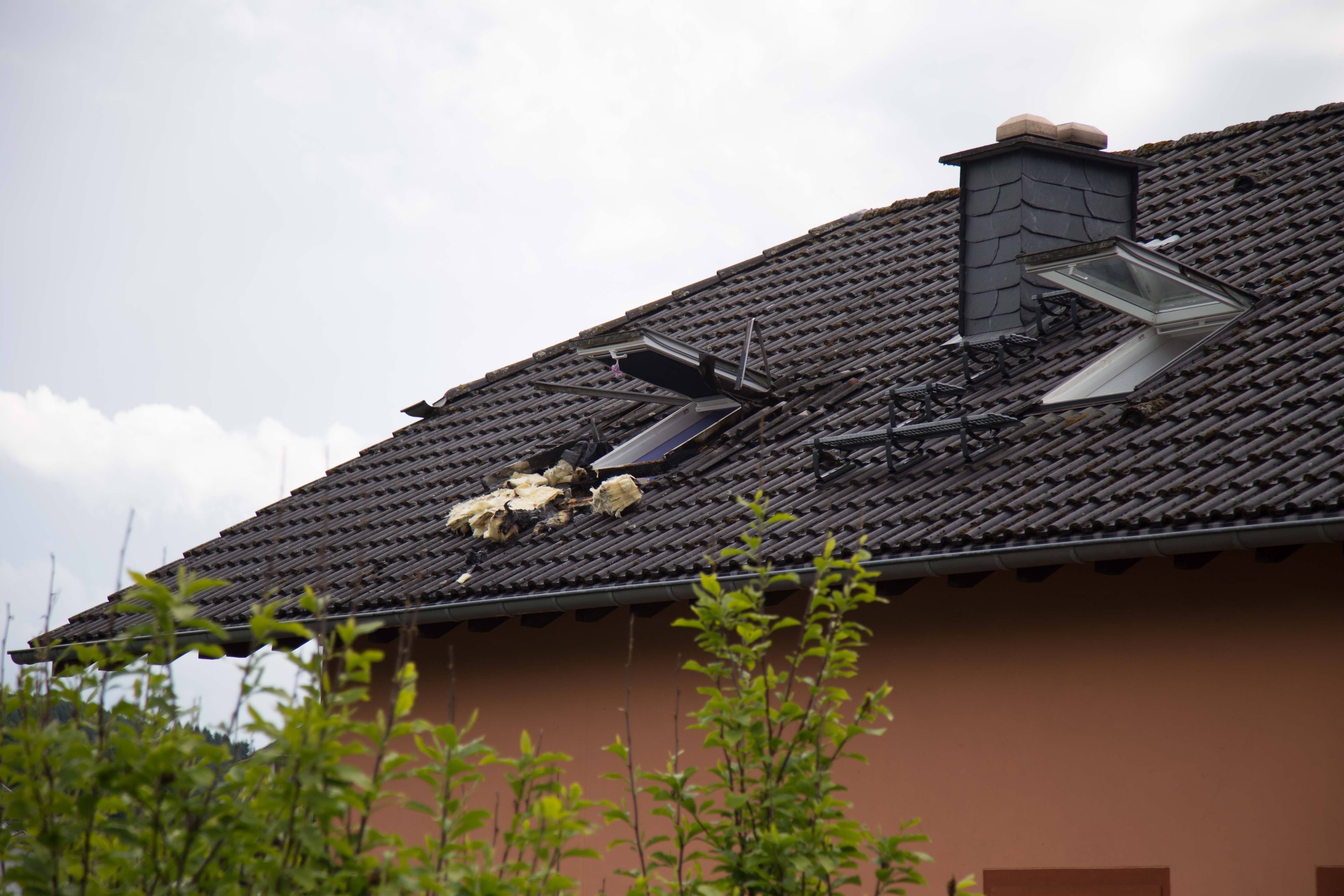 Am Dach entstand erheblicher Sachschaden, sowie am direkt drunter liegendem Kinderzimmer, in dem zum Zeitpunkt zum Glück niemand am spielen war.