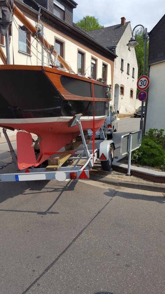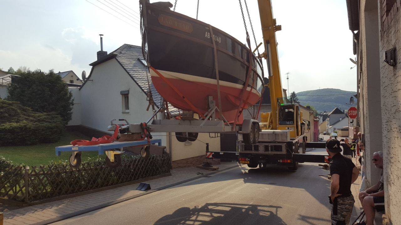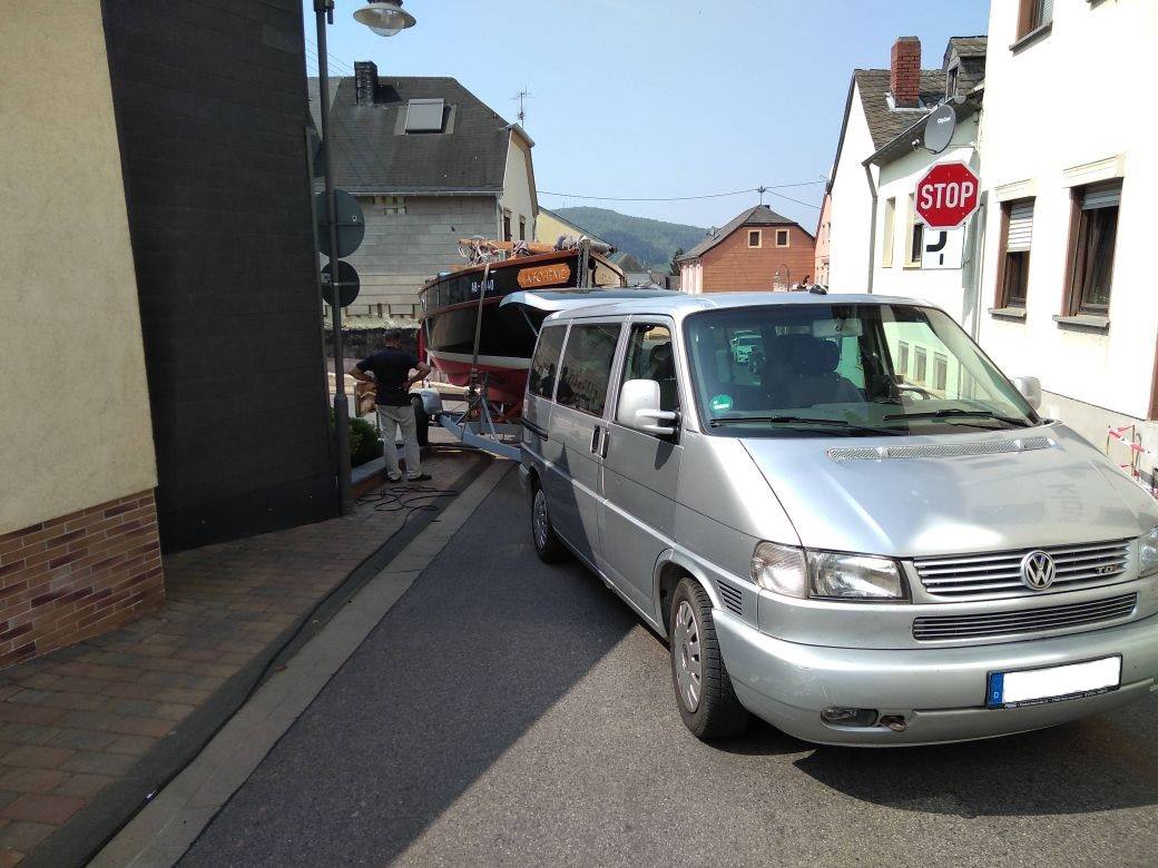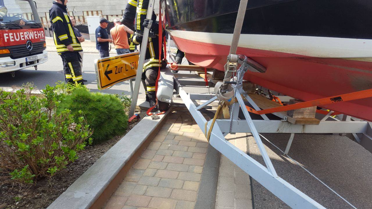 Durch die Kollision wurde die Befestigung des Bootes auf dem Anhänger ebenfalls beschädigt. Mit Hilfe von Gurten wurde das Boot wieder gesichert. Der herbeigerufene Rüstwagen aus Kasel zog den beschädigten Anhänger mit Hilfe einer Seilwinde von der Mauer an den Straßenrand.
