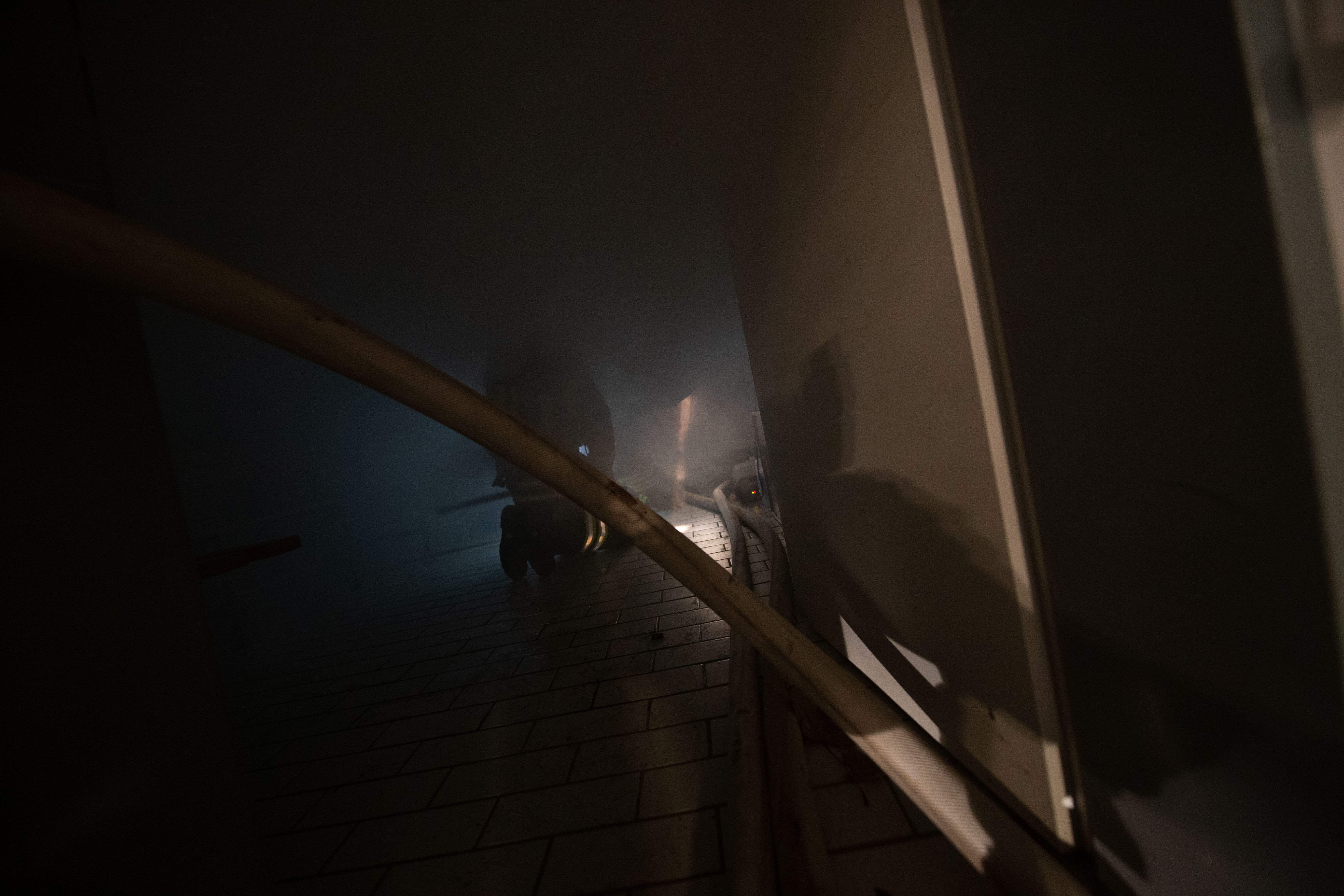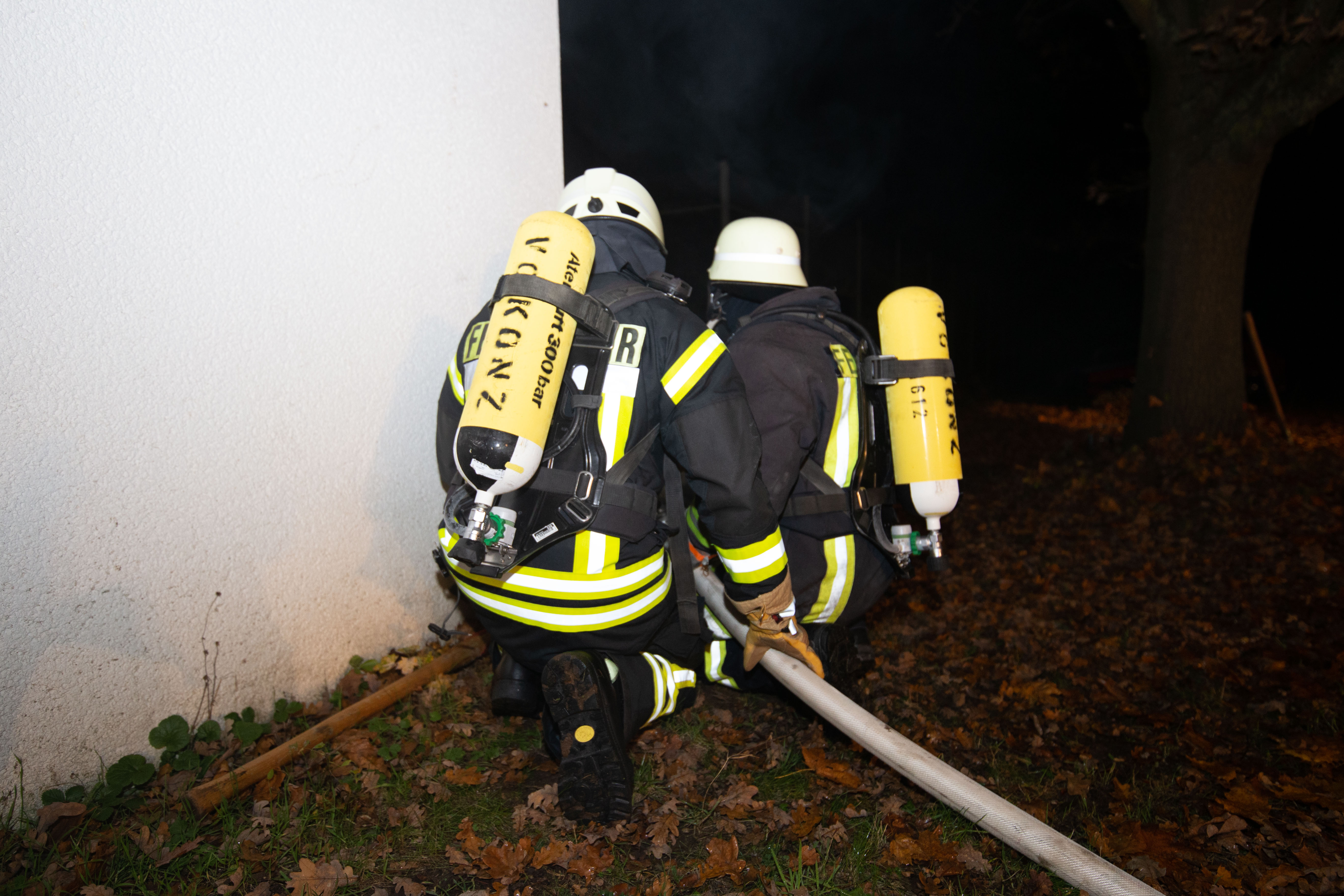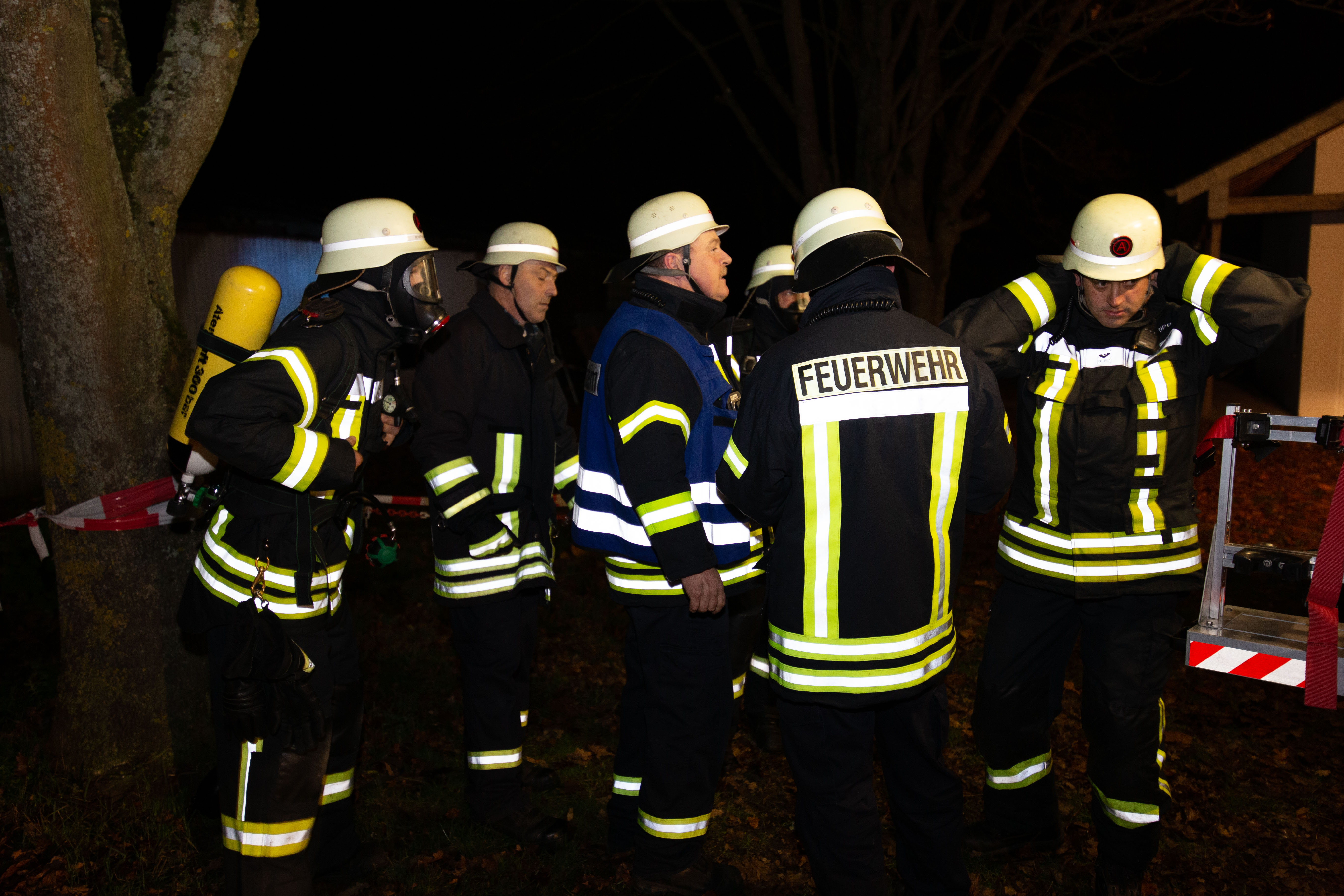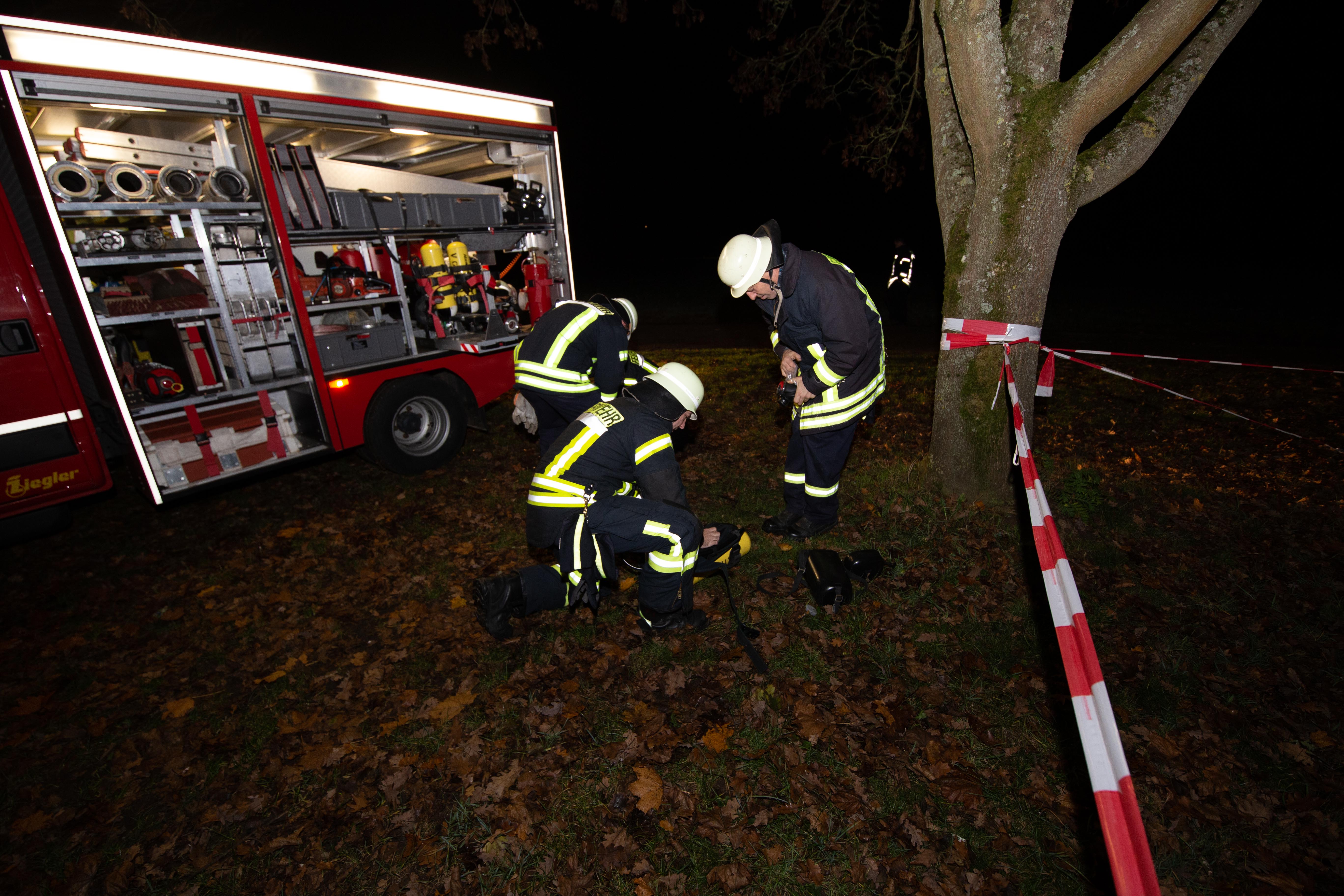 Mit Atemschutzträger wurde das Gebäude des ersten Trupps durchsucht und die Wasserversorgung mittels Pumpen mit einer Länge von etwa 50 Meter von der Saar aus aufgebaut. Zudem war es wegen der Dunkelheit und des außerorts gelegenen Sportplatzes erforderlich, entsprechende Lichtmasten zu installieren und aktivieren.