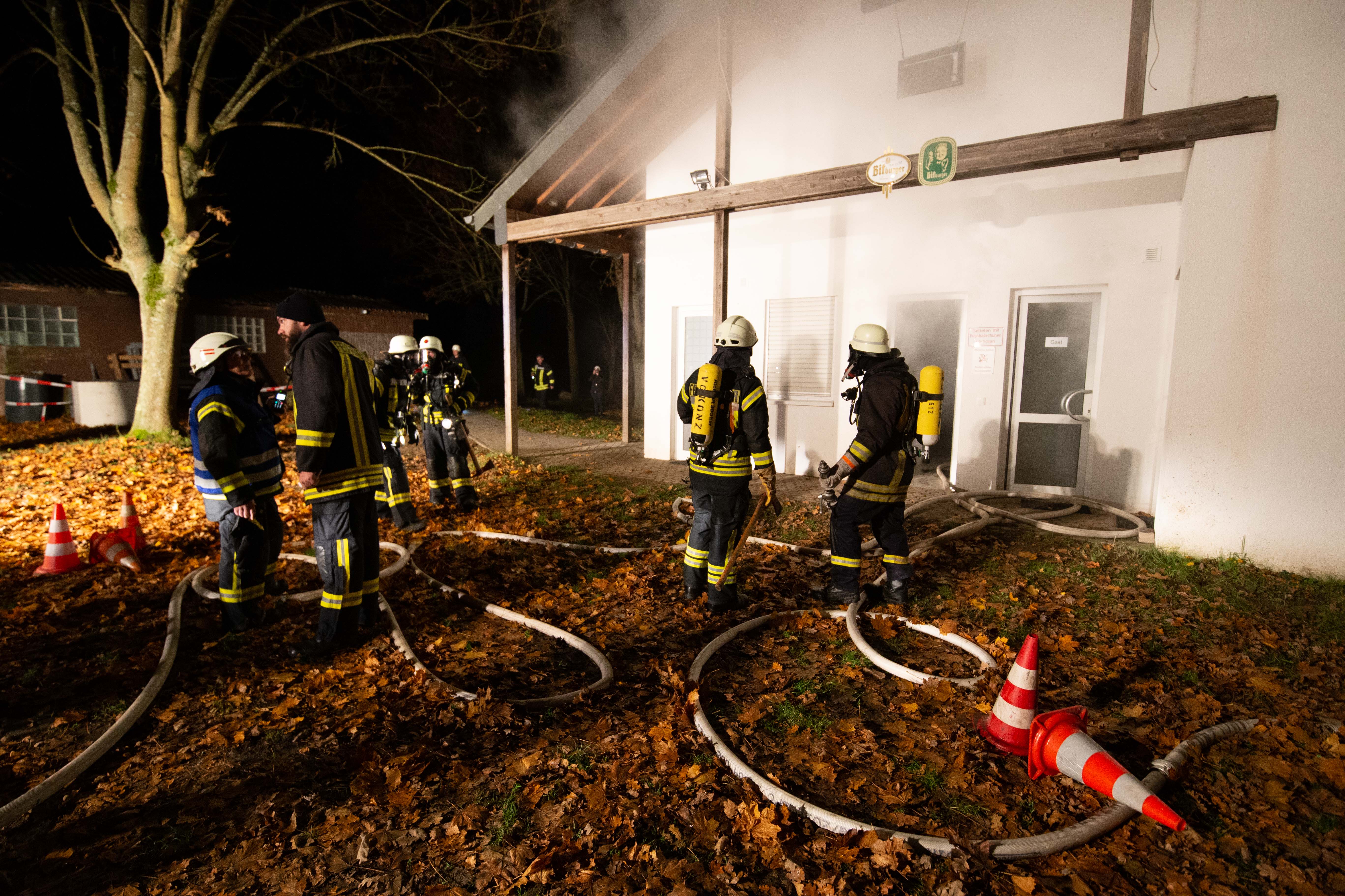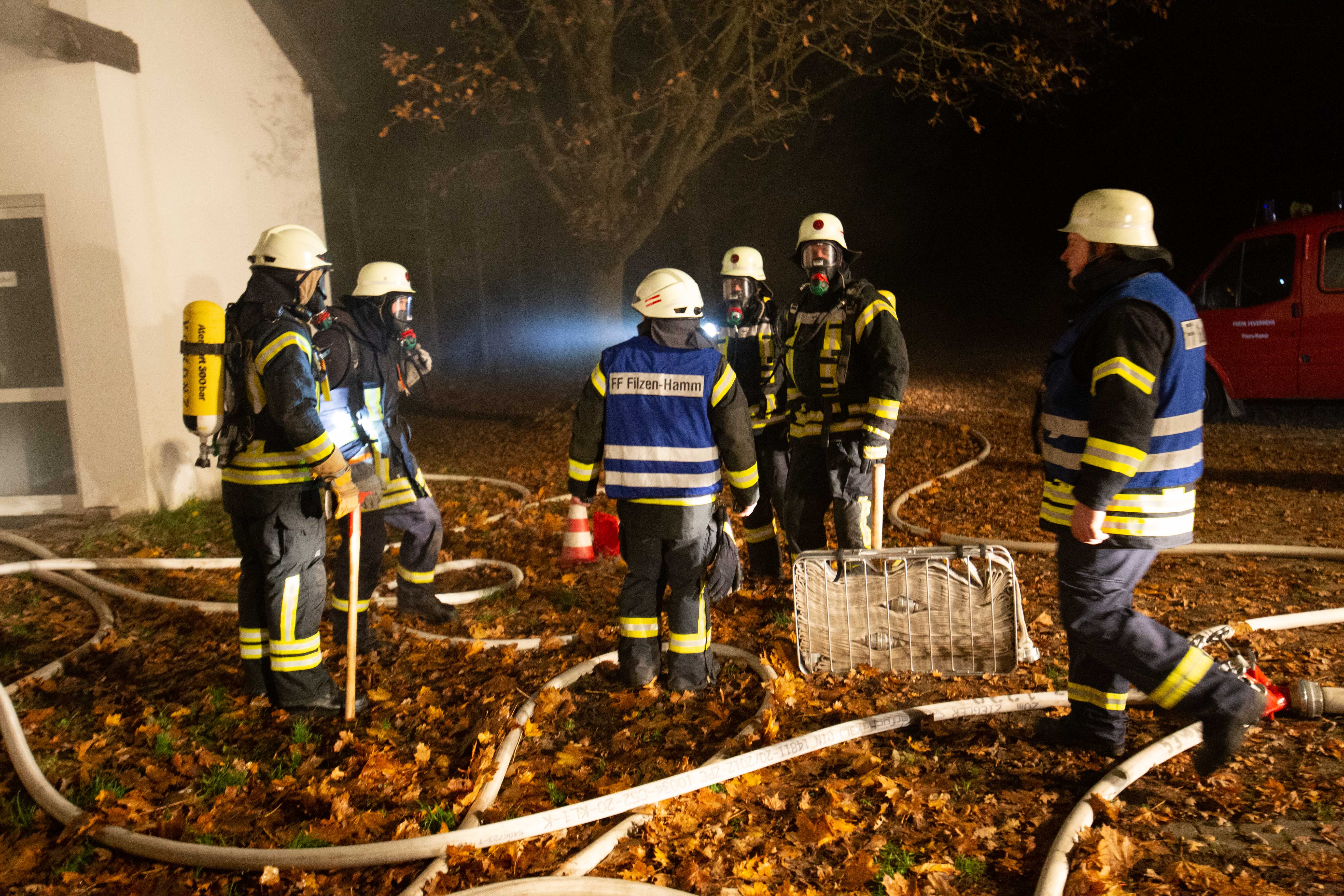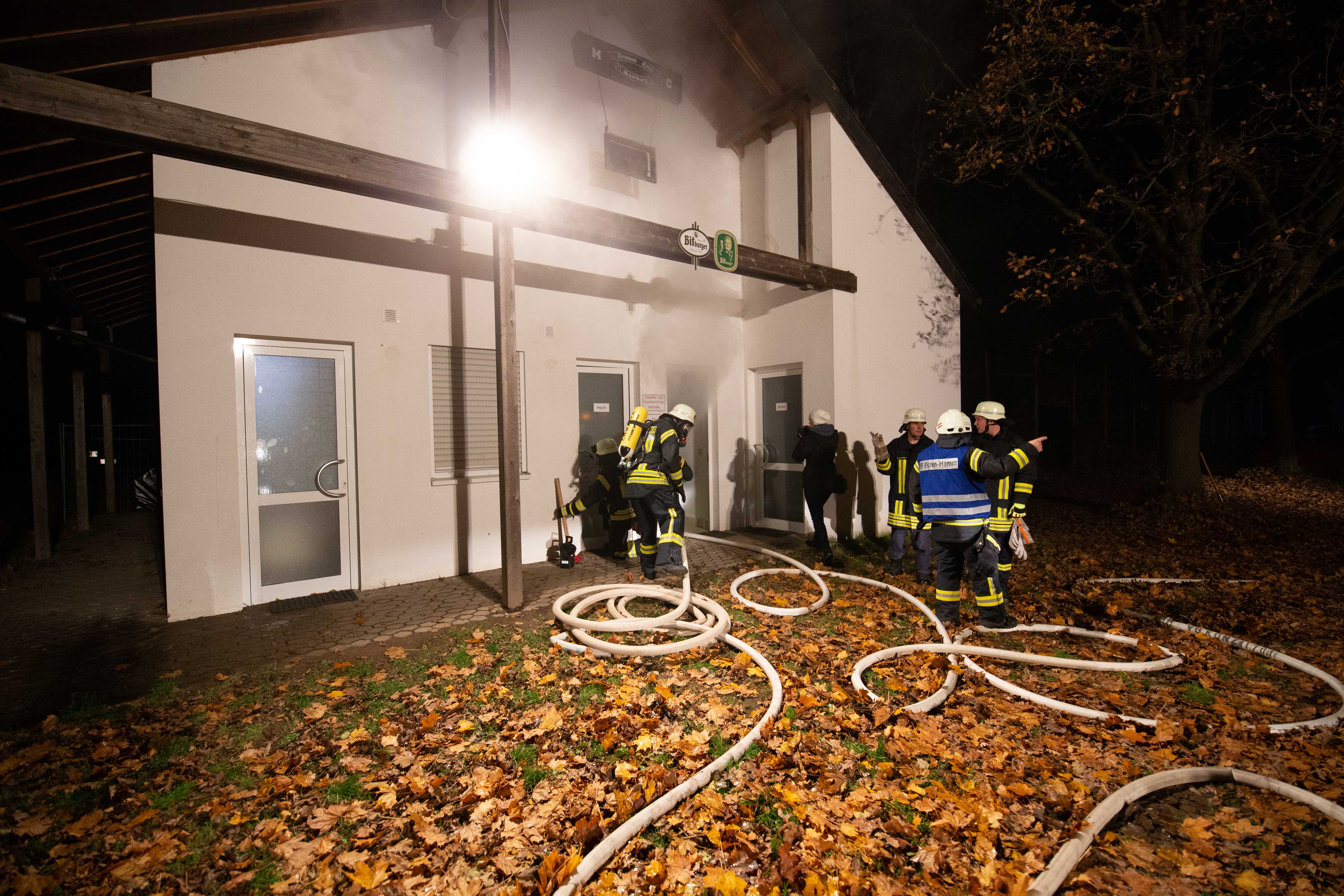 Es wurde ein Feuer im Sporthaus am Sportplatz in Filzen-Hamm gemeldet. Mehrere Personen wurden vermisst.