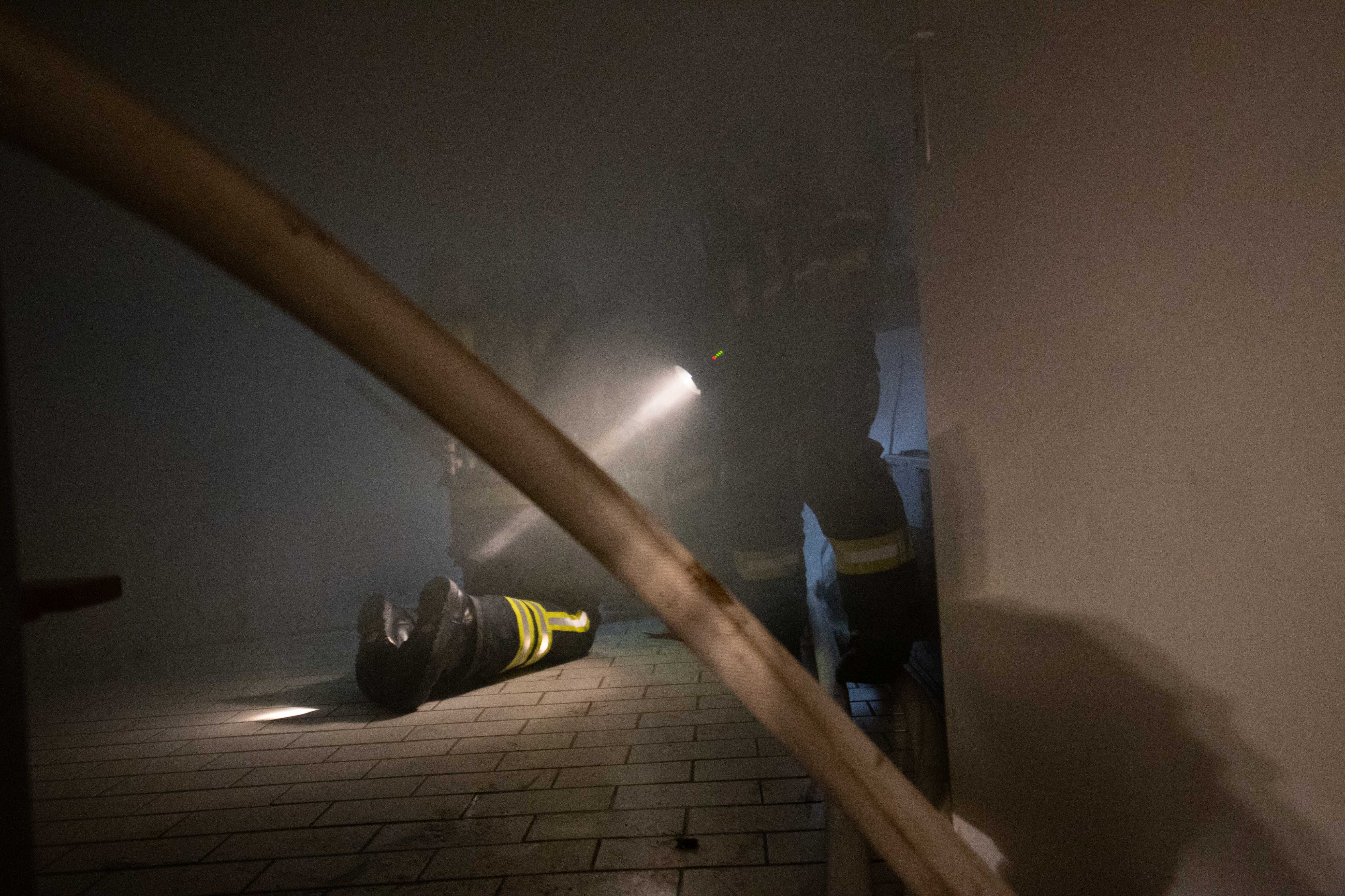 Im Übungsszenario musste auch ein Kamerad mit Atemschutzausrüstung notfallmäßig gerettet werden.