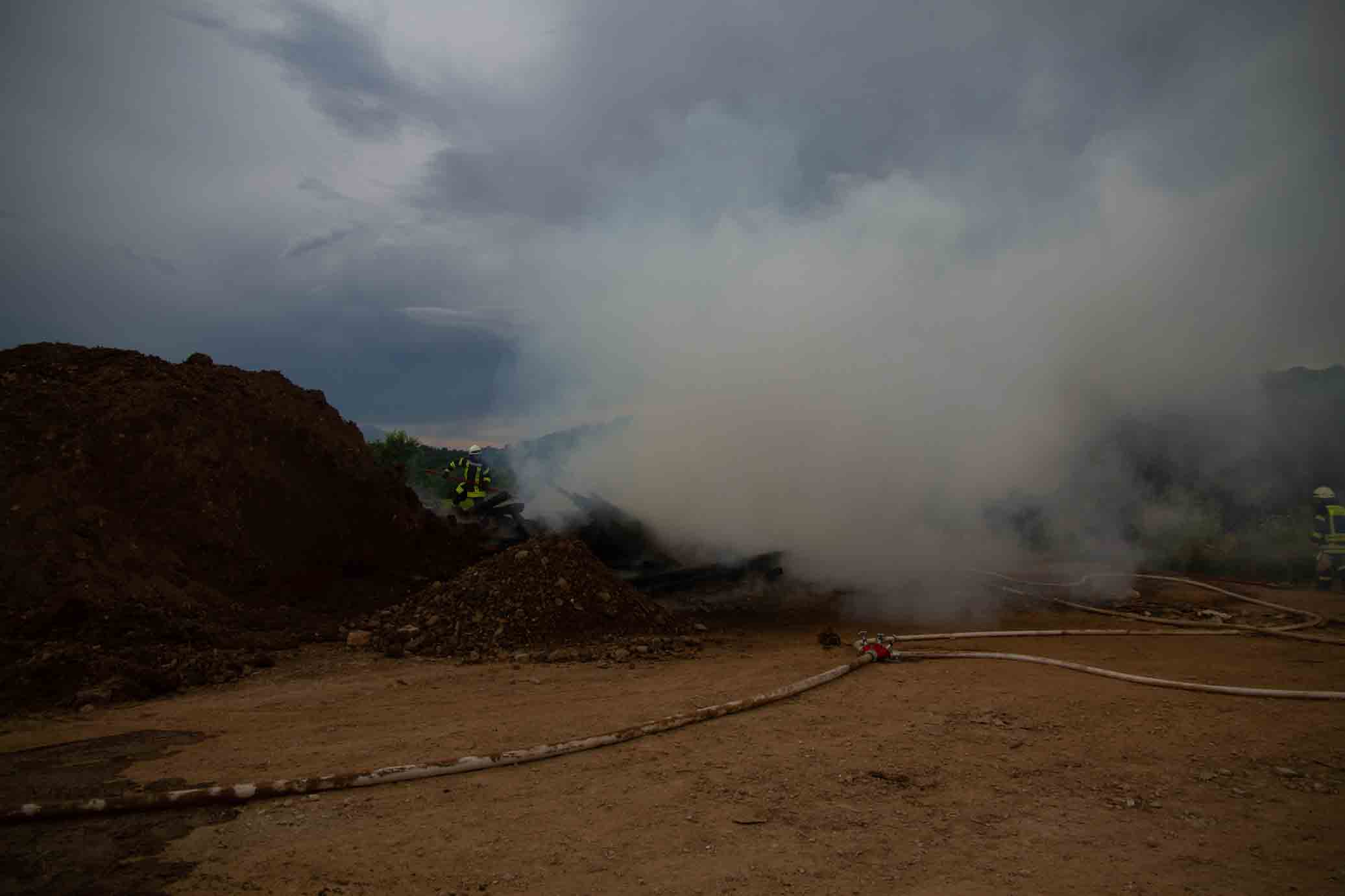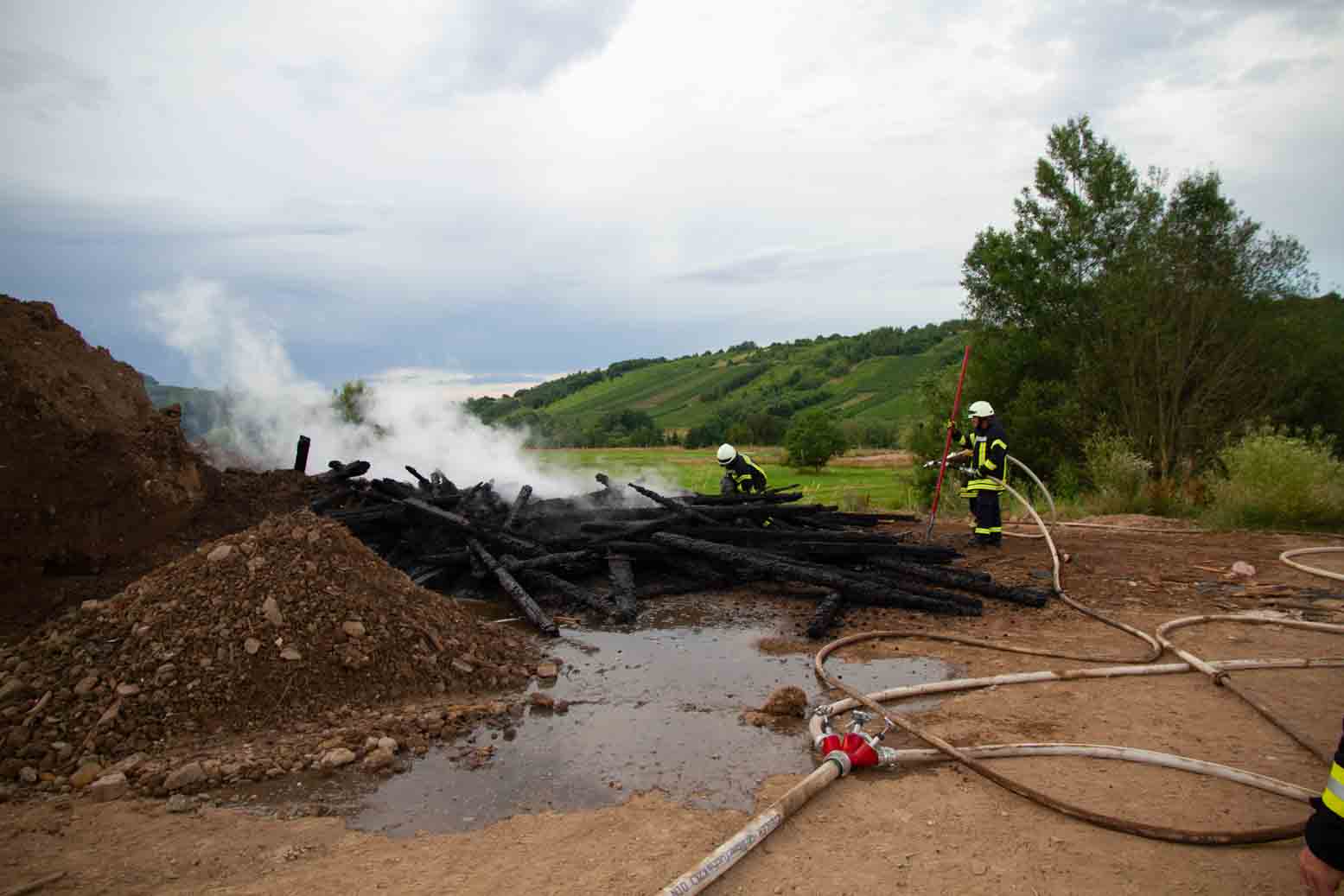 Brand eines Bauholzstapel löste in Saarburg Großalarm aus.