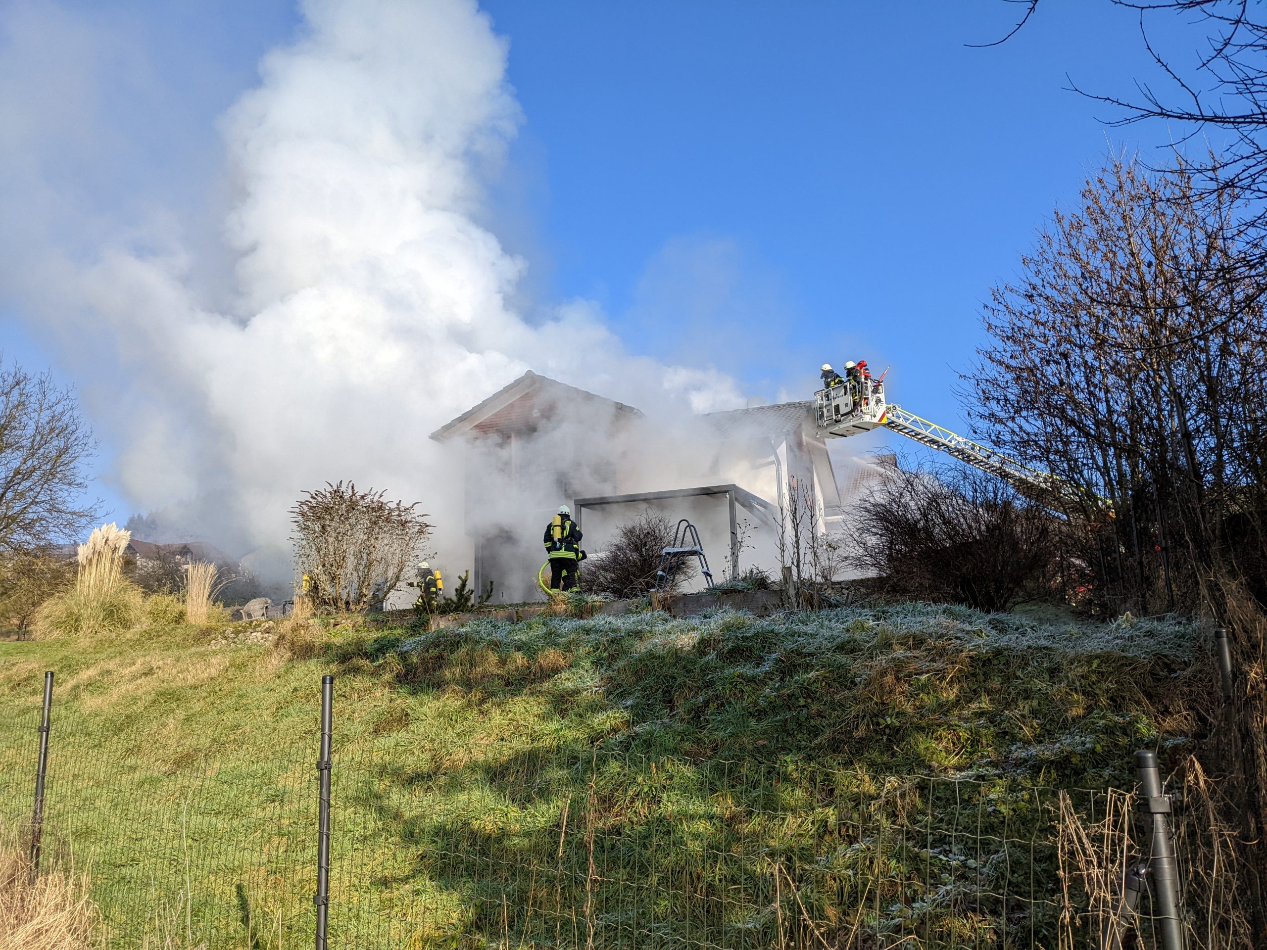 Lampaden. Am Dienstagvormittag kam es gegen 11.15 Uhr zu einem Brand in einem Einfamilienhaus in Lampaden. Die einzige Bewohnerin des Hauses war zum Brand Zeitpunkt nicht Haus.