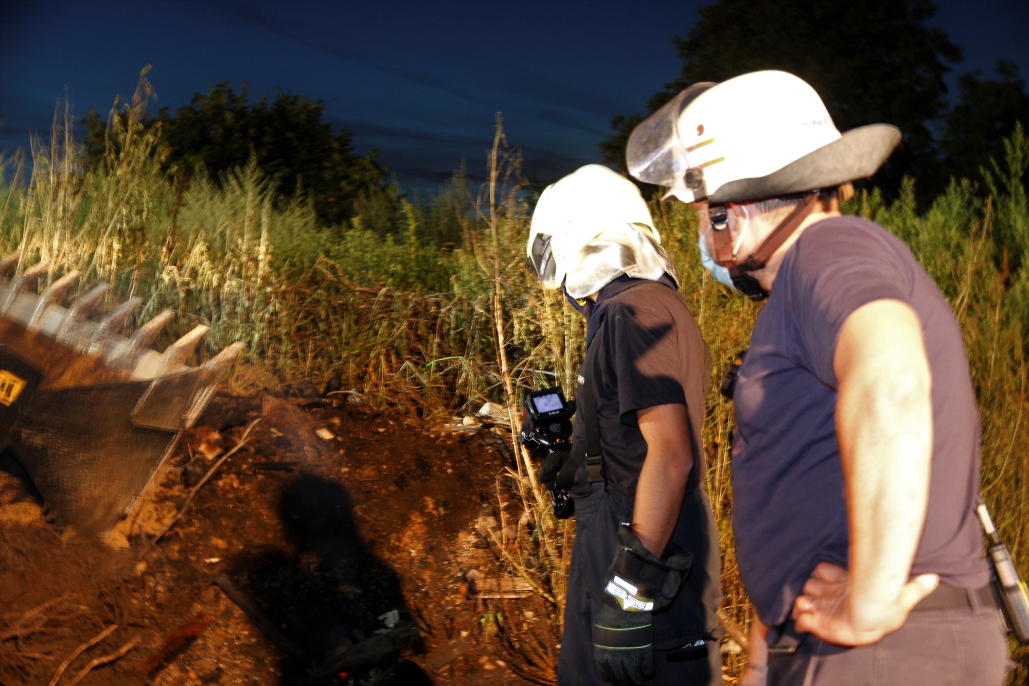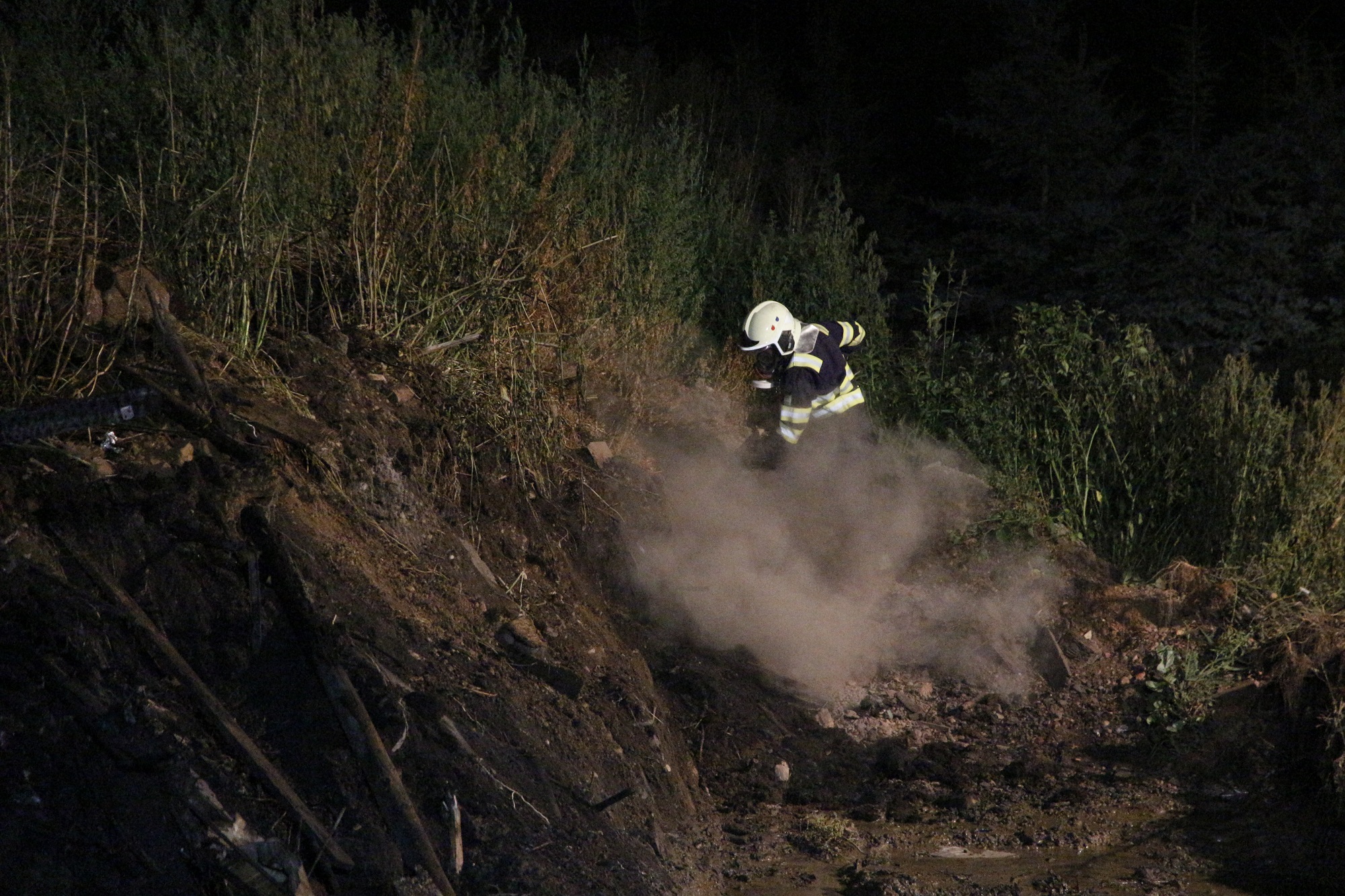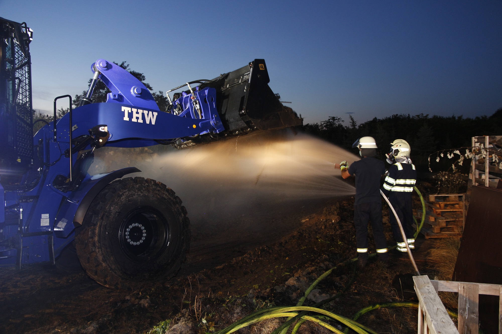 Feuerwehr und das Technische Hilfswerk mussten den Haufen mit einem Radlader auseinander ziehen und schrittweise ablöschen. Mit der Wärmebildkamera wurden die Glutnester immer wieder kontrolliert. Mit Tankfahrzeugen wurde die Löschwasserversorgung an der Einsatzstelle sichergestellt.