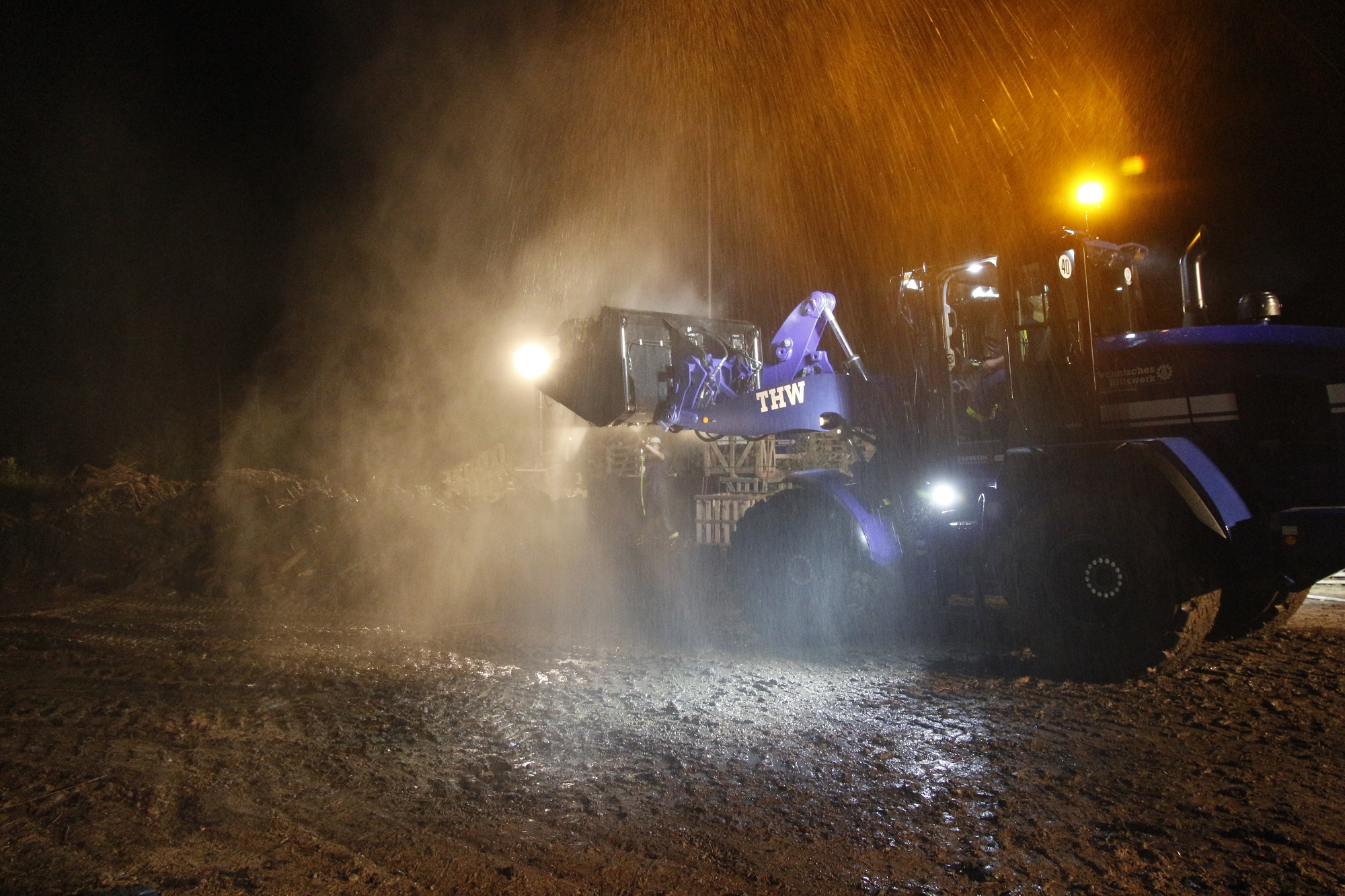 Auch funktioniert hat die überregionale Hilfe bei Schadenslagen, so wurde das THW OV Saarburg am Abend zur Unterstützung mit dem Radlader und dem Wassertank sowie mit dem Gerätekraftwagen angefordert.