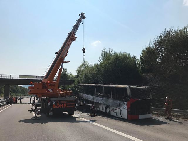 Ein Bus fing aus noch ungeklärter Ursache feuer und brannte vollständig aus. De Autobahn wurde für die Lösch- und Bergungsarbeiten voll gesperrt. Die Feuerwehren aus Merzig, Besseringen und Hilbringen löschten das brennende Fahrzeug.
