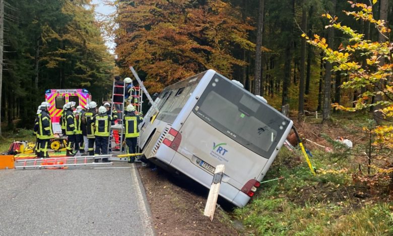 Da sich die Tür des Fahrzeugs wegen der starken Schräglage zunächst nicht öffnen ließ, konnten die Schülerinnen und Schüler den Bus nicht eigenständig verlassen. Die verständigte Feuerwehr holte die Kinder daher über ein Seitenfenster aus dem Fahrzeug.