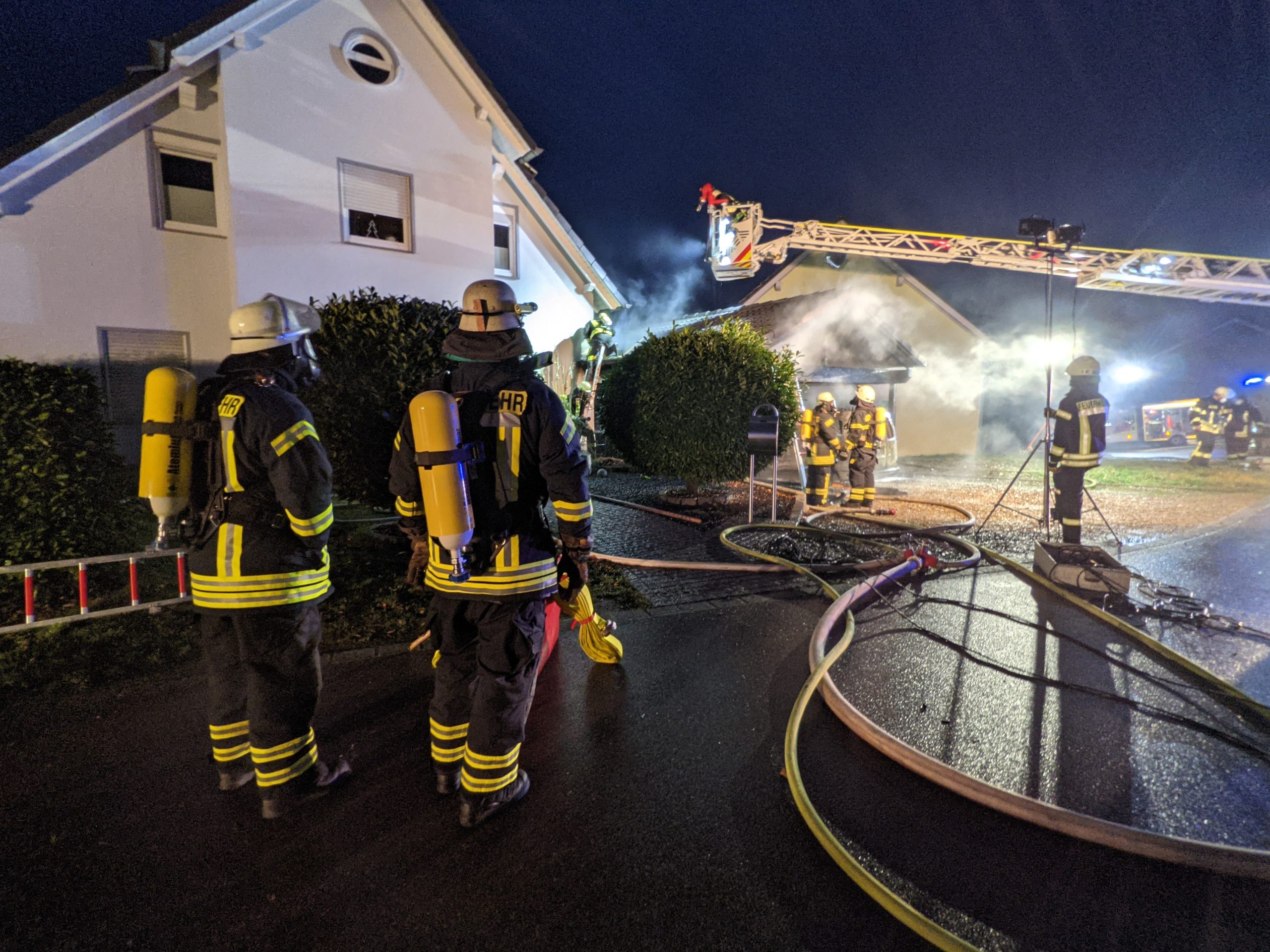 Durch das schnelle Eingreifen konnte die Feuerwehr ein übergreifen, der Flammen auf das Wohnhaus verhindern. Dennoch wurden die Löscharbeiten durch starken Wind erschwert.