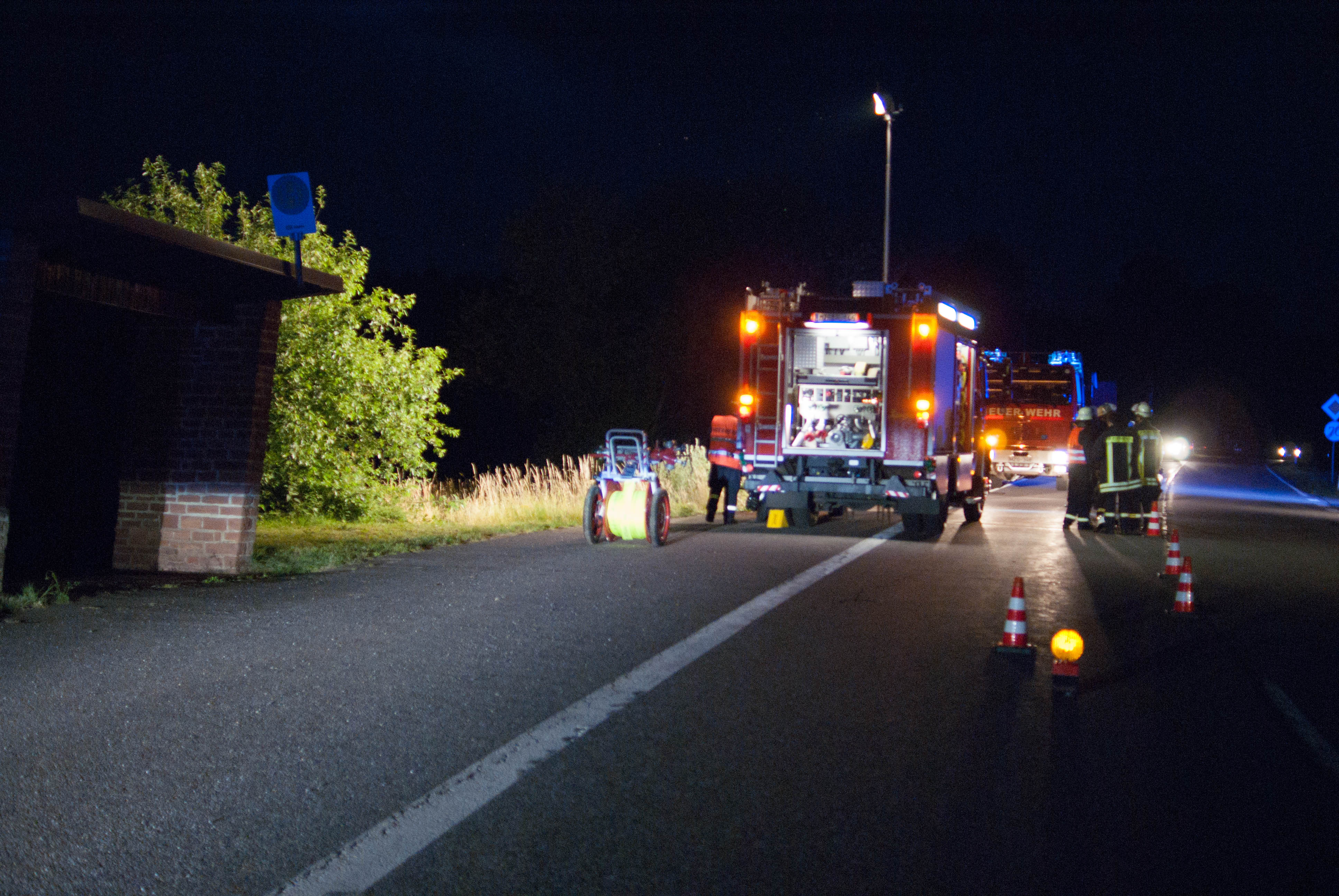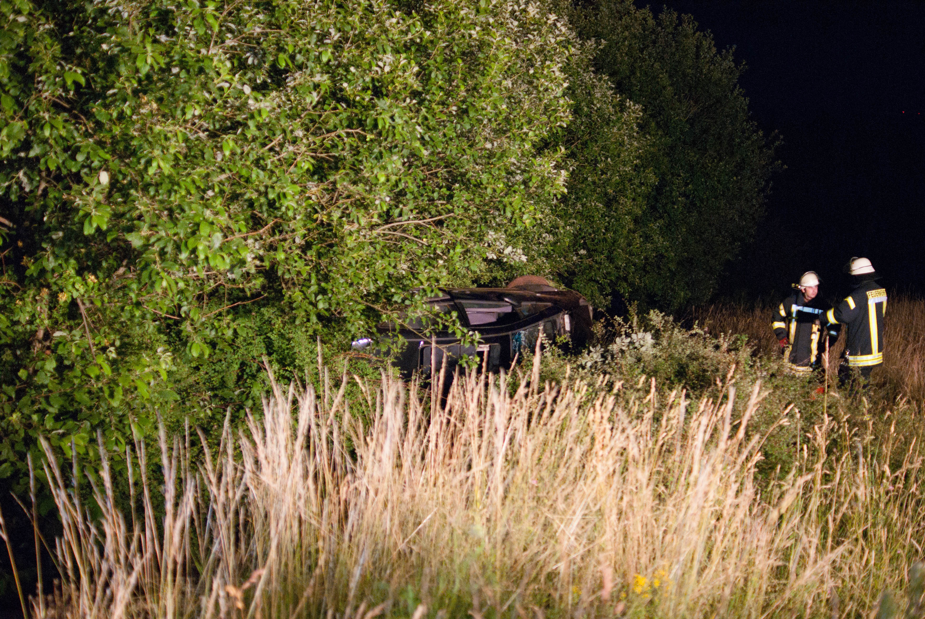 Gegen 21.30 Uhr heute befuhr ein Mercedes der A-Klasse die B 268 von Britten in Richtung Losheim am See. In einer langezogenen Kurze kurz vor der Abfahrt Brotdorf kam das Fahrzeug mit zwei weiblichen besetzten Personen auf den Randstreifen, durchfuhr eine nicht gemähte Wiese, dann über ein Kornfeld und blieb an einer Hecke total beschädigt auf der Seite liegen. Zum Glück wurden die beiden Personen nur leicht verletzt und vom Rettungsdienst in eine nahegelegendes Krankenhaus gebracht. Das Fahrzeug war Totalschaden und musste abgeschleppt werden. Im Einsatz waren die Feuerwehren aus Losheim am See und Britten mit circa vierzig Mann. Die Unfallursache ist noch nicht geklärt. Die Polizeiinspektion Wadern war für die Unfallaufnahme vor Ort, sowie der Rettungswagen aus Mettlach.
