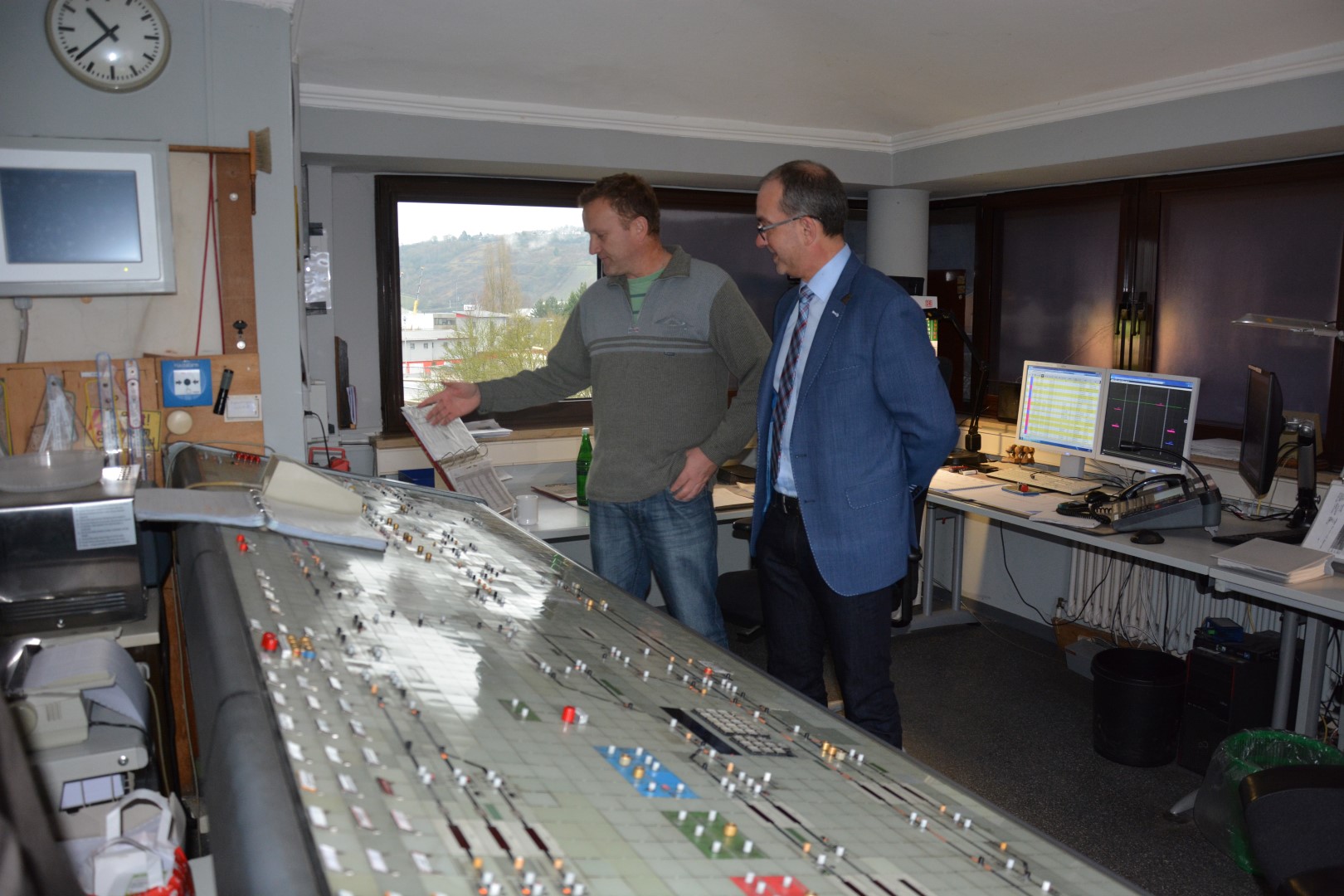 Der Start erfolgte bei der Polizeiwache Konz, wo bei einem gemeinsamen Frühstück auch ein Jahresrückblick auf vergangene Ereignisse geworfen wurde und die sehr gute und kooperative Zusammenarbeit von allen Beteiligten herausgestellt wurde. Dann ging es nebenan zur DRK Rettungswache, wo einige der Mitarbeiter anwesend waren, die am Heiligabend auch nicht unterm Weihnachtsbaum sitzen werden, sondern rund um die Uhr im Schichtdienst arbeiten werden. Nach 70 Stufen gelangte man schließlich an den Arbeitsplatz von Mario Tersch im Stellwerk in Konz-Mitte der Bahn. Er erklärte sehr anschaulich seine und die Arbeit seiner Kollegen im Stellwerk, die an 365 Tagen im Jahr rund um die Uhr verrichtet wird.