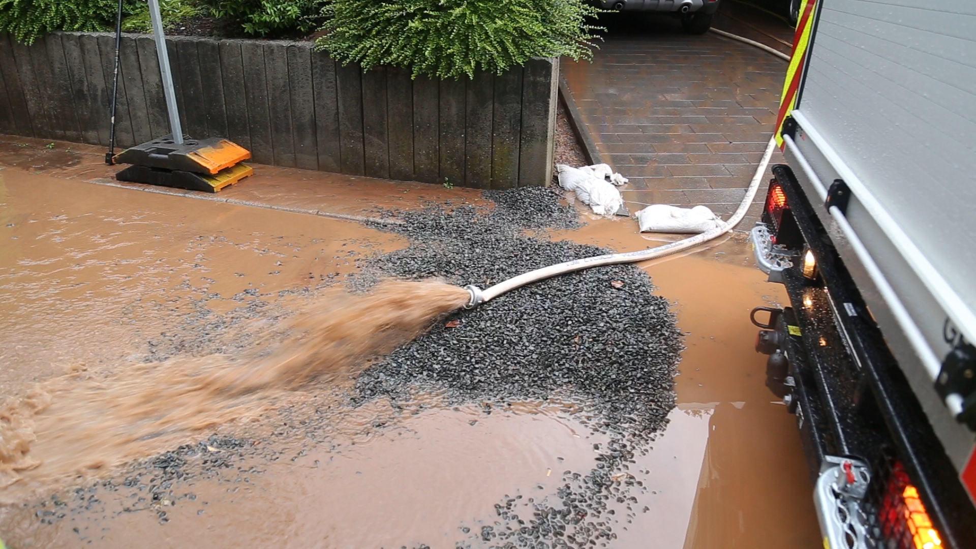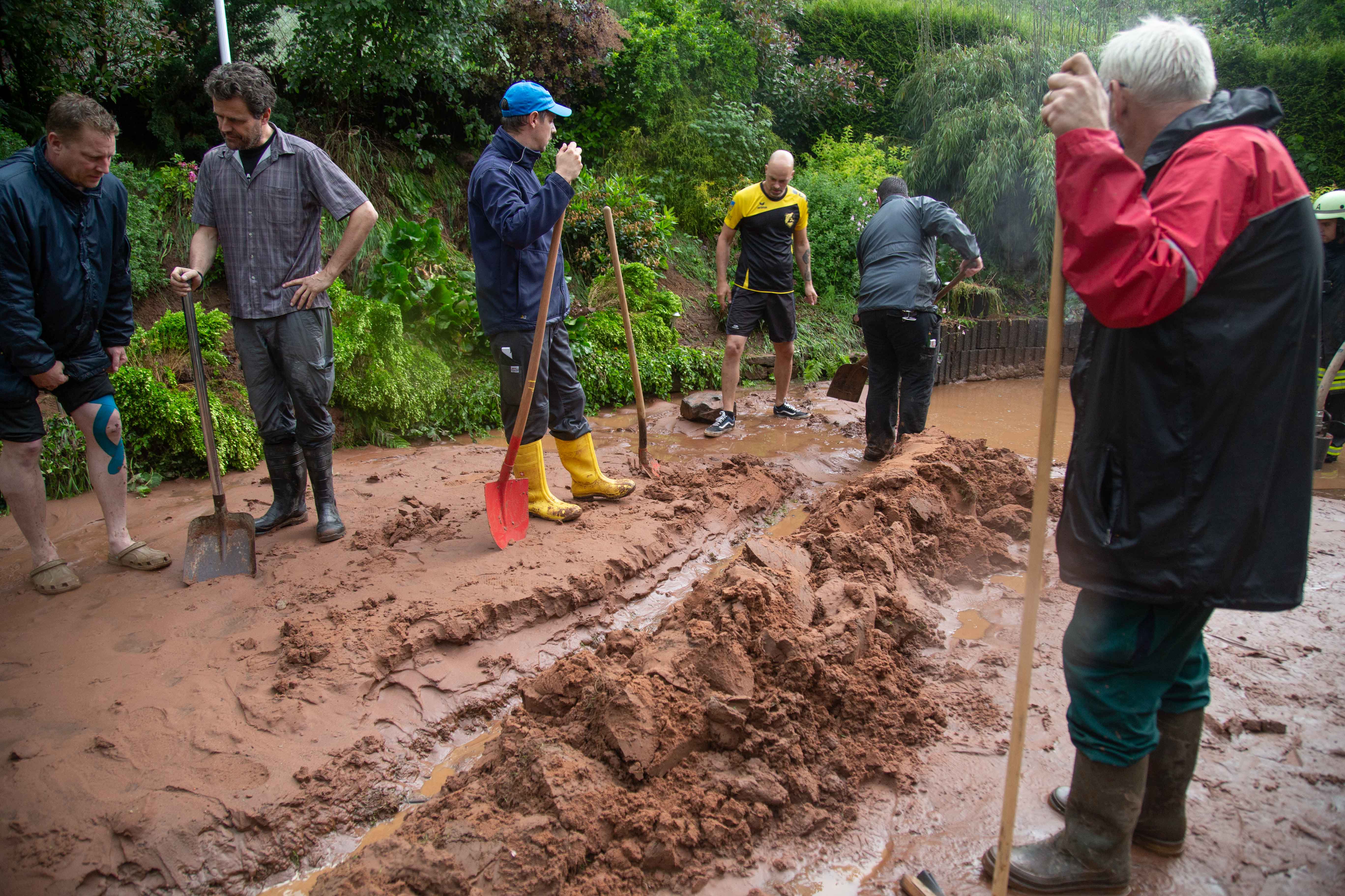 Auch bei einigen Nachbarn liefen die Keller voll Schlamm. Die Einsatzkräfte konzentrierten sich zunächst auf die am schwersten betroffenen Einsatzstellen.