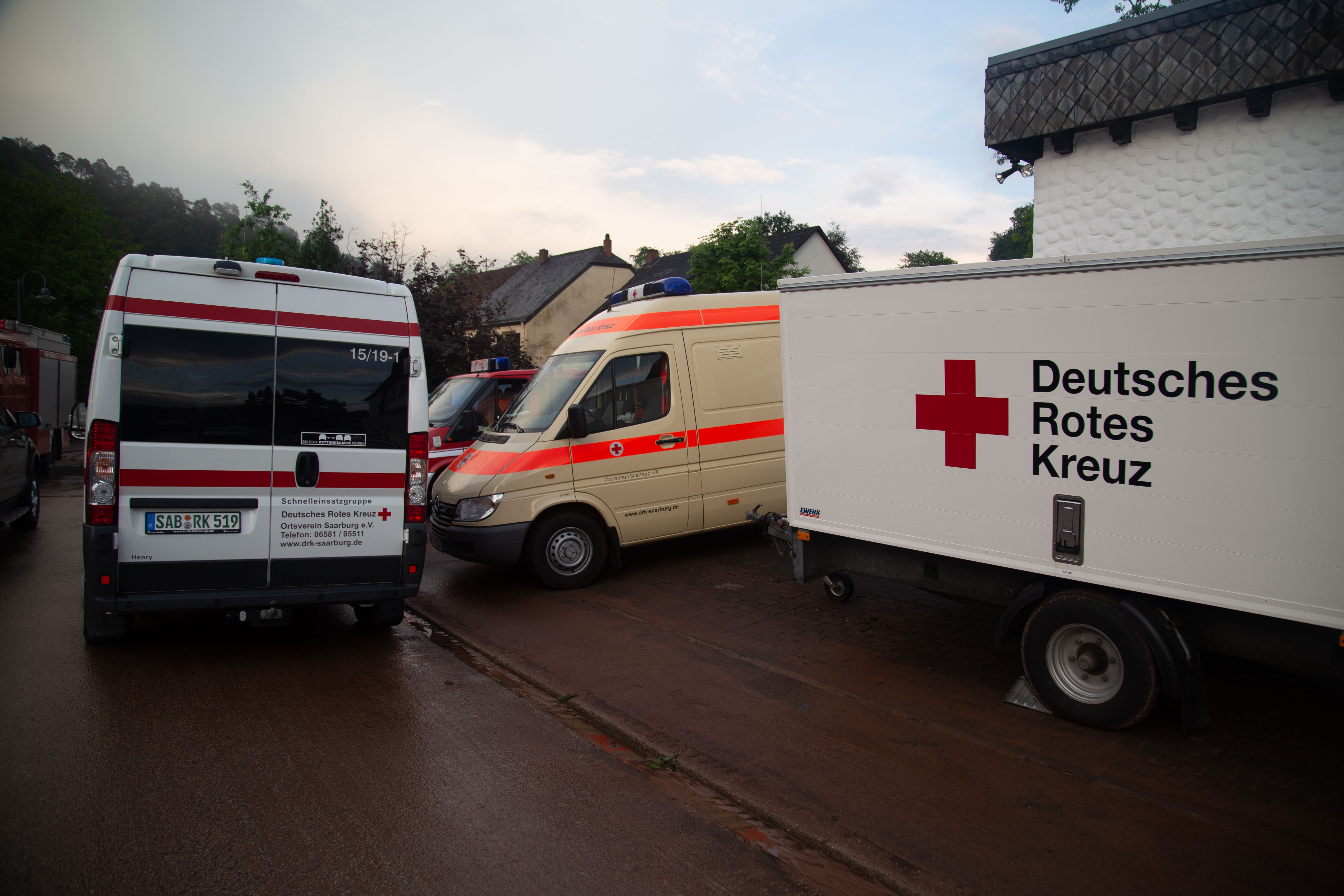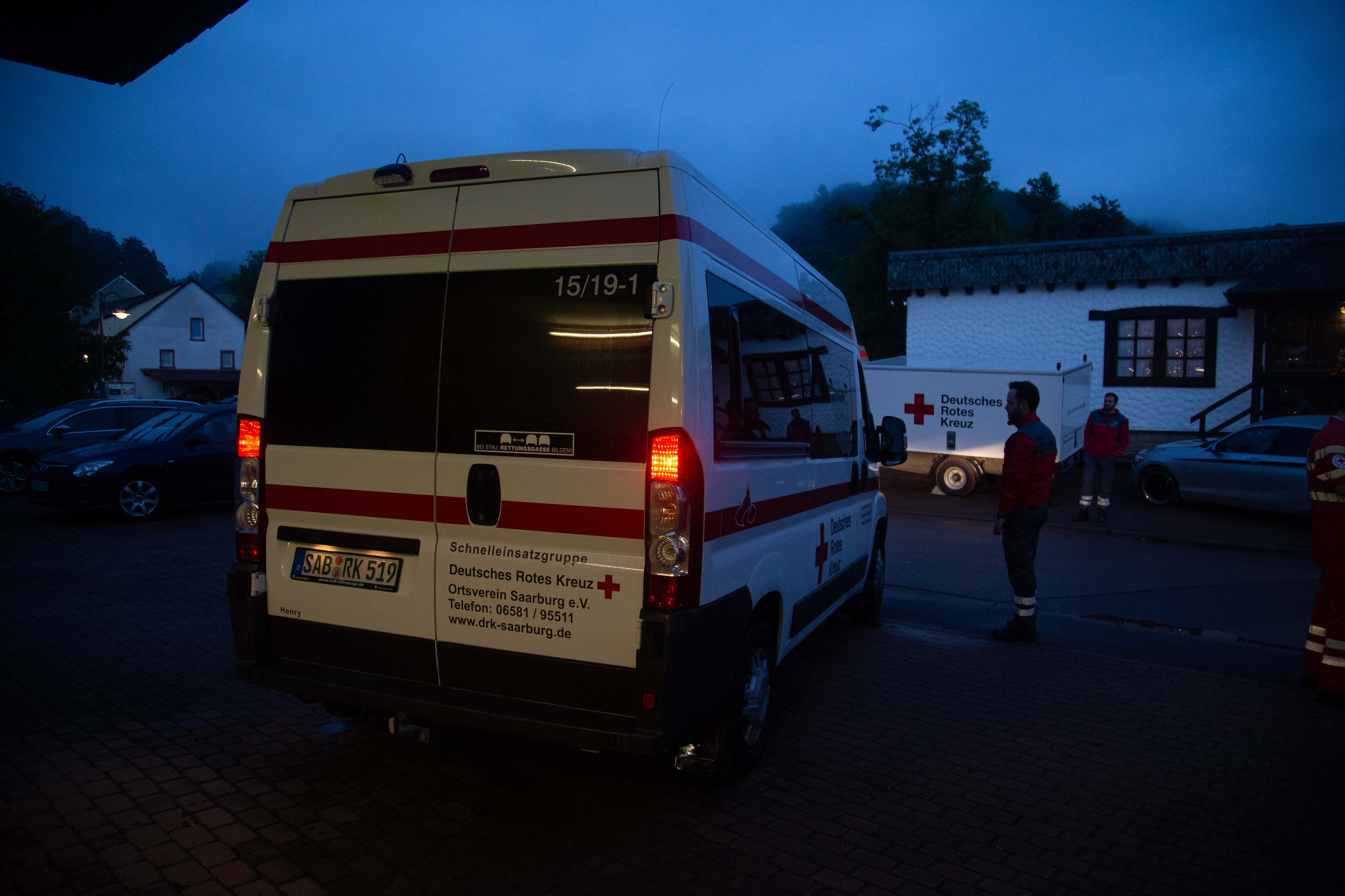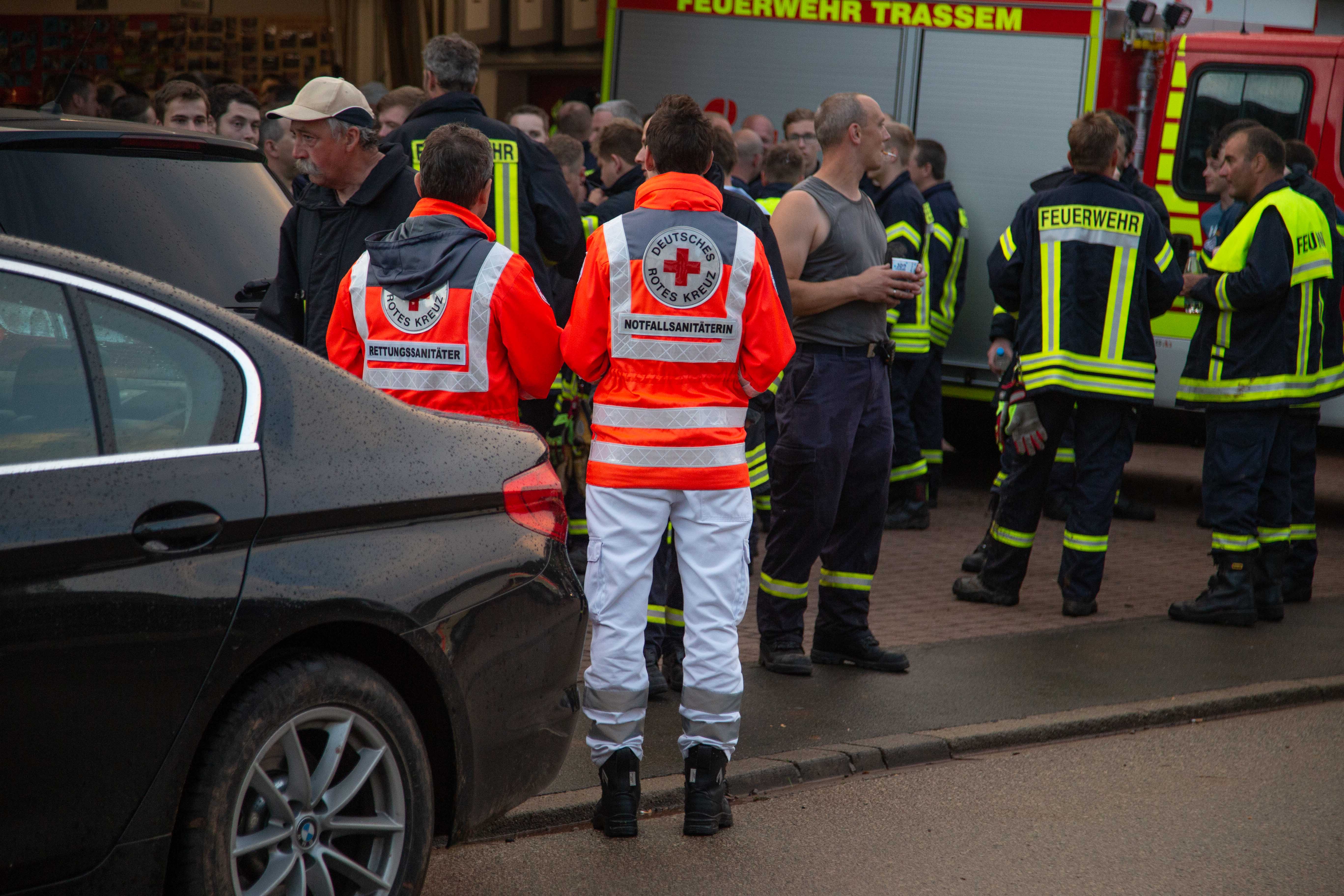 Nach und nach trafen die Einsatzkräfte am Gerätehaus der Freiwilligen Feuerwehr Trassem ein. Hier gab es Stärkung und Getränke, die seitens der Kräfte des DRK Ortsverein Saarburg organisiert wurde.
