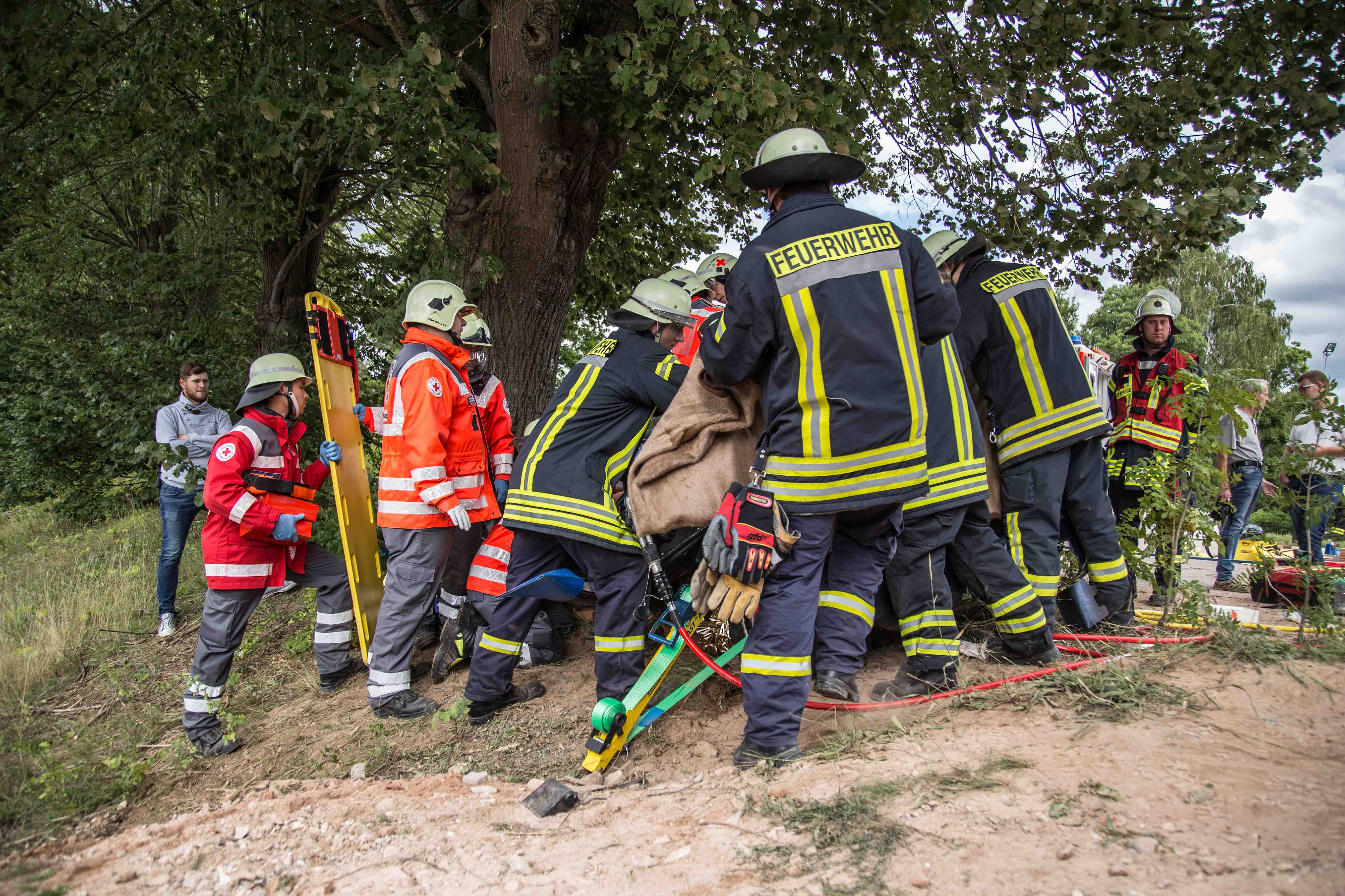 Saarburg. Am Samstagmittag übten die ehrenamtlichen Helfer des DRK Ortsverein Saarburg e.V. zusammen mit den Kollegen der Freiwilligen Feuerwehr Beurig den Ernstfall. Als Aufgabe galt es, zu den Helfern unbekannten Zeiten, zwei Einsatzszenarien realitätsnah abzuarbeiten.