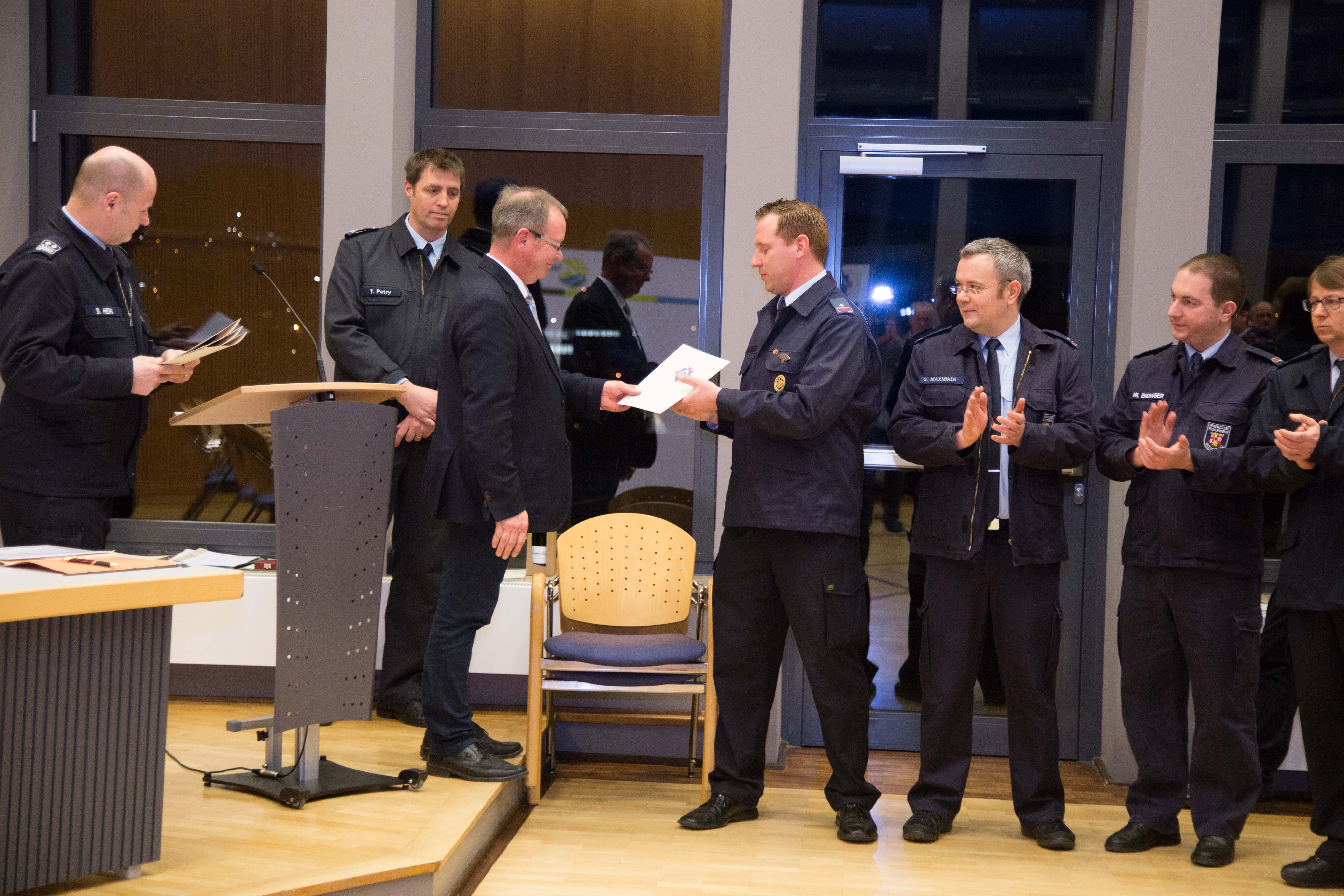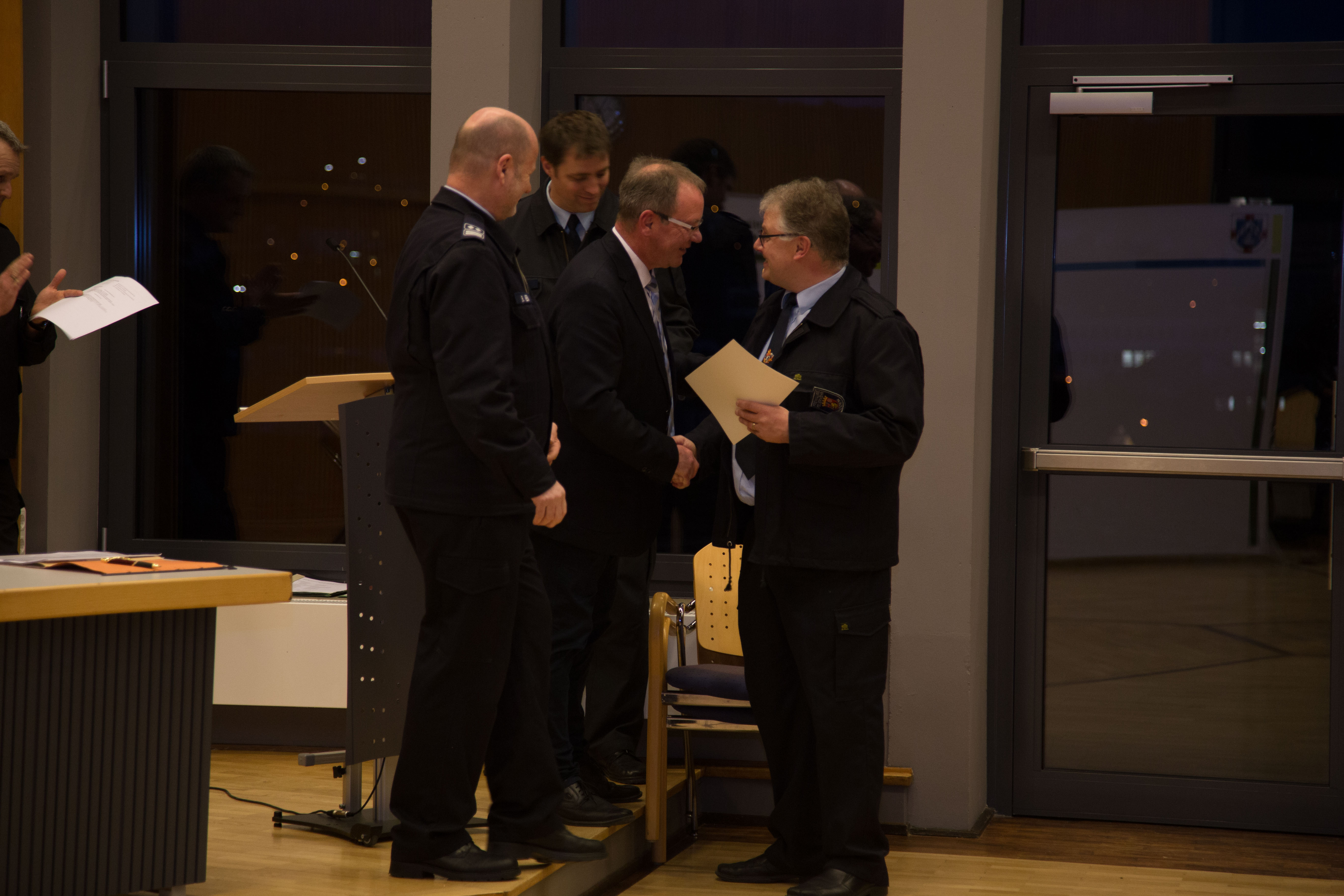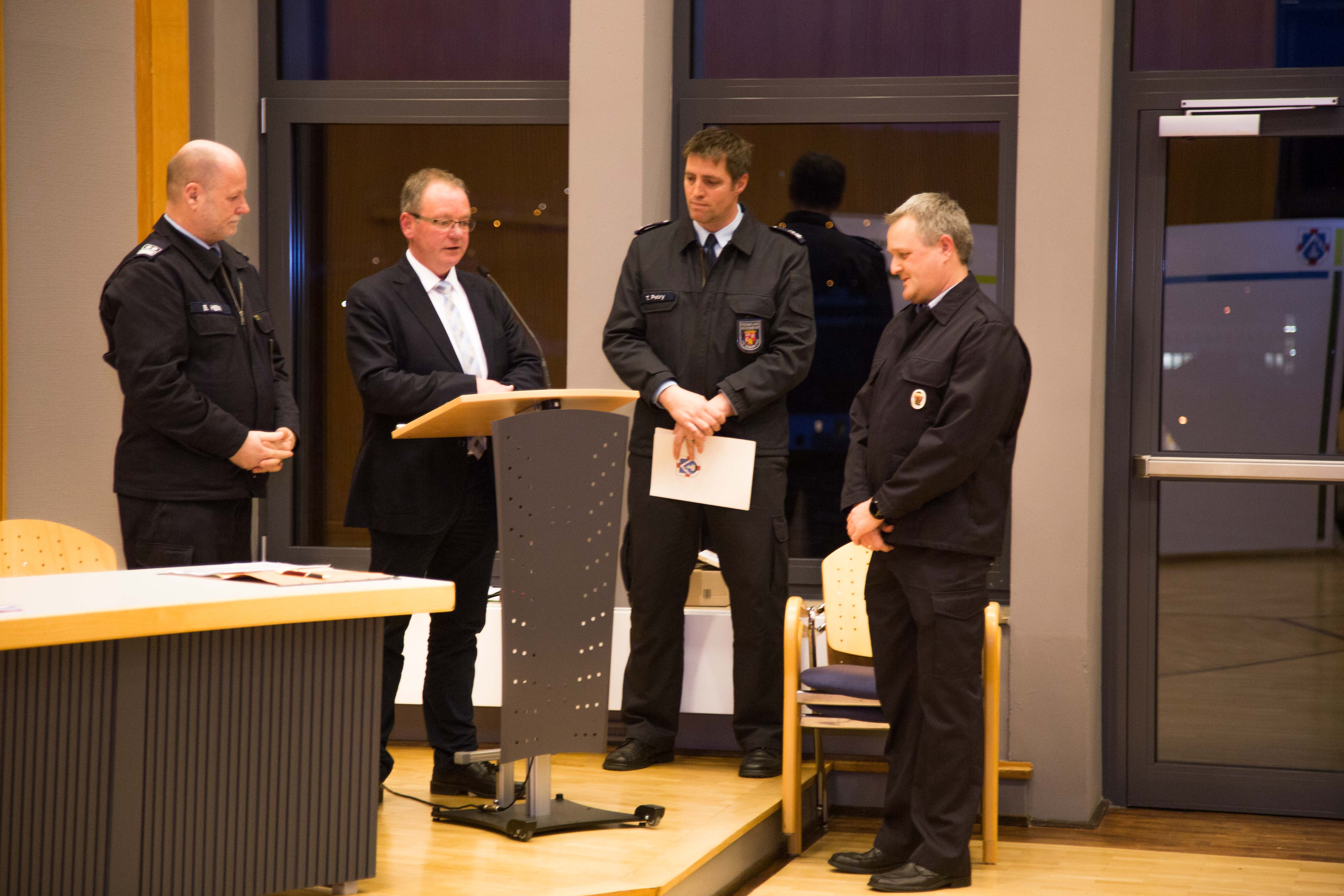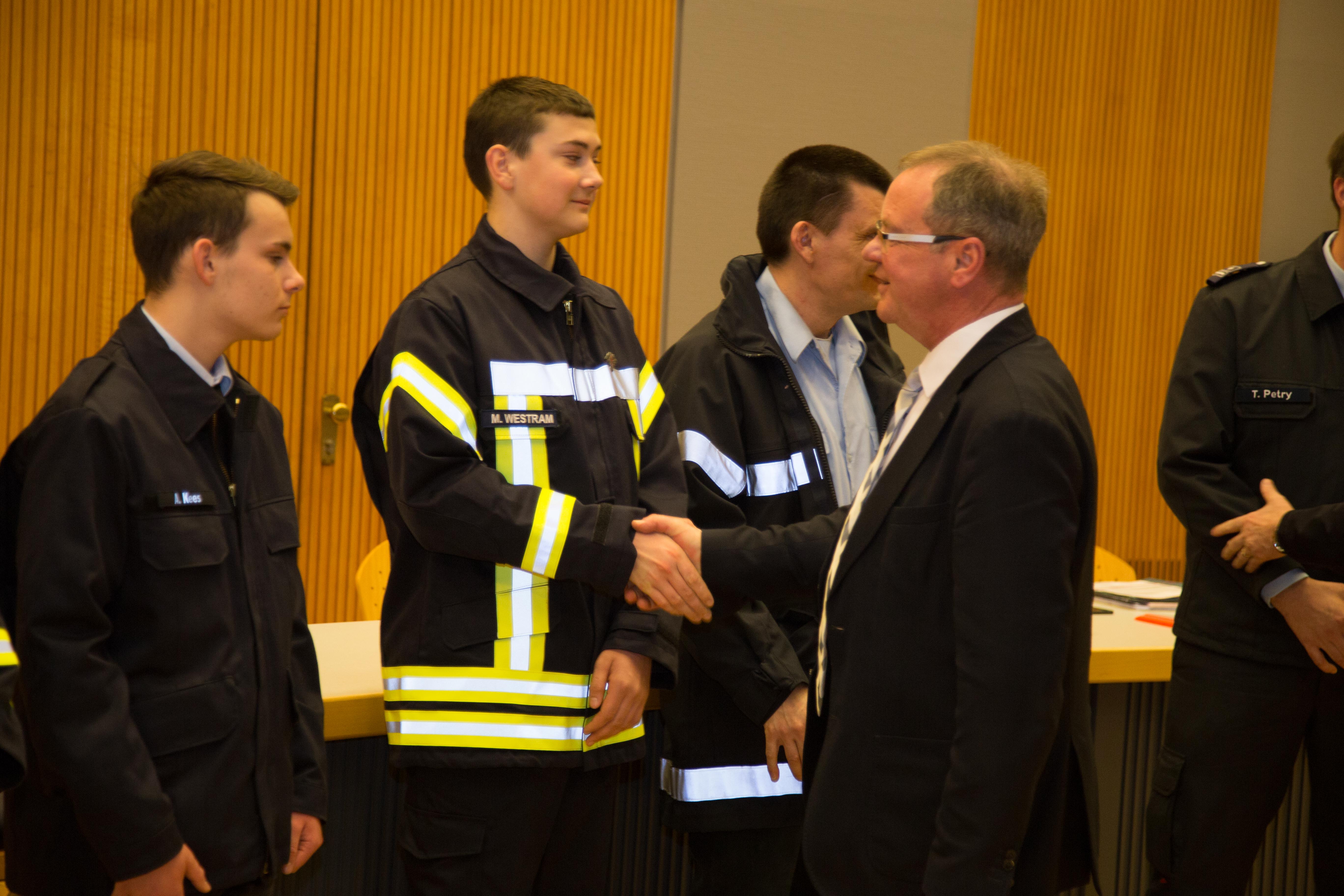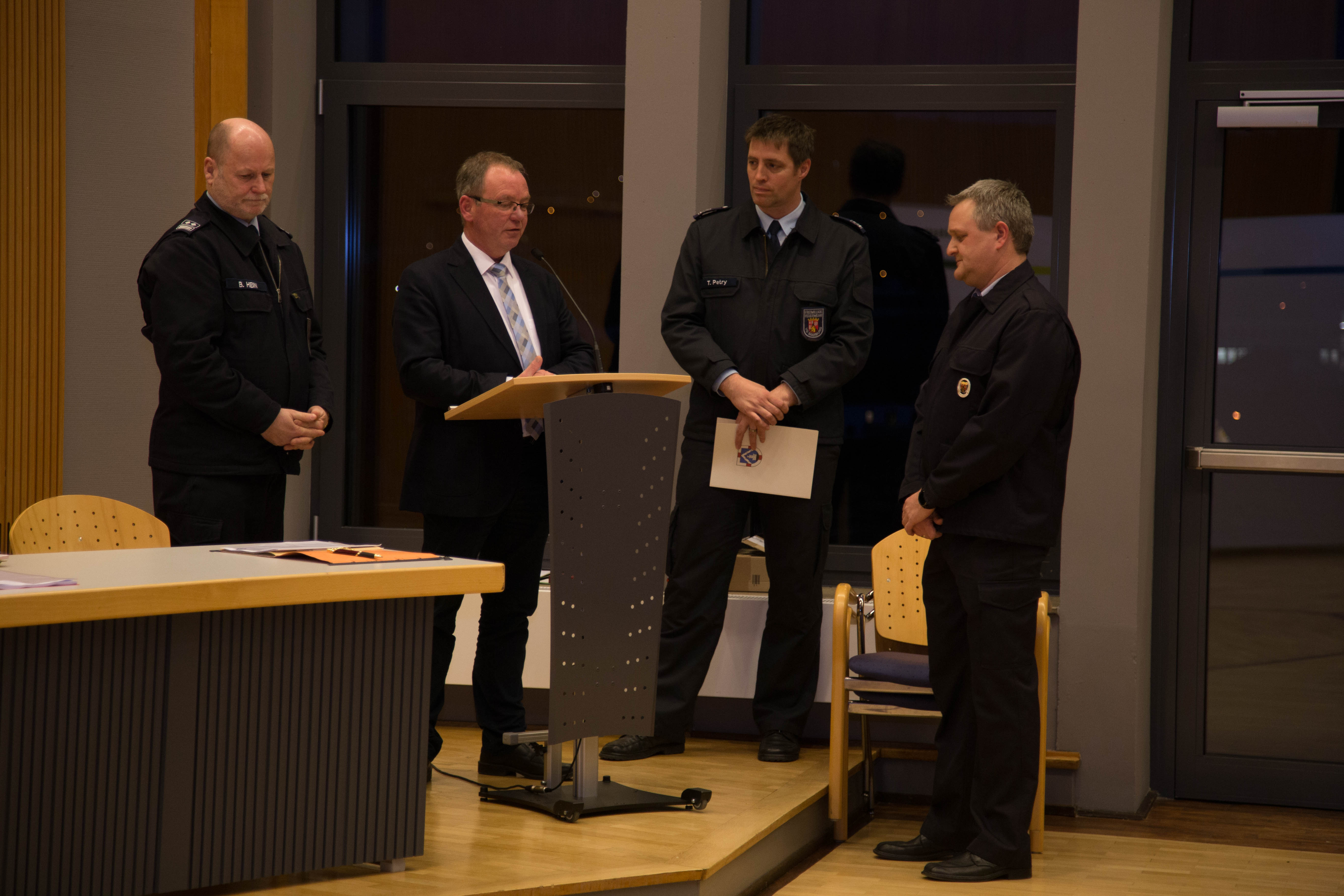 Bürgermeister Jürgen Dixius begrüßte zunächst die zahlreich erschienenen Kameraden, den Wehrleiter der VG Saarburg Bernhard Hein, seinen Stellvertreter Thorsten Petry und anwesende Orstbürgermeister. Ein Dankesgruß richtete Jürgen Dixius für eine so lange Zeit des Arrangement was die Kameraden für die Feuerwehr gebracht haben. Es folgten Verabschiedungen in die aktive Alterswehr, Neuverpflichtungen, Leitungsfunktionen zu übertragen und Ernennungen. Ein ganz wichtiger Anteil sind die Familien, die Alterswehr, die Bambini Feuerwehr und aktive Kameradinnen und Kameraden die die Familie der Feuerwehr darstellen. Im letzten Jahr sind wir ein gutes Stück weitergekommen was die Investitionen in die Feuerwehr angeht. Wir werden auch in diesem Jahr weiter darin investieren, auch was die technische Ausrüstung, Fahrzeuge und Unterkünfte betrifft. Herzlichen Dank richtete Jürgen Dixius an die Wehrleitung, seinen Stellvertreter und Harald Faber, der für die verwaltungstechnische Abwicklung in der VG Saarburg verantwortlich ist. Durch die anstehende Fusionierung mit der VG Kell am See am 1. Januar 2019 laufen die Vorbereitungen. Die Familie der „Feuerwehr“ wird somit größer werden, sie werden aber auch vor Ort gebraucht. Alle Feuerwehren vor Ort sind uns wichtig und wir werden uns weiterhin dabei einsetzen und unterstützen; so Jürgen Dixius.
