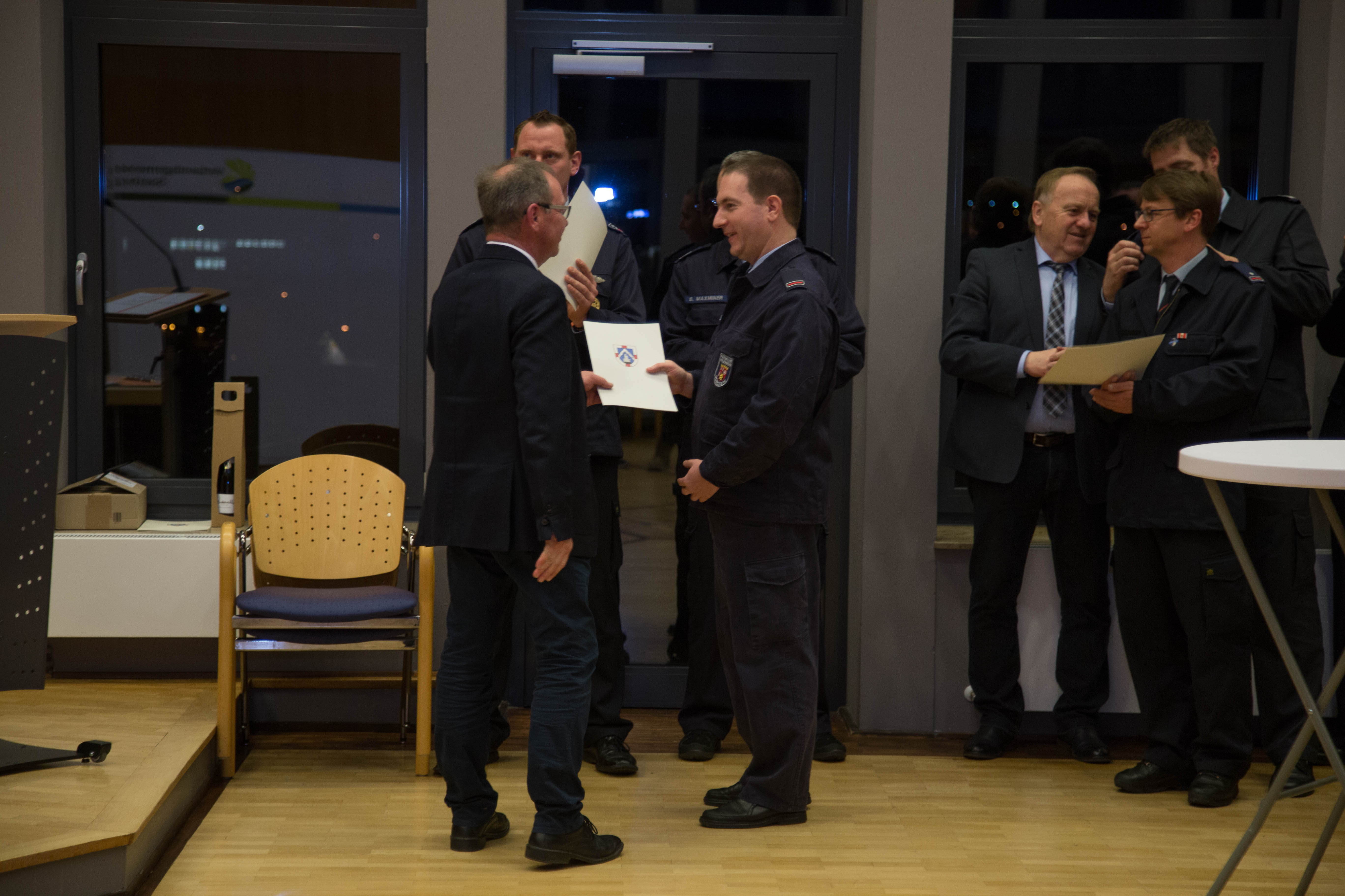 Wehrleiter Bernhard Hein kündigte zukünftig öfters derartige Veranstaltungen an, weil Kameradinnen und Kameraden im Lauf des Jahres unterschiedliche Prüfungen an der Feuerwehrschule absolviert haben und dann einmal im Jahr nur entsprechend geehrt oder befördert werden.