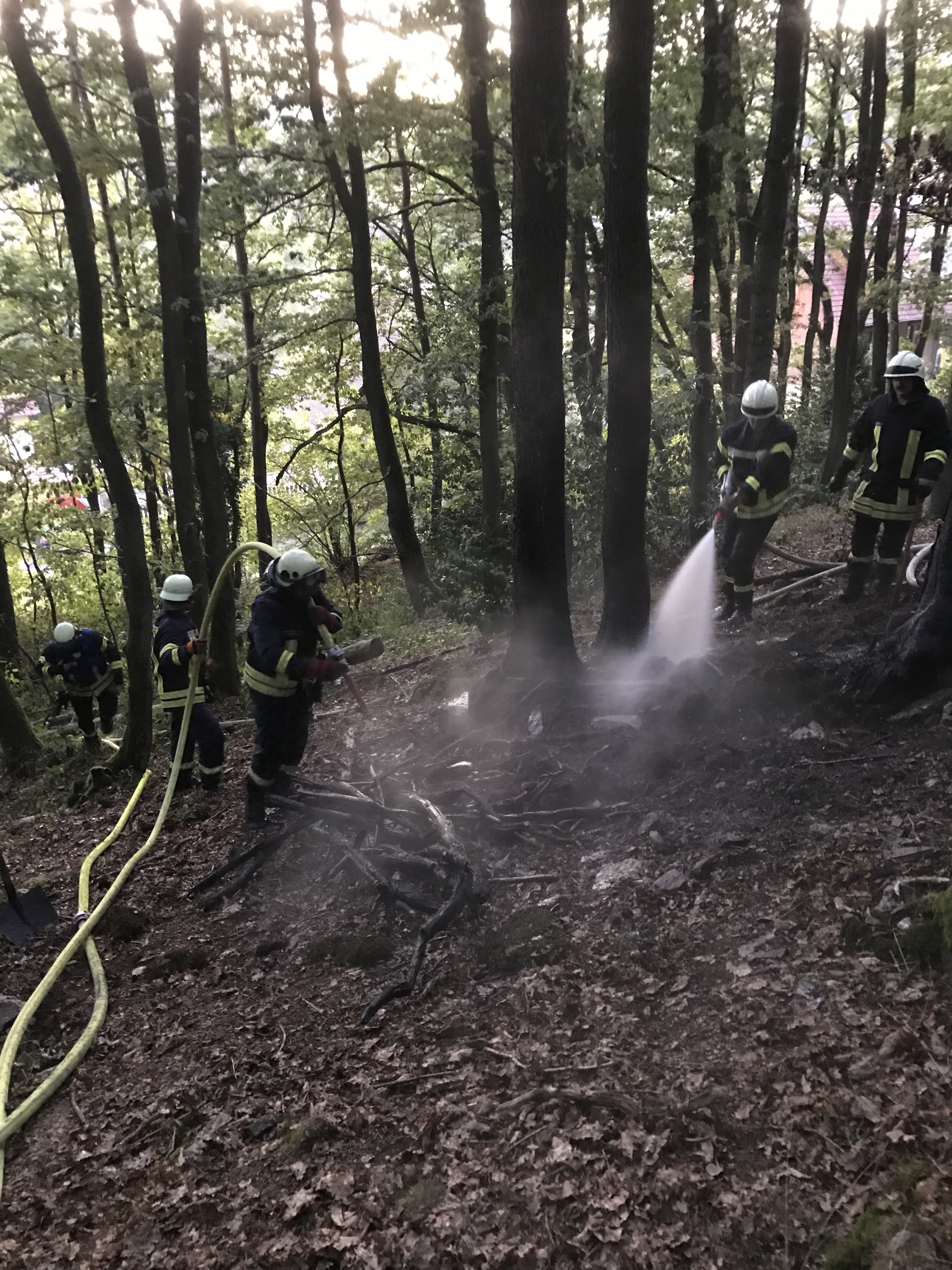 Der Wehrführer der örtlichen freiwilligen Feuerwehr nahm aus der Ferne eine Rauchentwicklung wahr und setzte die Alarmierung ab. Vor Ort stellten die Feuerwehren einen Flammenschein direkt am Waldrand fest.