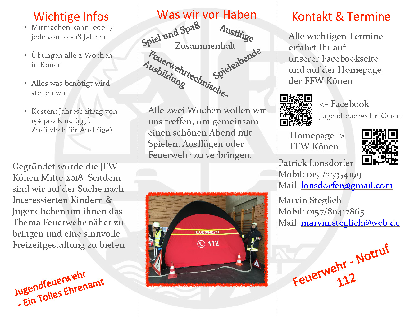 Wichtige Info,s wurden vorgestellt und vor allen Dingen; was bietet das Programm der Jugendfeuerwehr Könen; Spiel und Spaß, Feuerwehrtechnische Ausbildung, Spielabende,