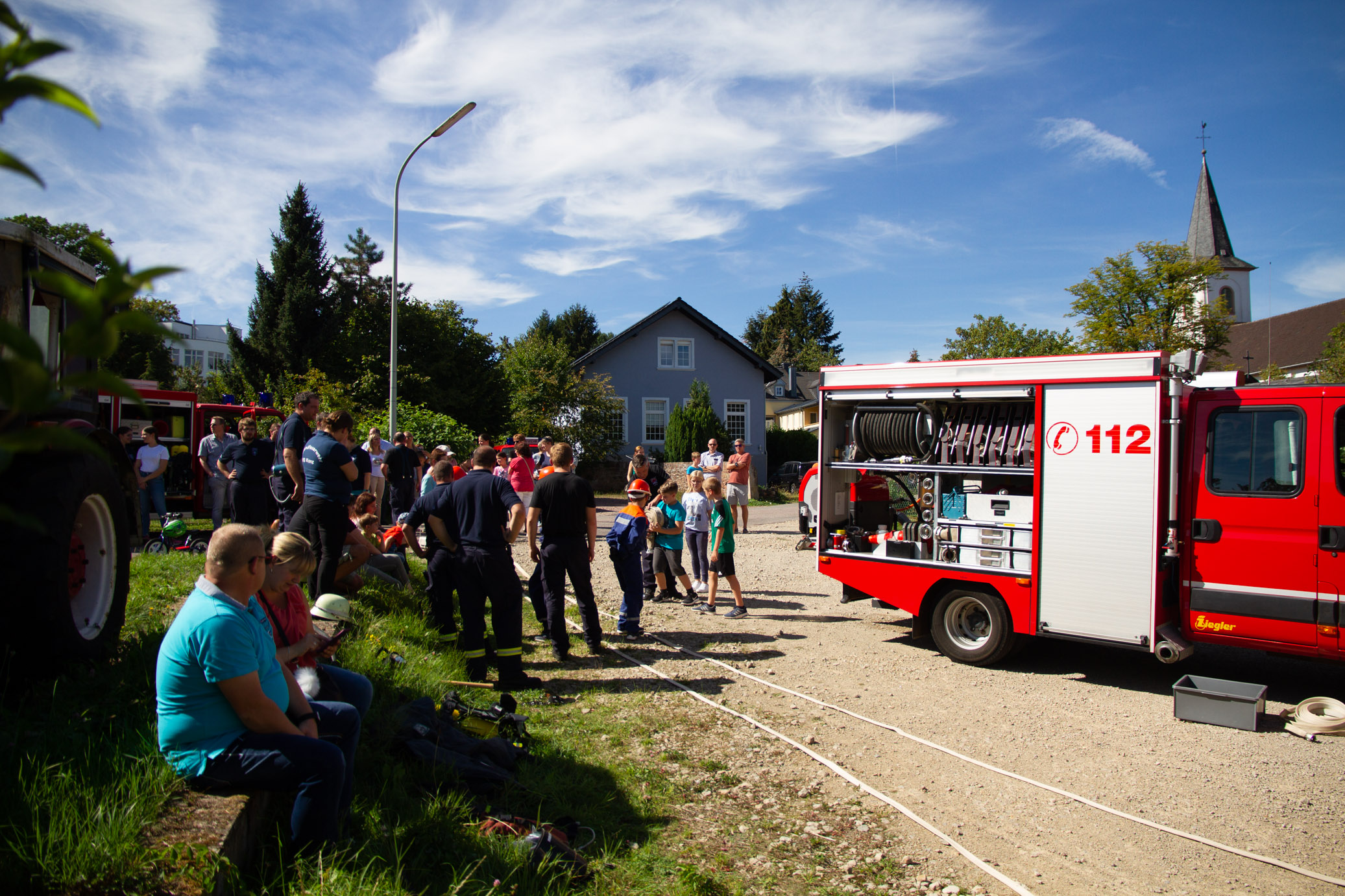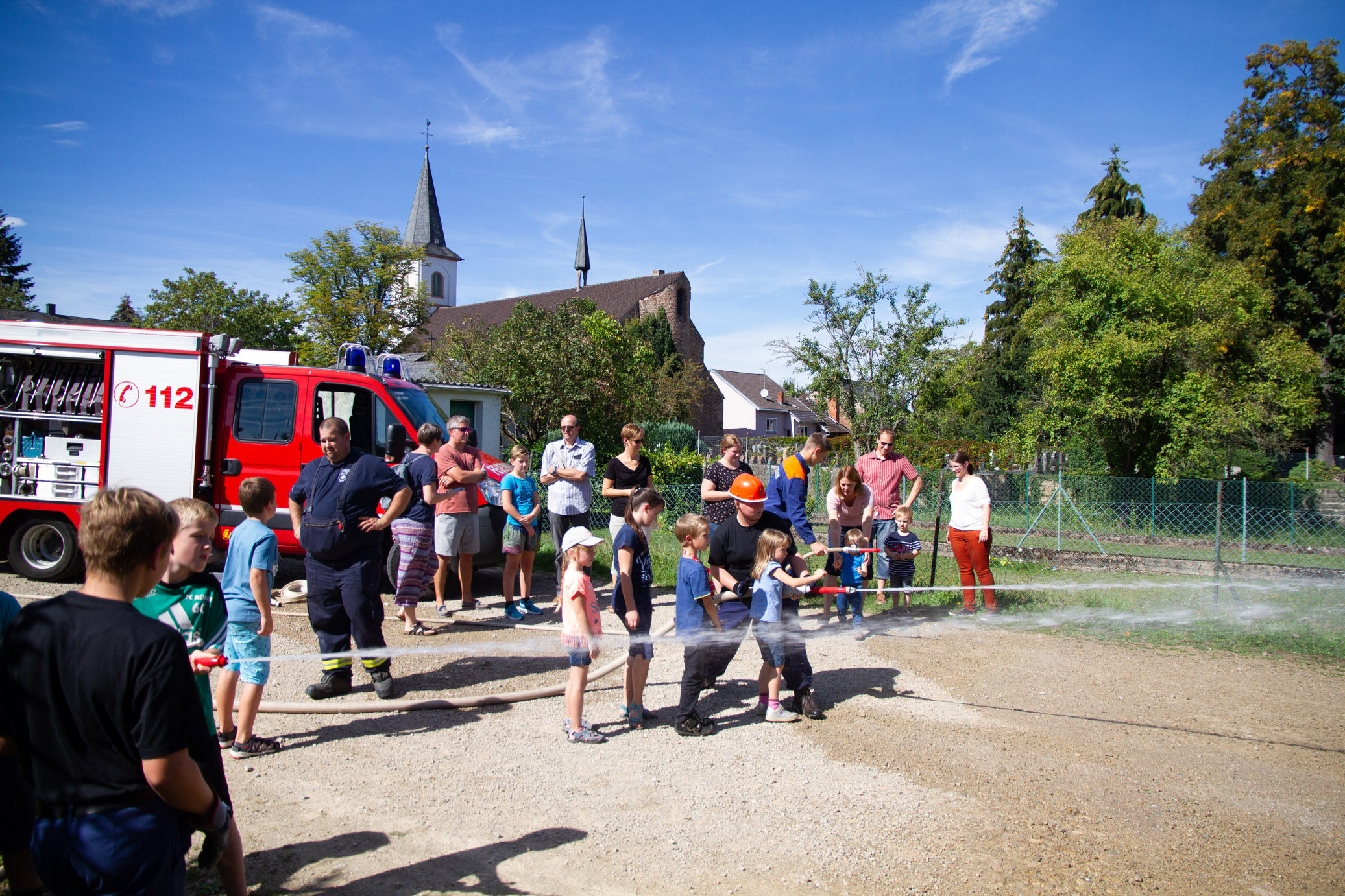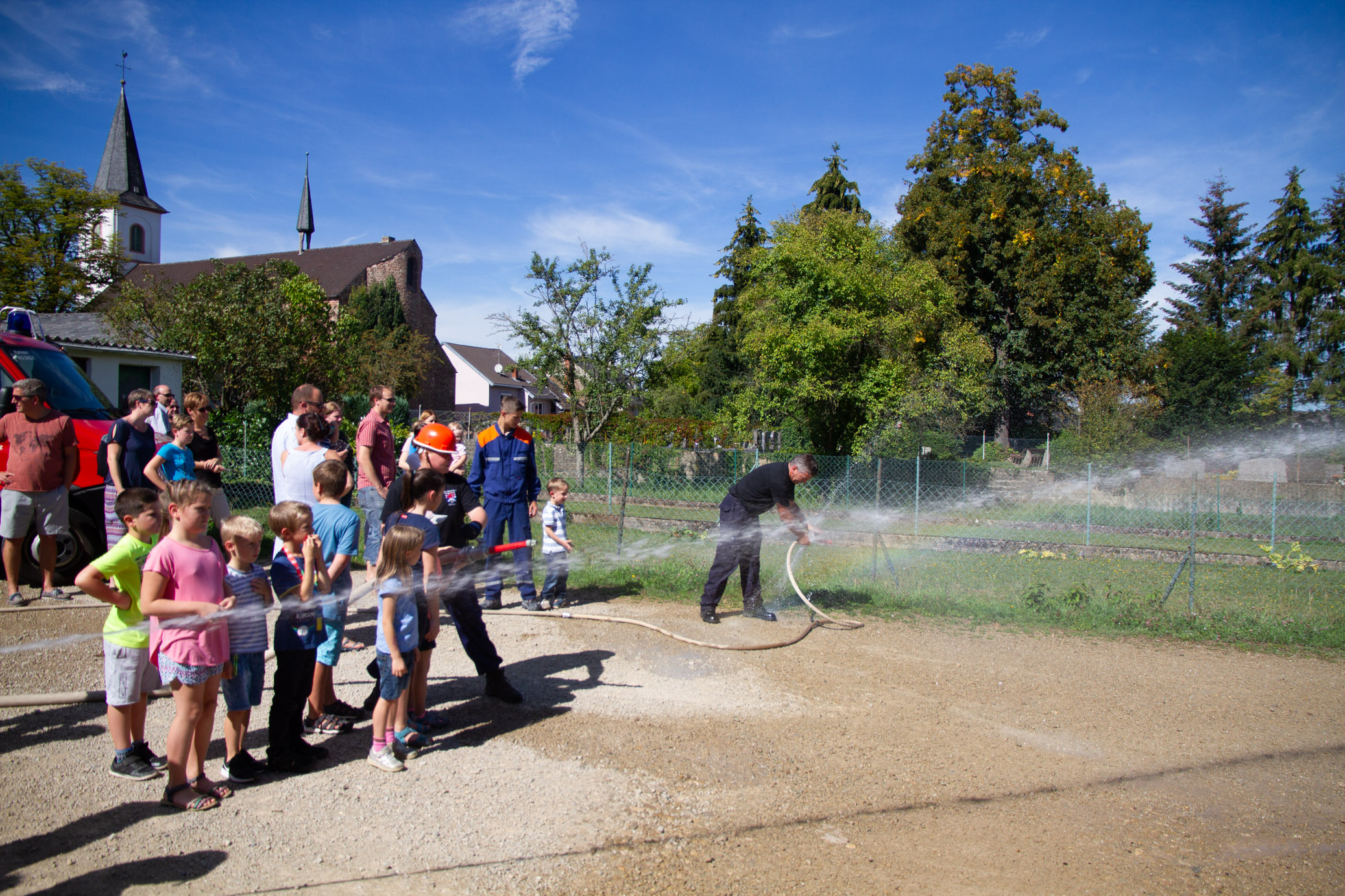 Zahlreiche Schaulustige, Eltern mit Ihren Kindern fanden sich am Schauplatz hinter der Kirche ein.