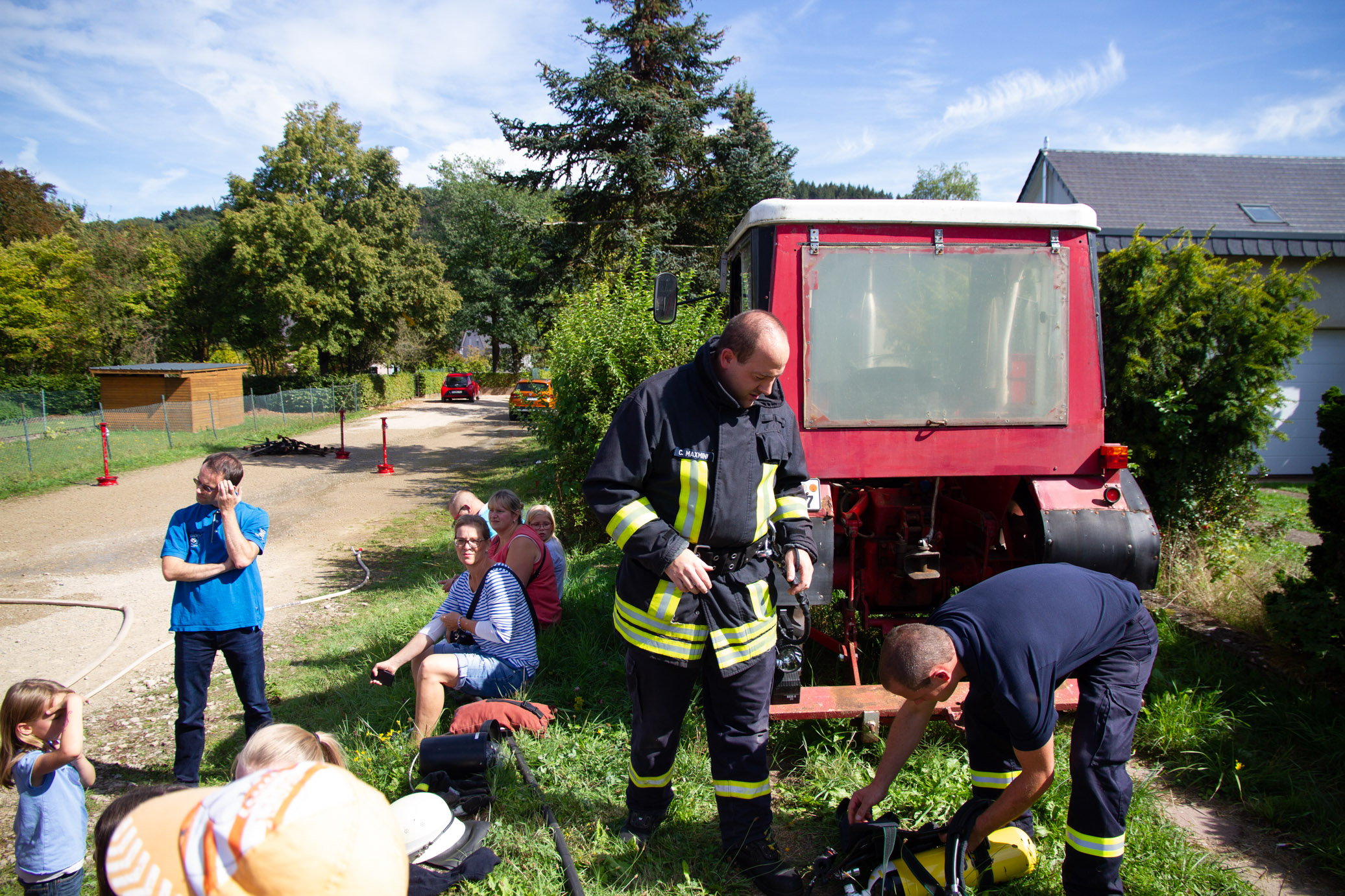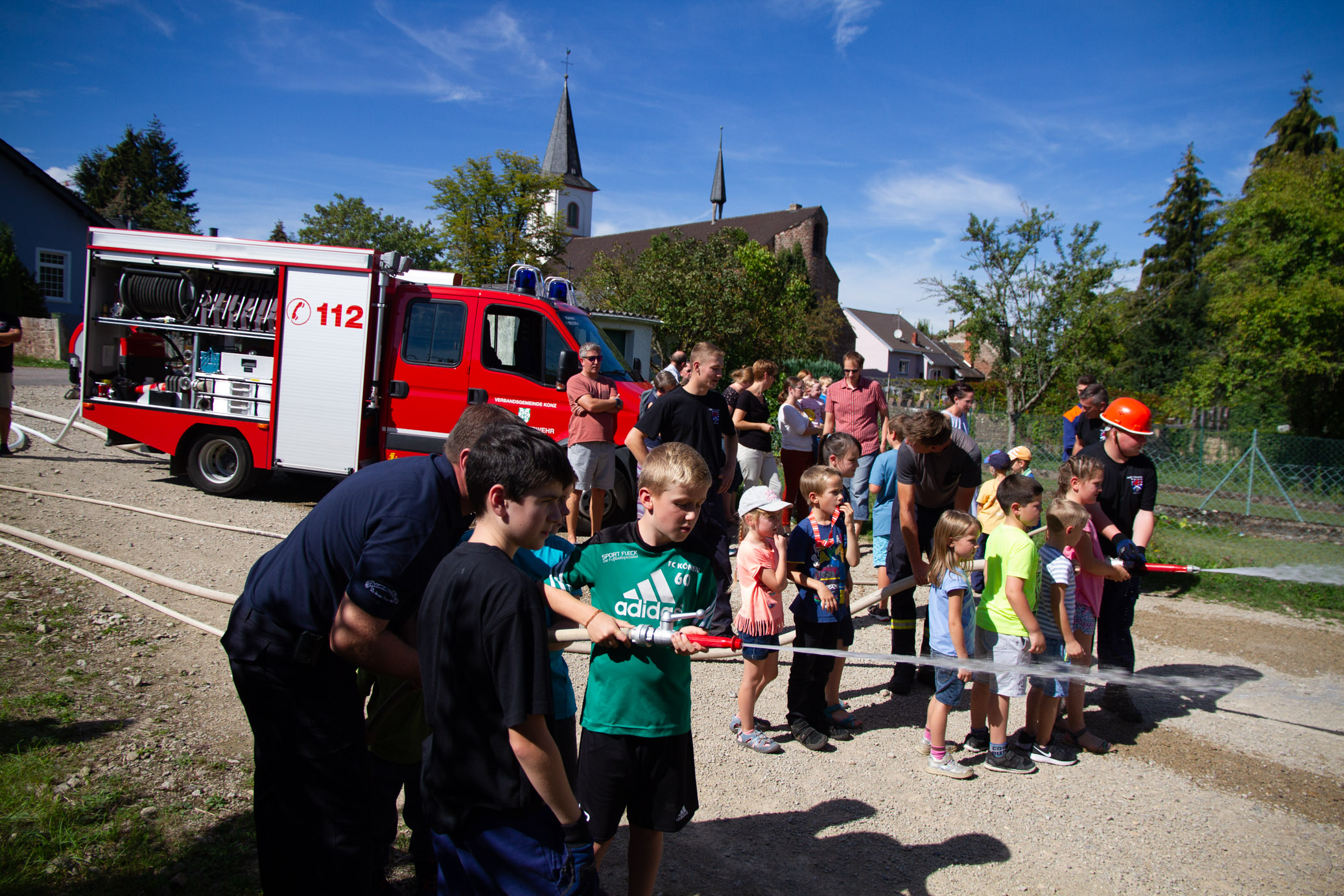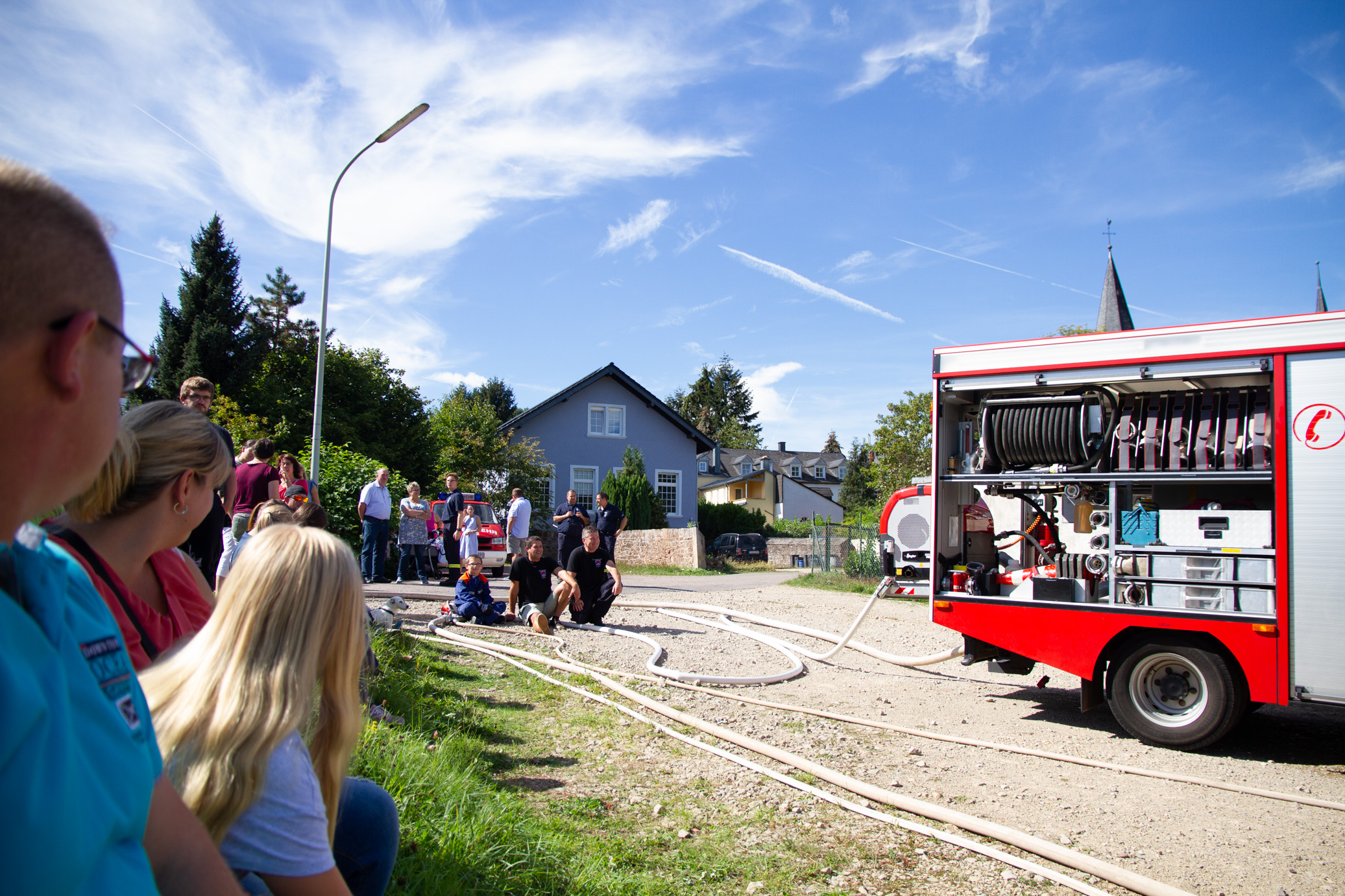 Zahlreiche Schaulustige, Eltern mit Ihren Kindern fanden sich am Schauplatz hinter der Kirche ein.