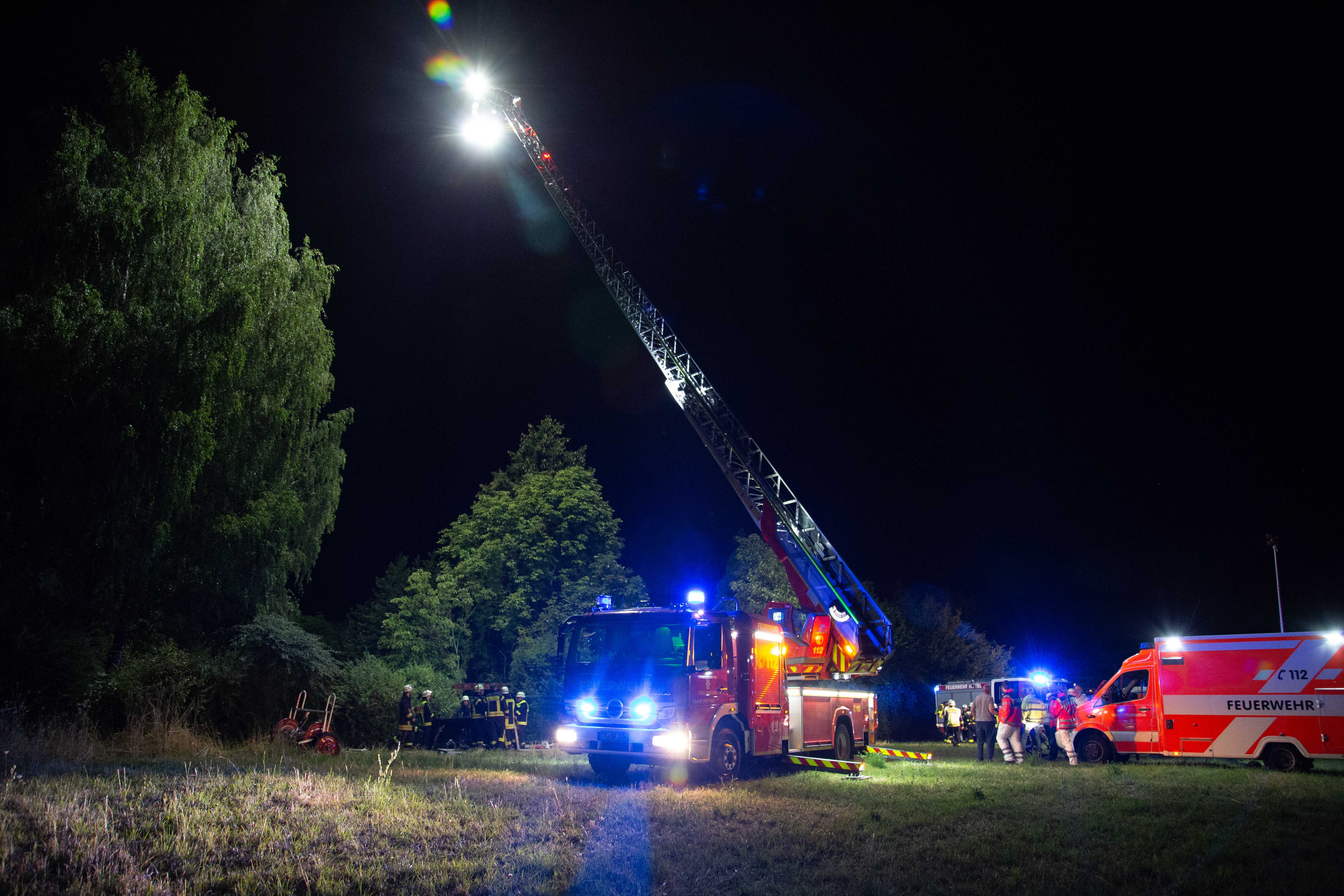 Bis 02.00 Uhr in der Nacht waren die rund 80 Einsatzkräfte mit den Löscharbeiten beschäftigt. Die Brandermittlungen laufen.