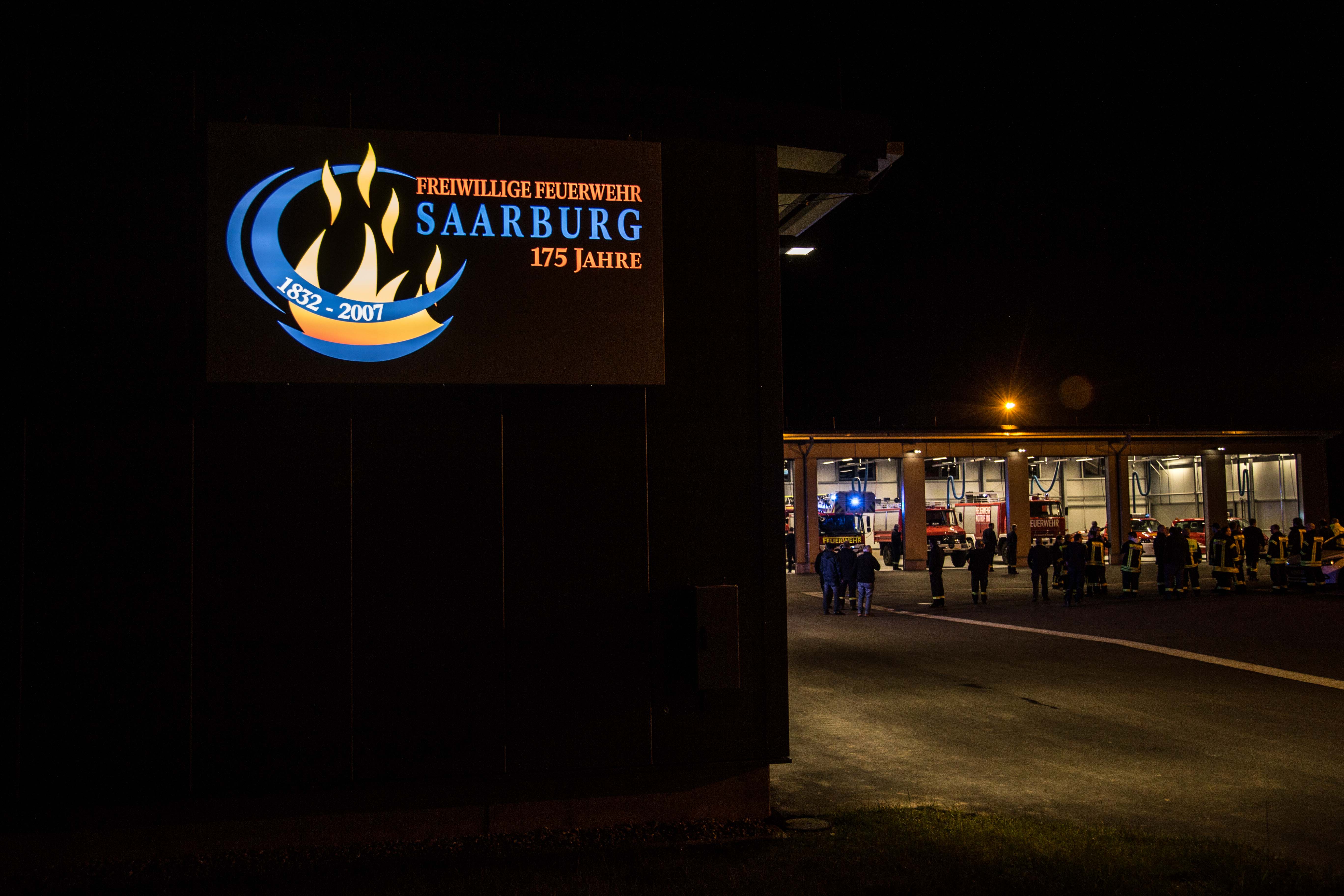 Die „Dame“ wurde wie immer von ihren Pfleger und Alterskameraden Martin Esser gesteuert. An der Polizei Saarburg vorbei ging es Richtung B 51 zum Saarufer mit weiteren sieben Fahrzeugen zur neuen Wache am Saarufer. Die neue Wache ist das sechste Gerätehaus seit 1832 in der Geschichte der Feuerwehr Saarburg. Im hellen Lichterglanz empfingen die Wehrkameraden und Kameradinnen den Korso auf dem Vorplatz der neuen Wache. Es war schon ein mulmiges Gefühl bei der Aufstellung des Korsos in der Heckingstrasse gewesen, so Wehrführer Christof Leinenbach. Martin Esser, der mit seinem „Mädchen“ schon seit 1966 zusammen ist, meinte: Man müsste nochmals 10 Jahre jünger sein, es ist hier schon beeindruckend und überwältigend.