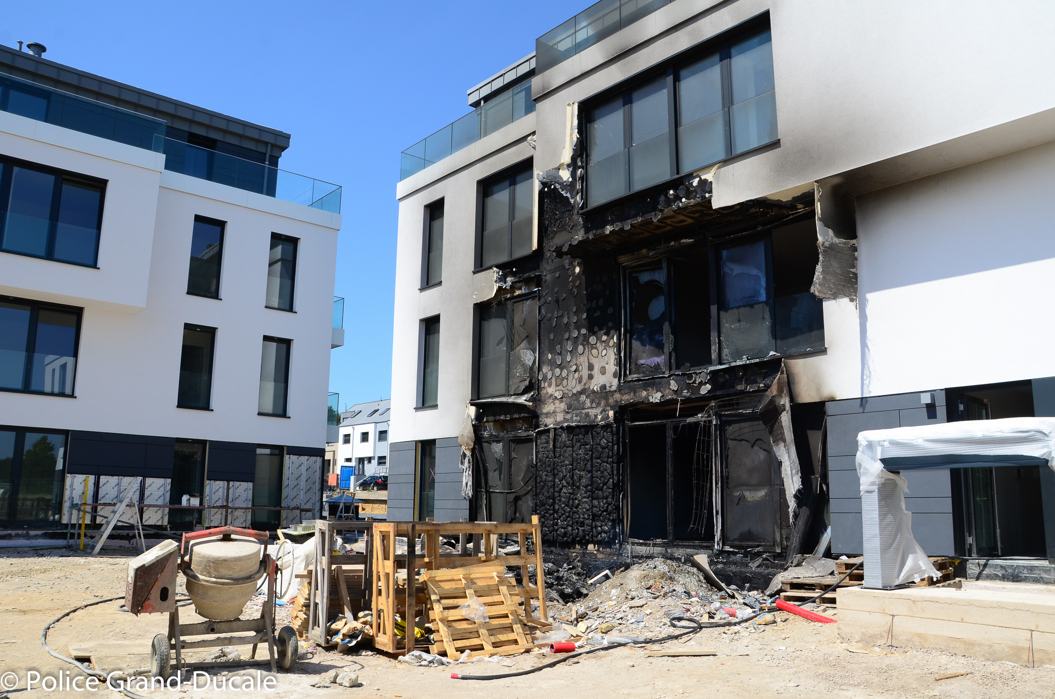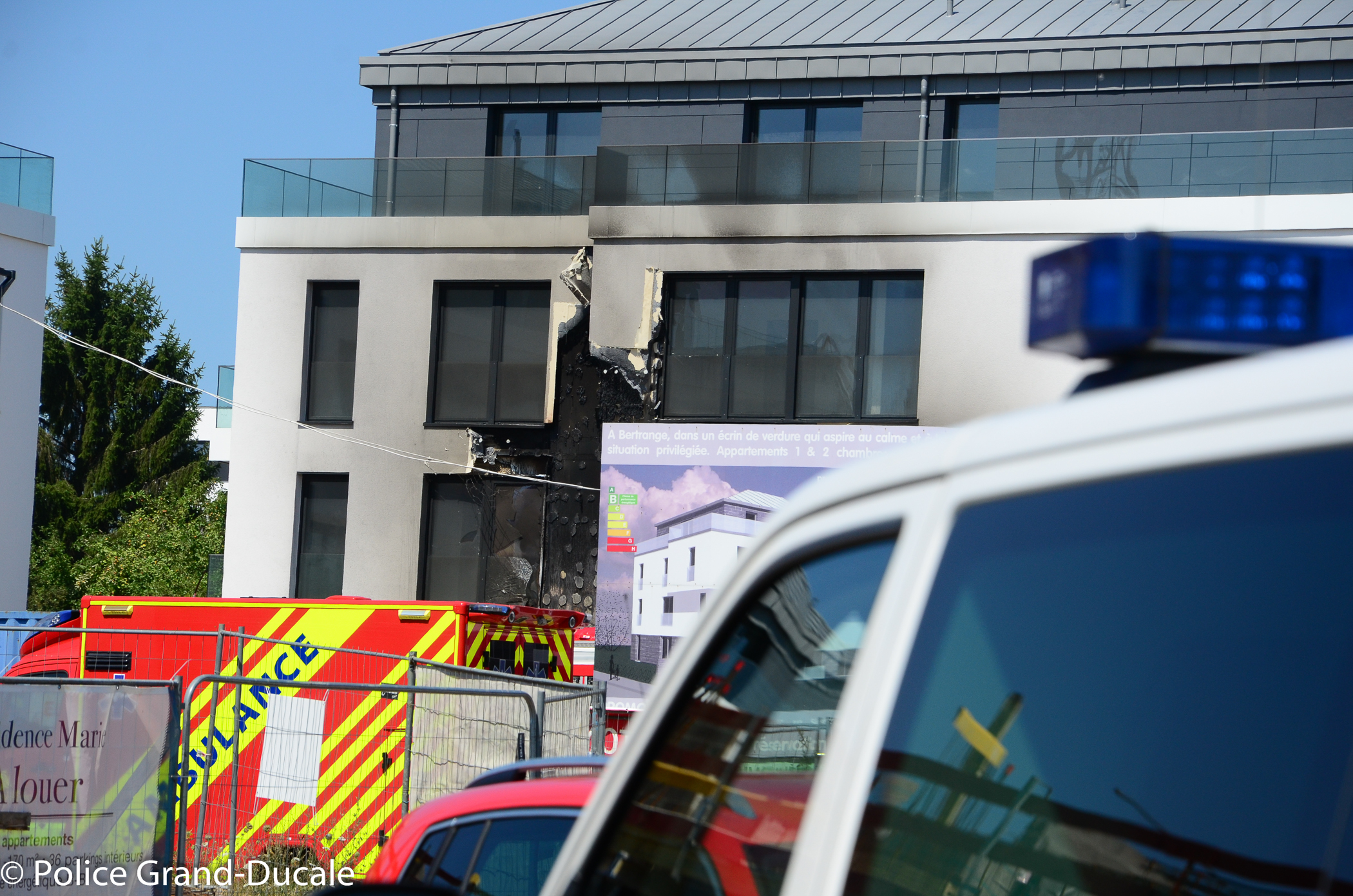 Fassade brennt in Bertrange/Luxembourg