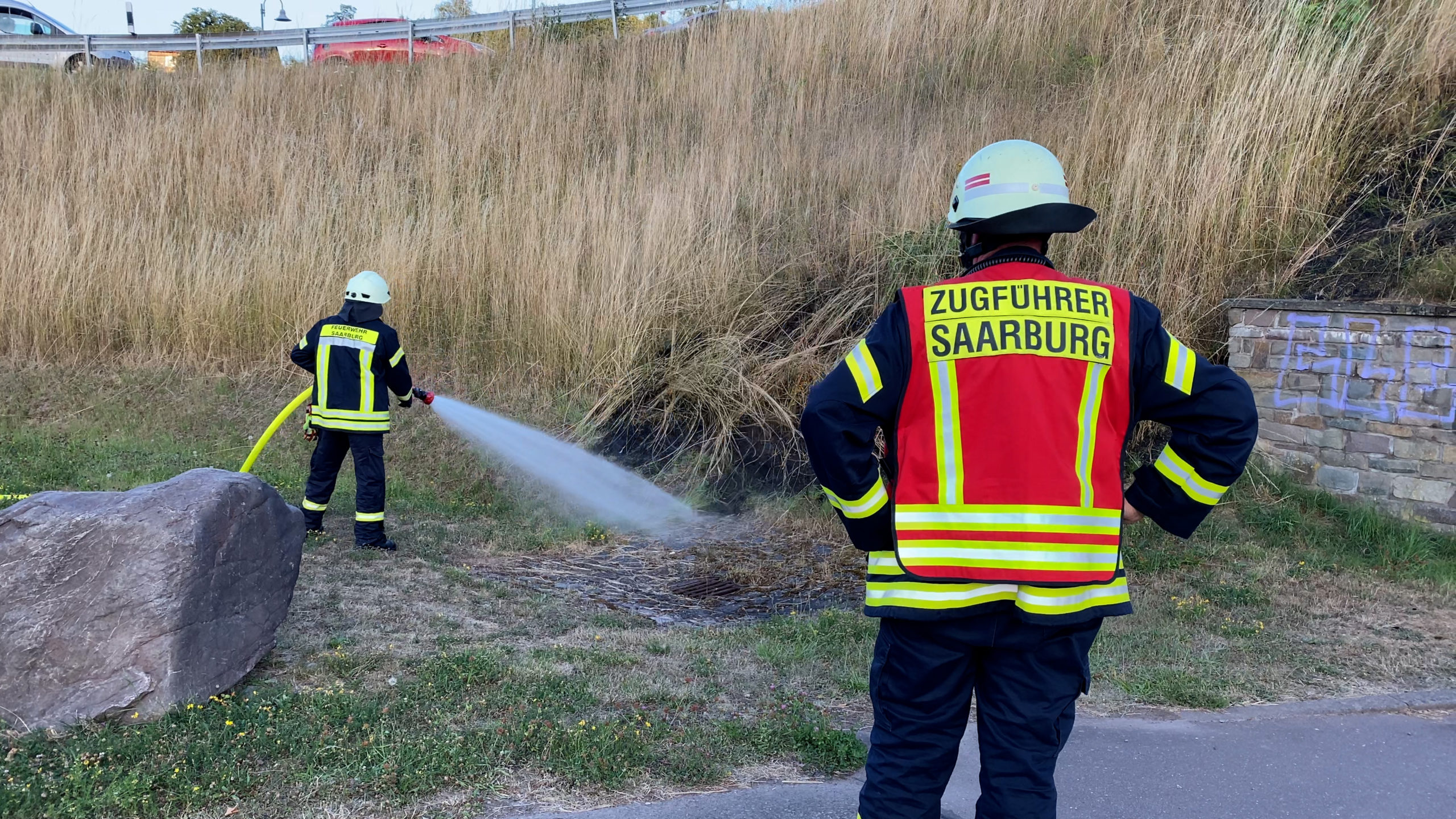 Saarburg. An der Bundesstraße 407 (Höhe Rewe Markt) brannte am Montagabend ein Stück einer Wiesenfläche ab. Die Feuerwehr Saarburg konnte das Feuer schnell löschen.