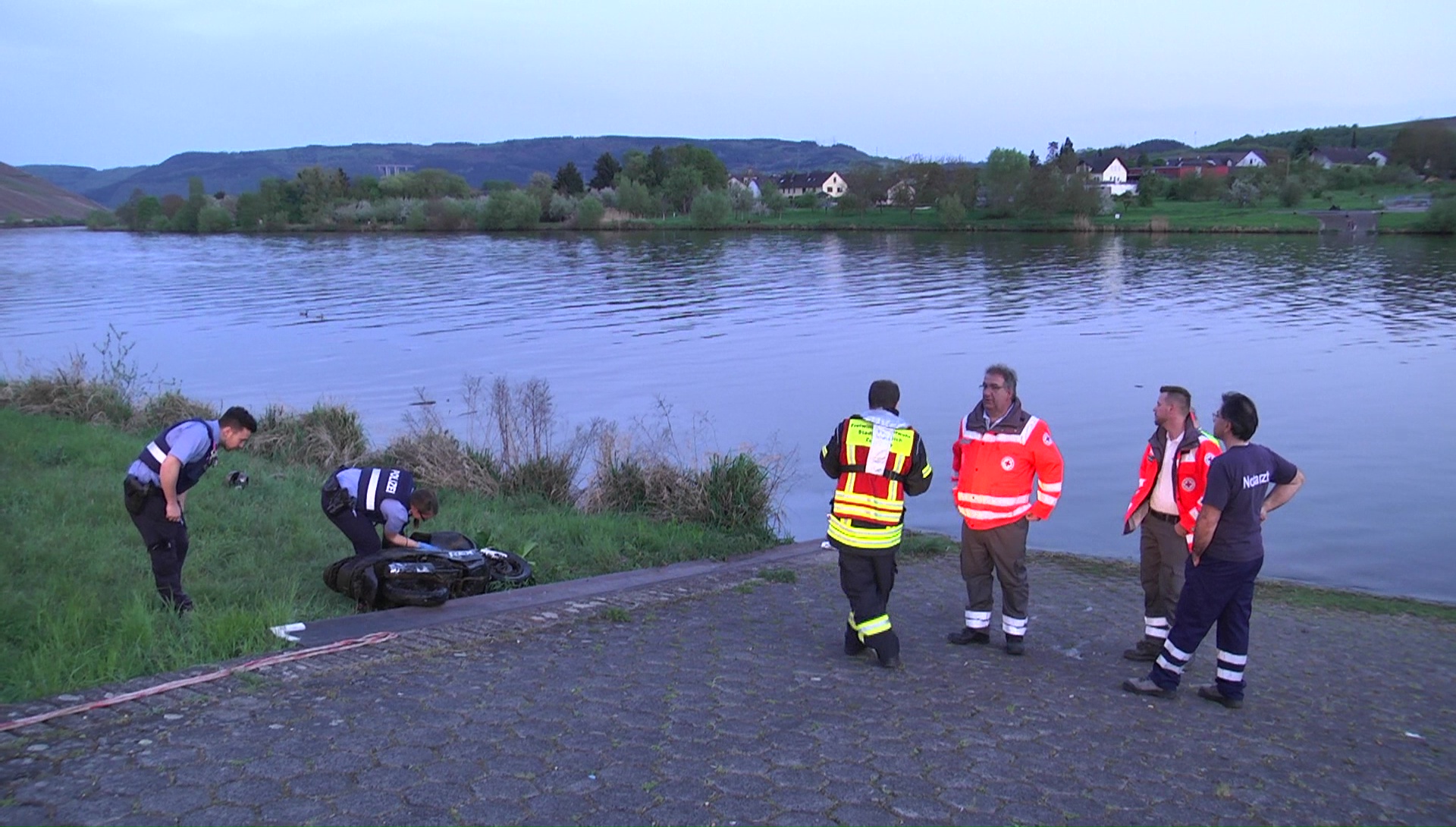 Schweich. Ein Passant hat am Montag gegen 19.30 Uhr   eine in der Mosel treibenden Person gemeldet . Die alarmierten Einheiten fanden an der NATO Rampe in Schweich einen Motorradhelm. Die Taucher suchten direkt  die Mosel in dem Gebiet ab . Nach kurzer Zeit konnte auf dem Grund der Mosel ein Motorroller gefunden werden .