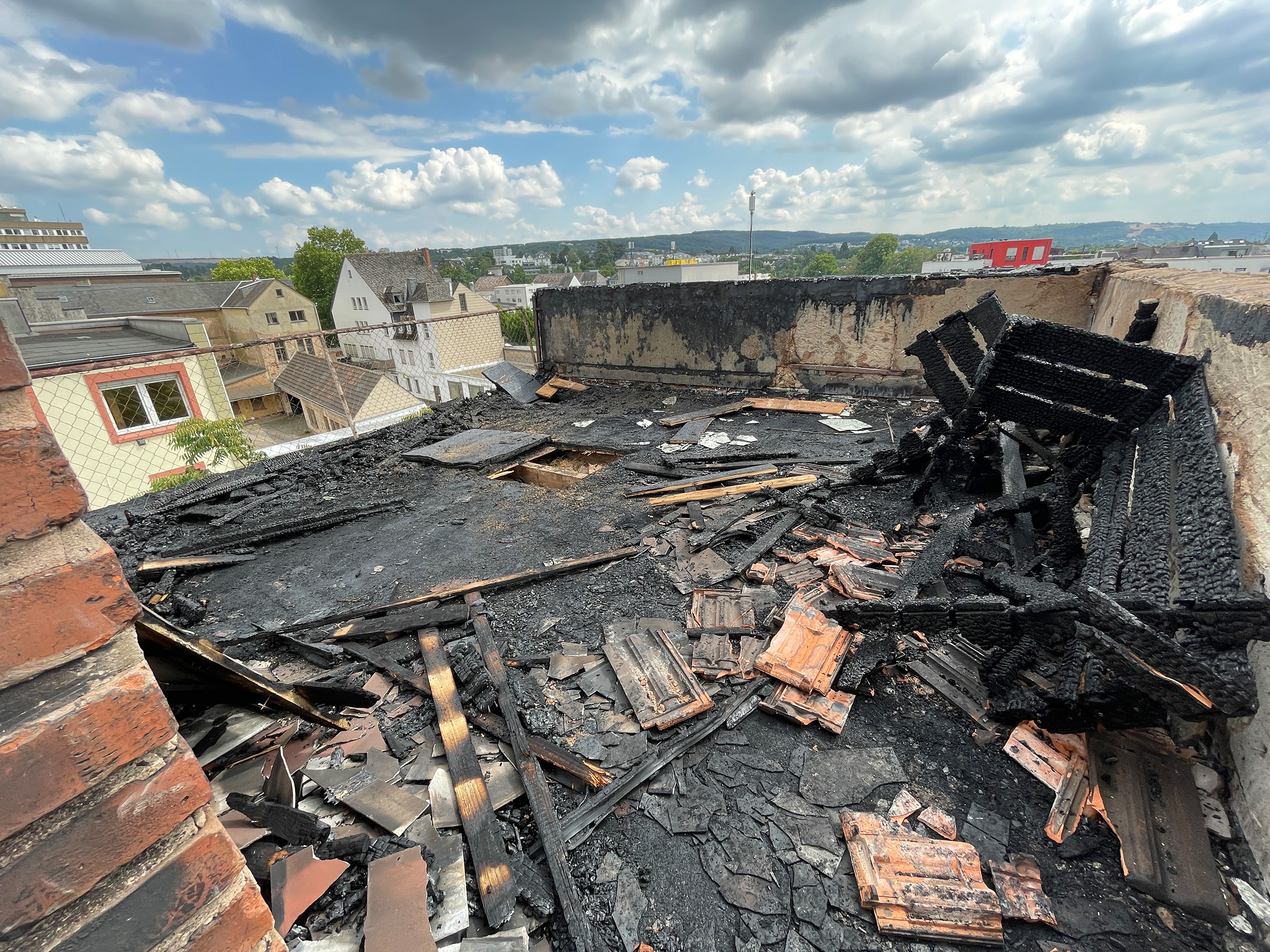 Feuerwehr löscht brennende Dachterrasse -Großeinsatz in der Südallee