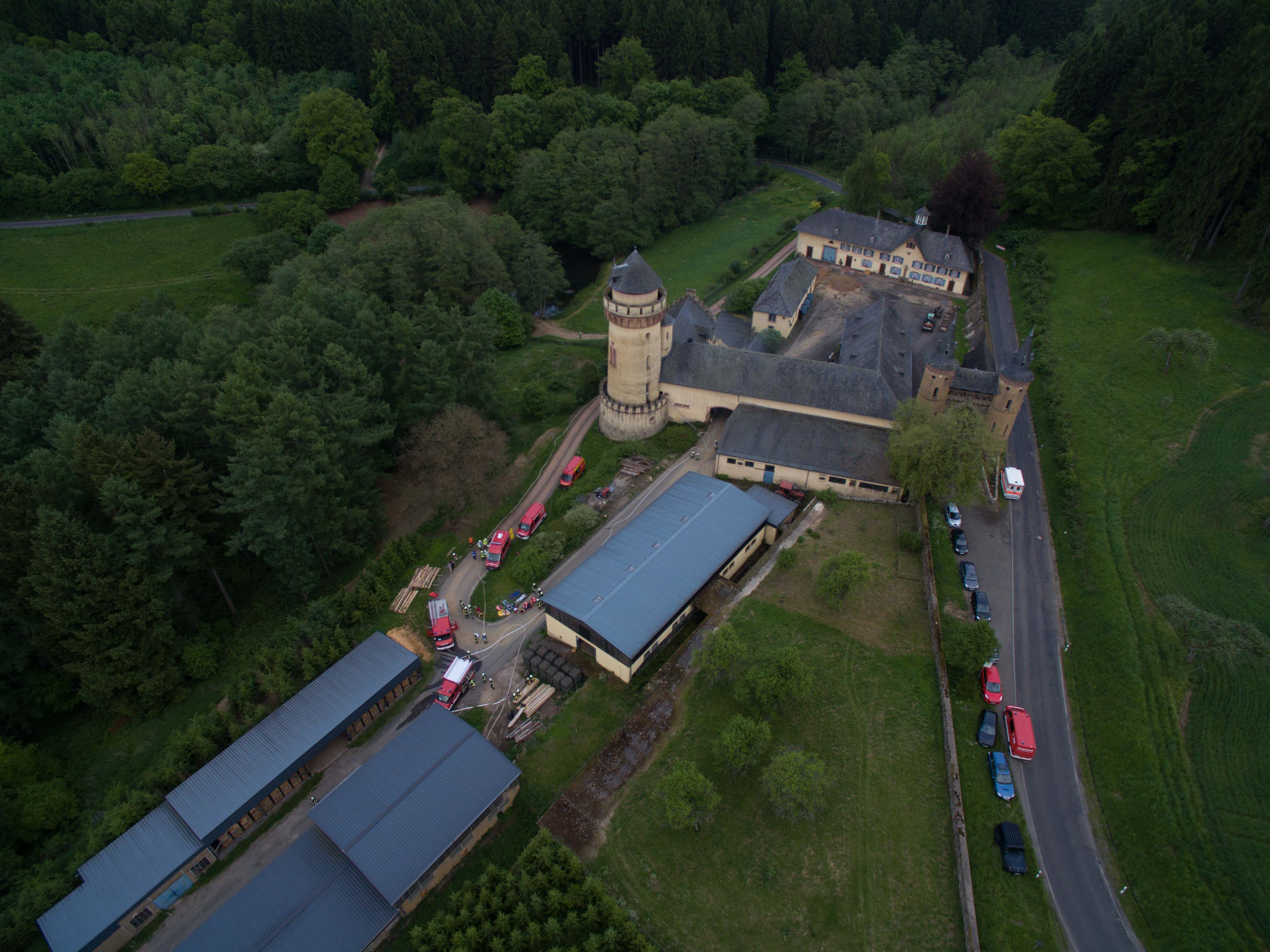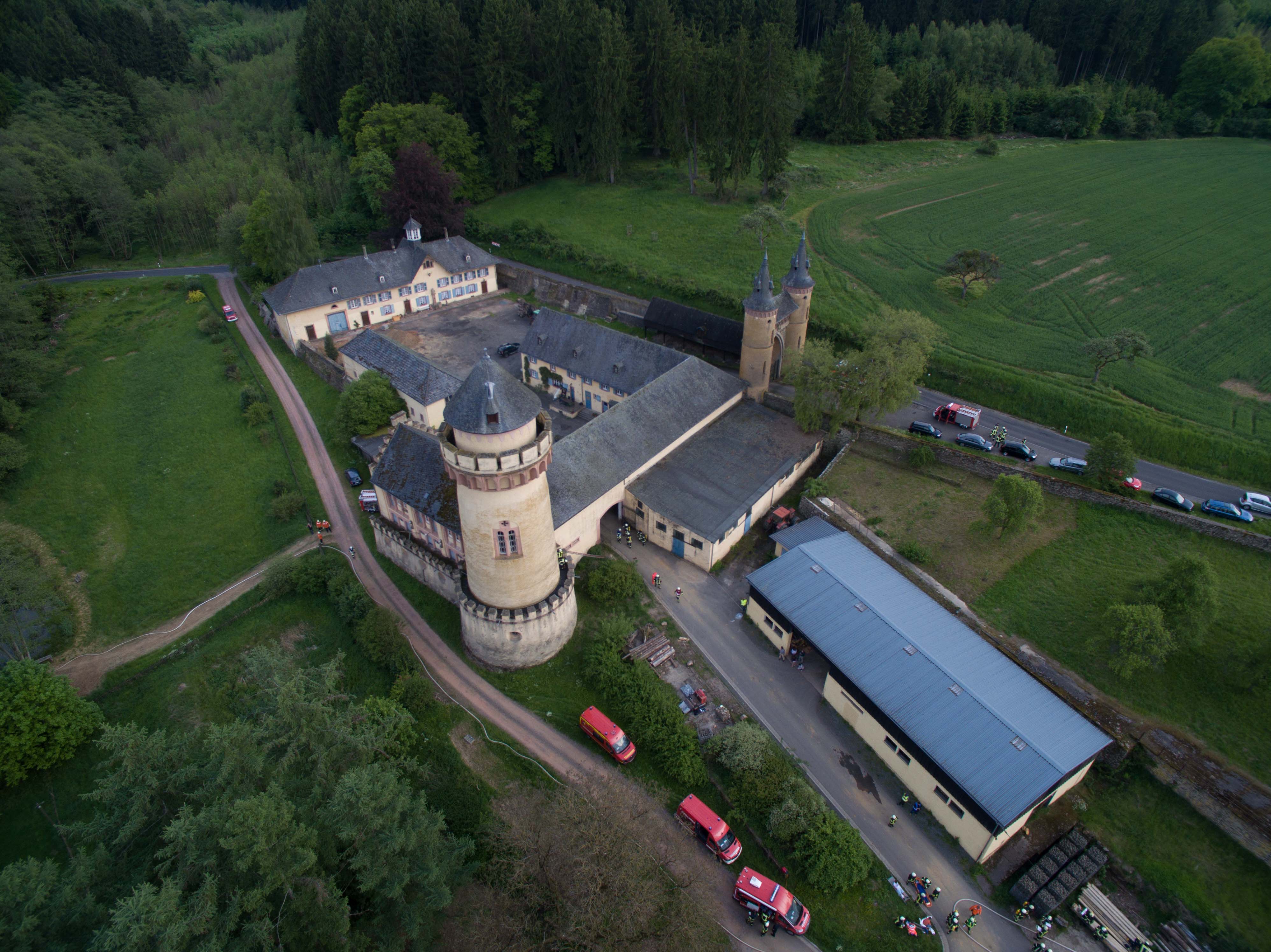 Die romantische Burganlage „Gutshof Heid“ in der Gemarkung Schillingen war am Dienstagabend Schauplatz der Feuerwehren aus der VG Kell am See und der VG Ruwer. Für einen Realeinsatz gab es kein Szenarioablauf.