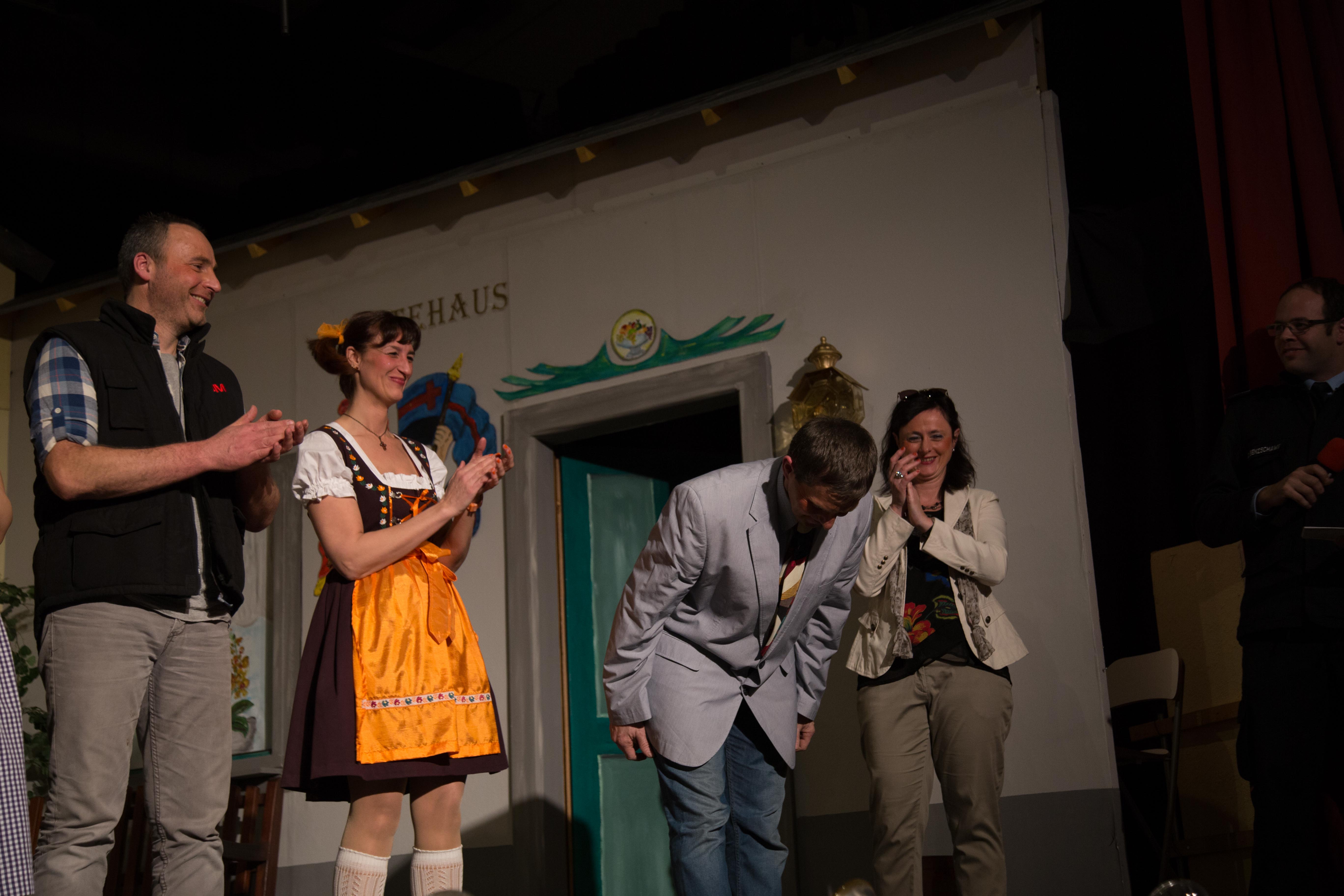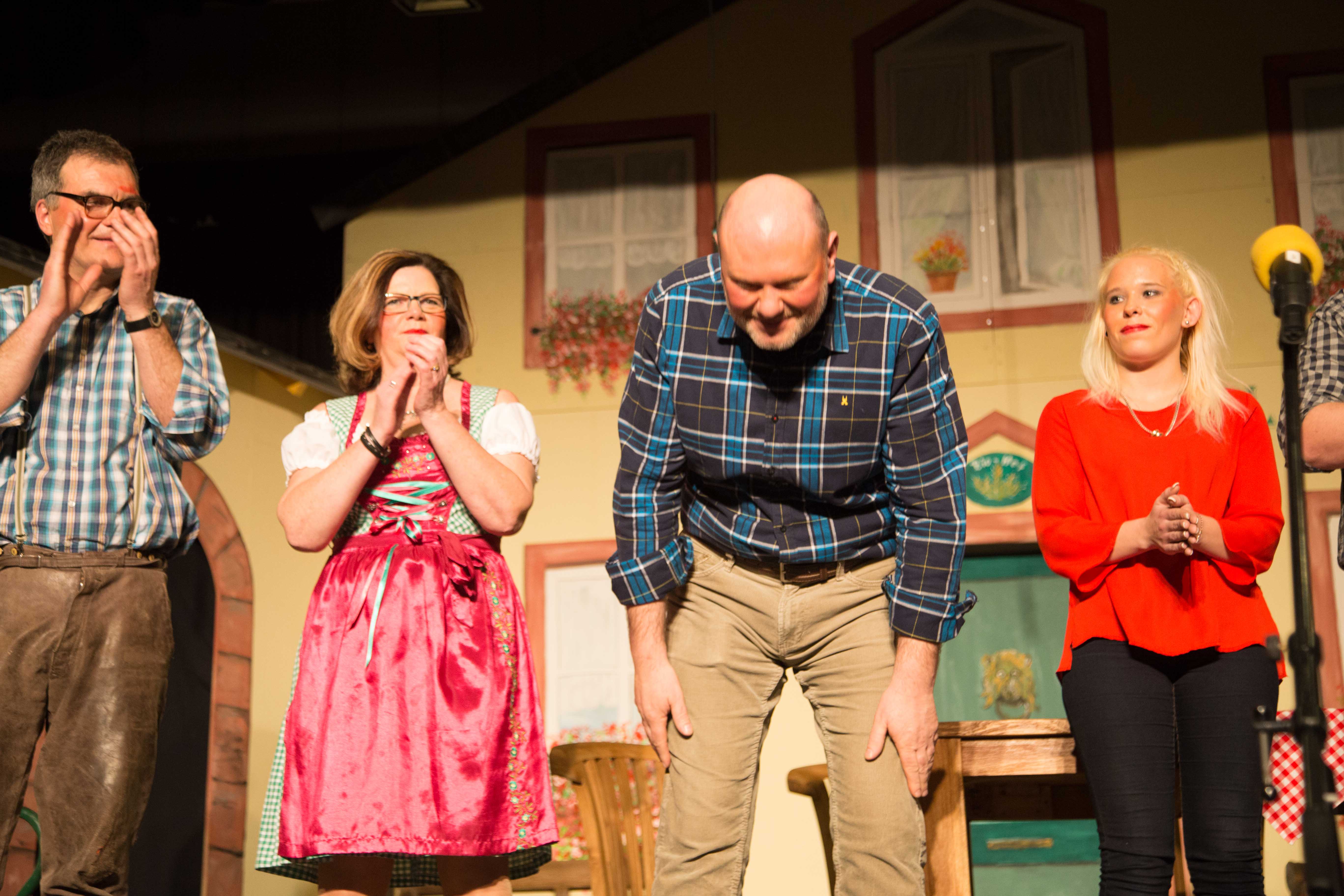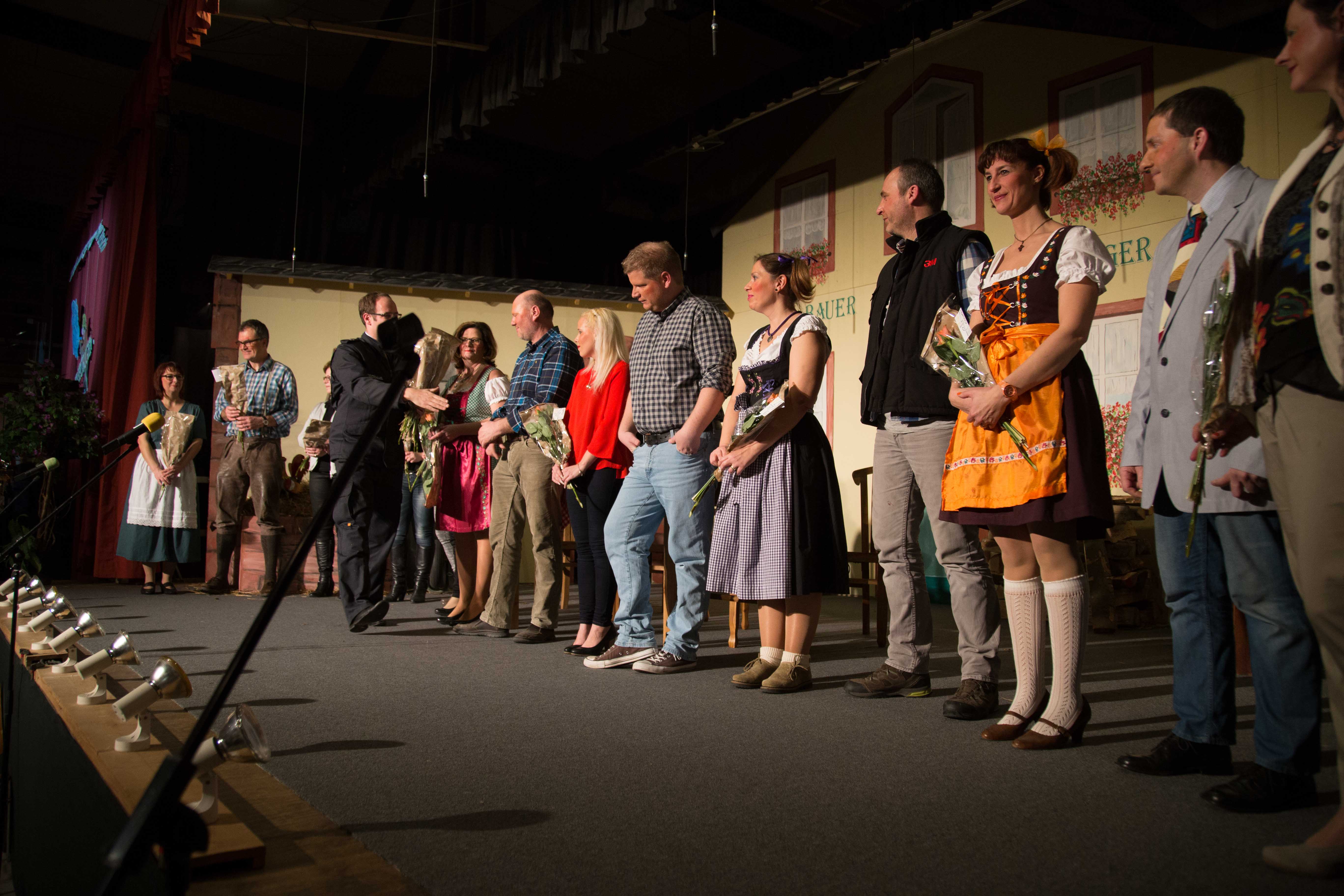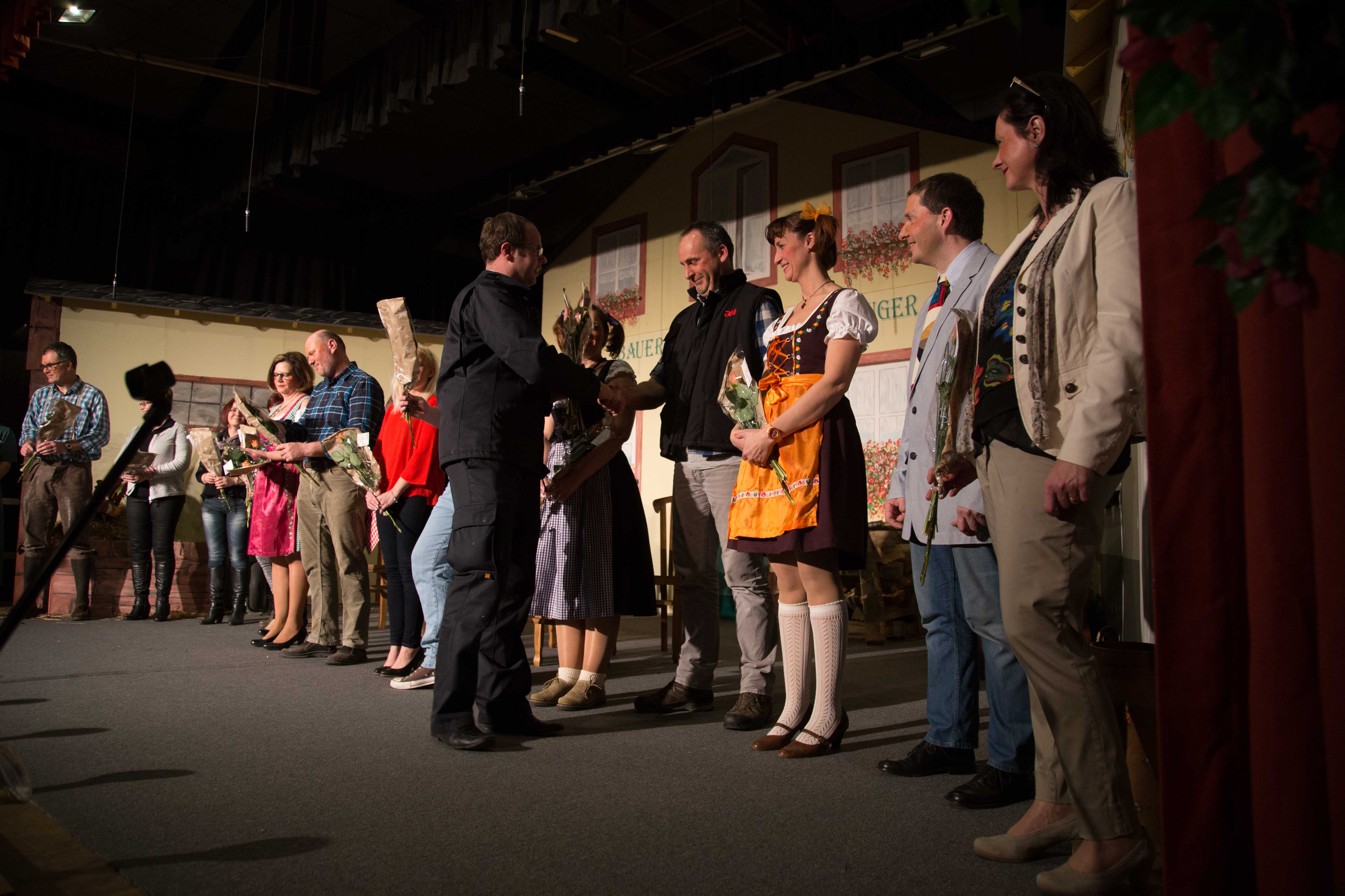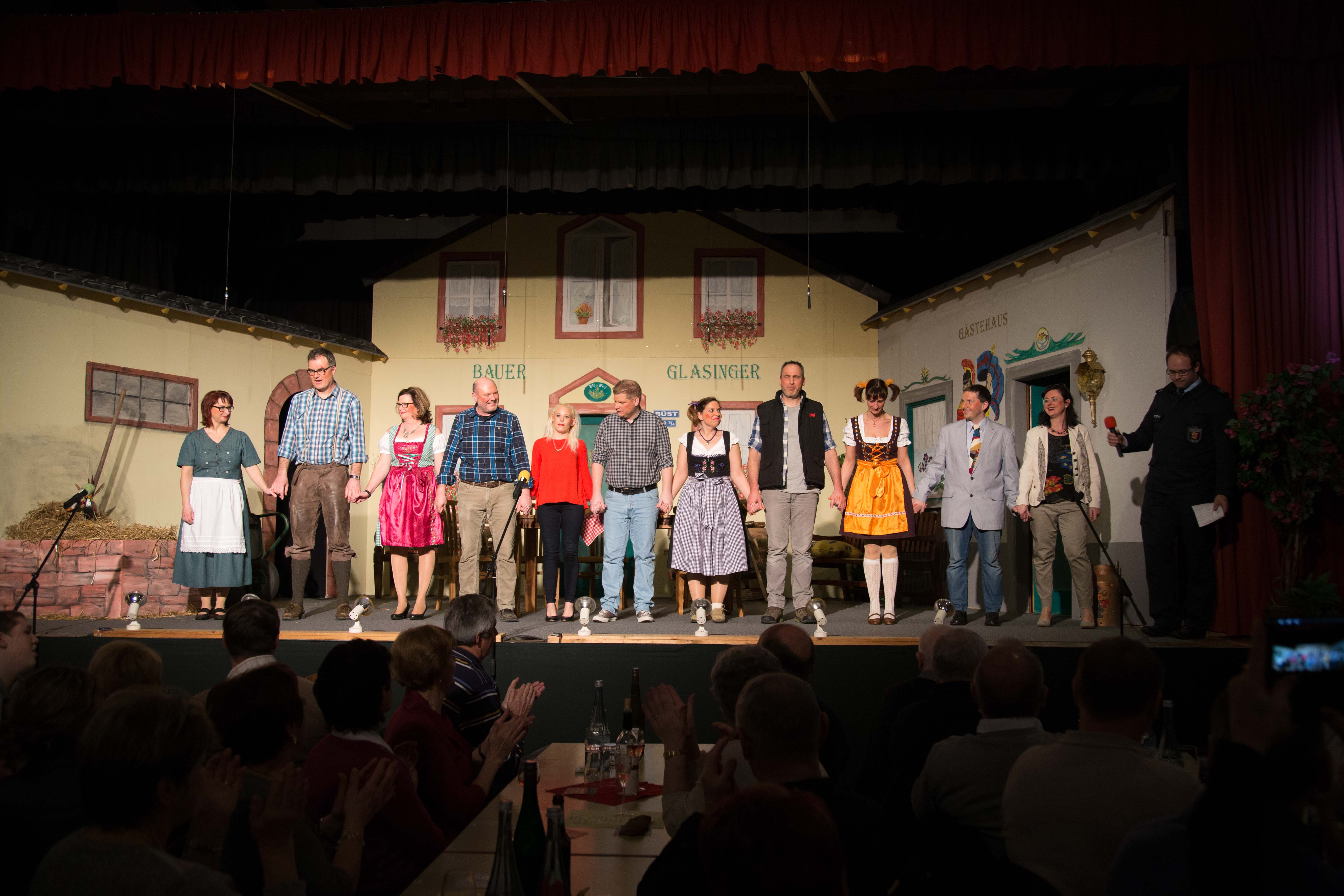 Die Mehrzweckhalle in Irsch erlebte ein Standing Ovation nachdem sich die „Feurigen“ Theaterspieler geschlossen bei dem Publikum verabschieden.