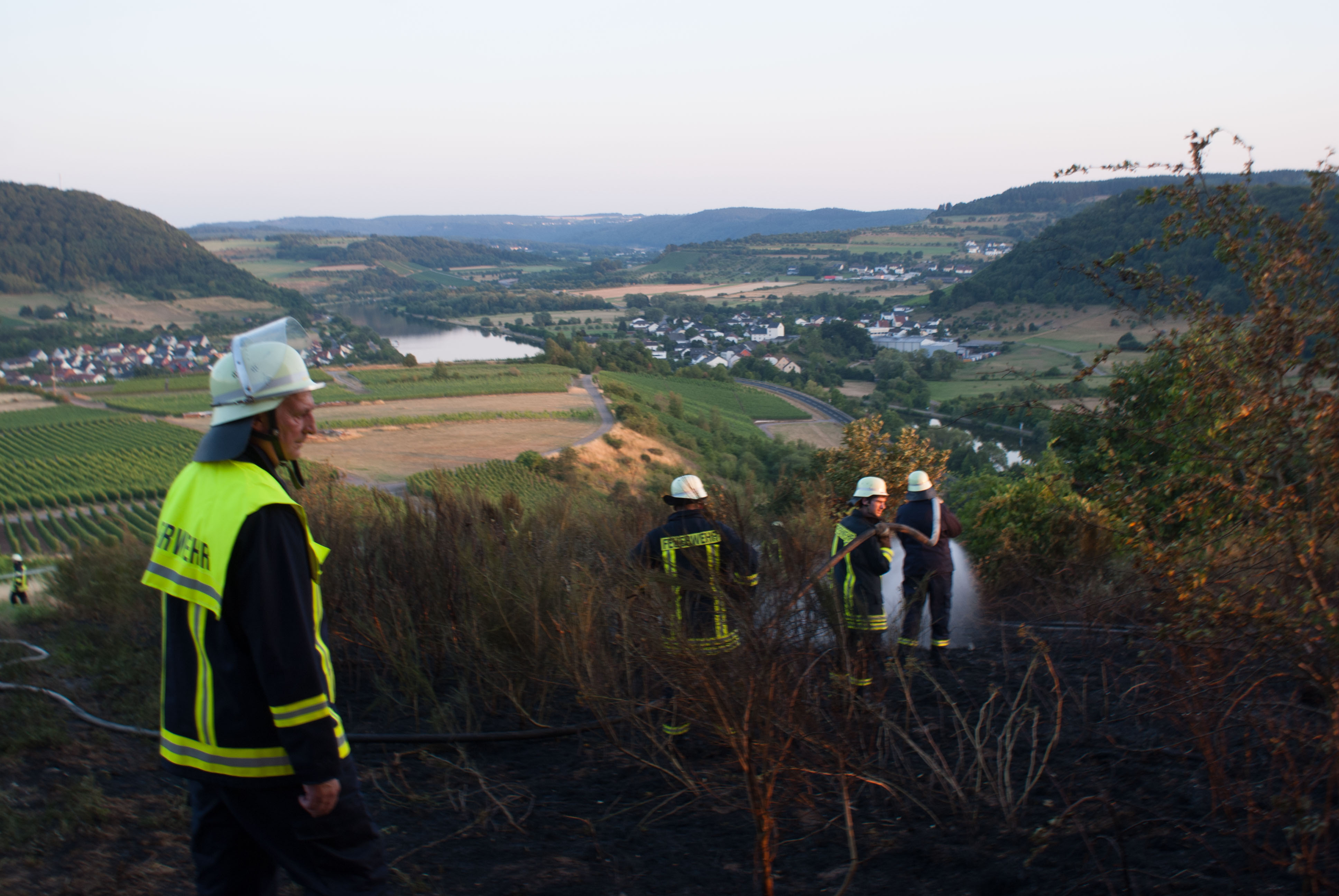 Am Samstagabend, den 11.Juli 2015 meldete kurz nach 20.00 Uhr ein aufmerksamer Bürger aus Schoden, das im Weinberg auf der gegenüberliegenden Saarseite eine große weiße Brandwolke sichtbar sei. Bei Ersterkundung der Einsatzkräfte brannte eine Gestrüppfläche im Hang von circa 300 m² unterhalb eines geschotterten Weinbergsweges und einem angrenzenden Waldstück.